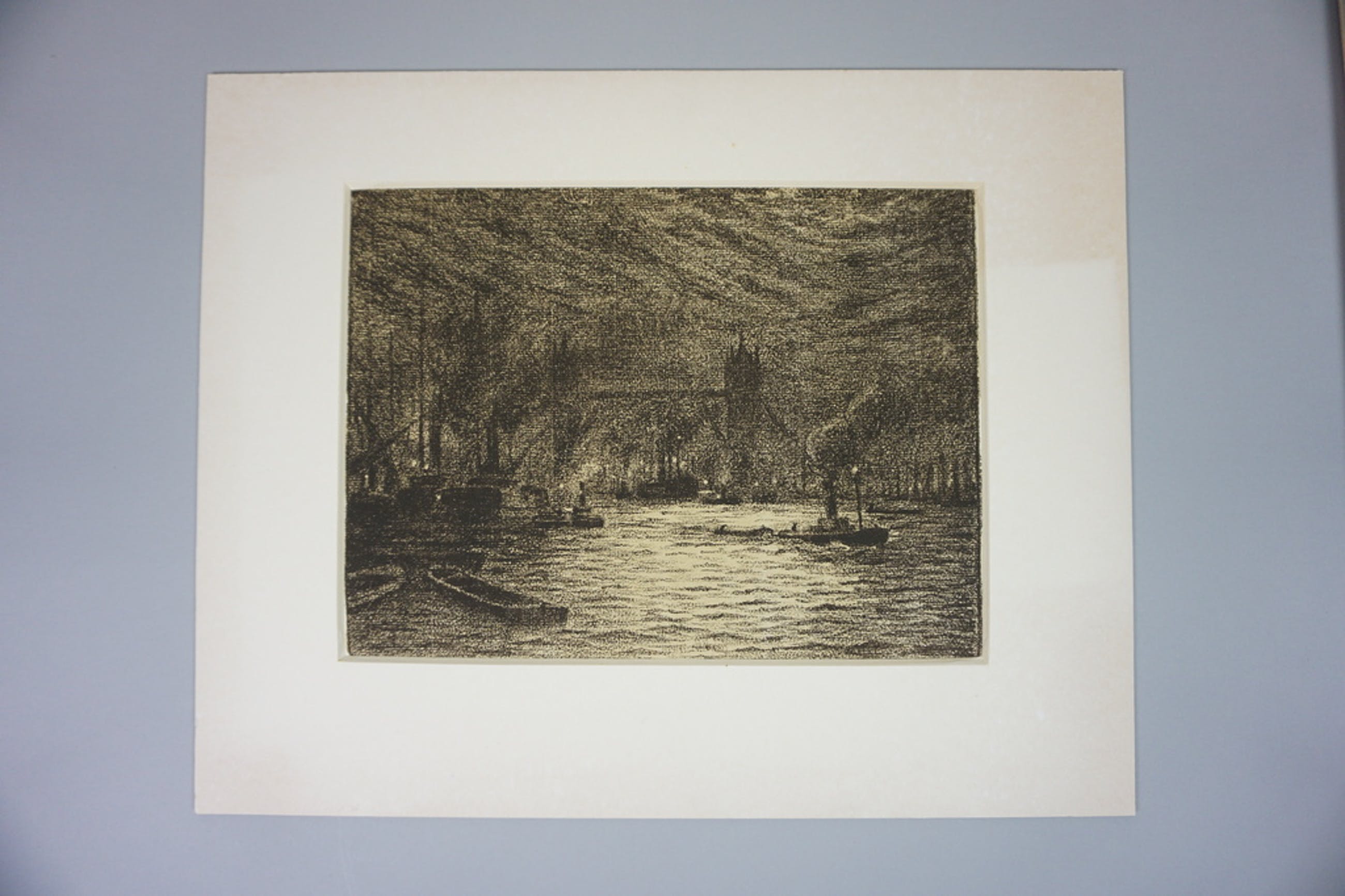 Lithografie van de Tower Bridge in Londen gemaakt door Omer Coppens (1864-1926).