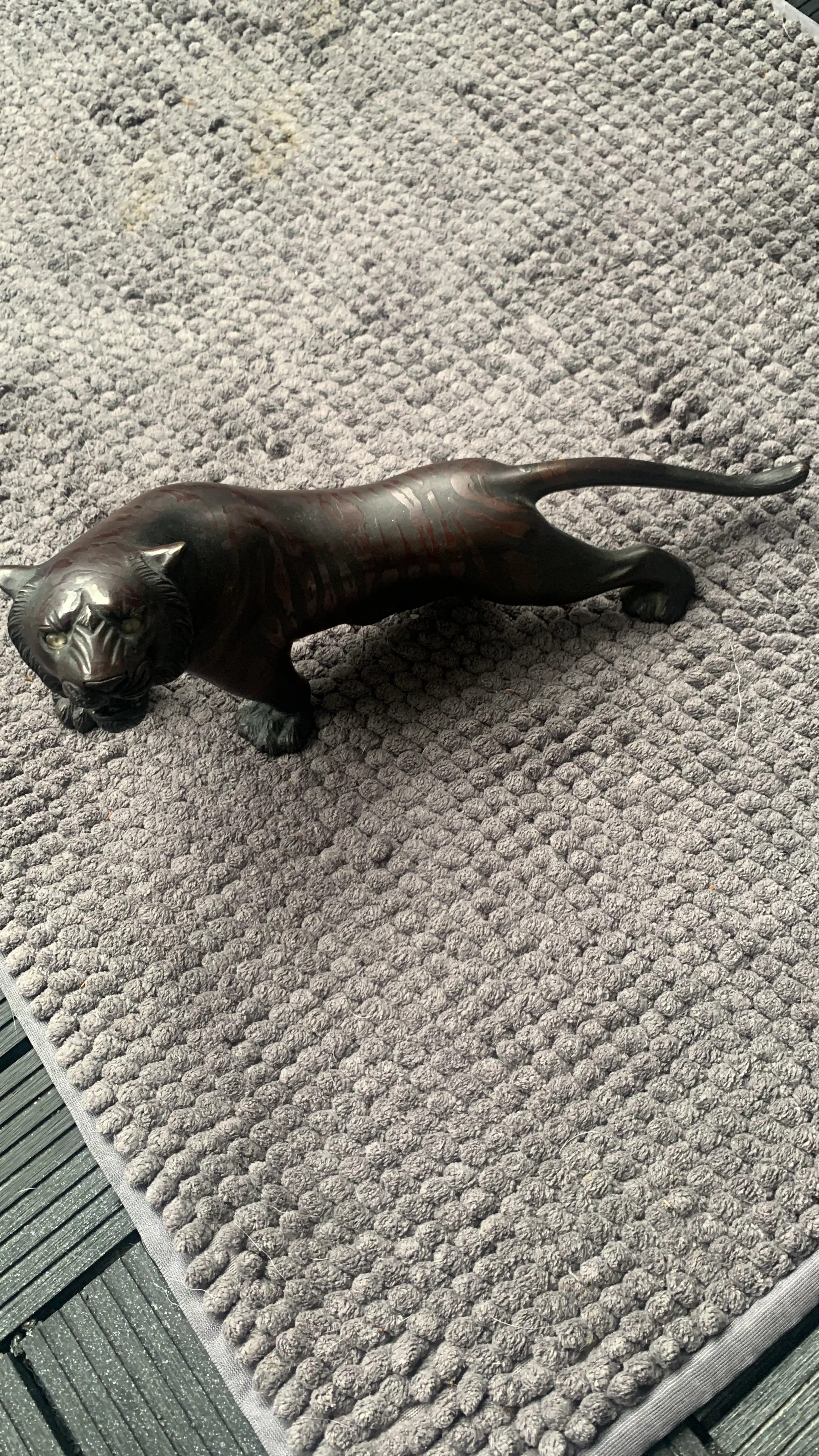 Het afgebeelde object is een opmerkelijk Japans bronzen beeld van een tijger uit de Meiji-periode (1868-1912).