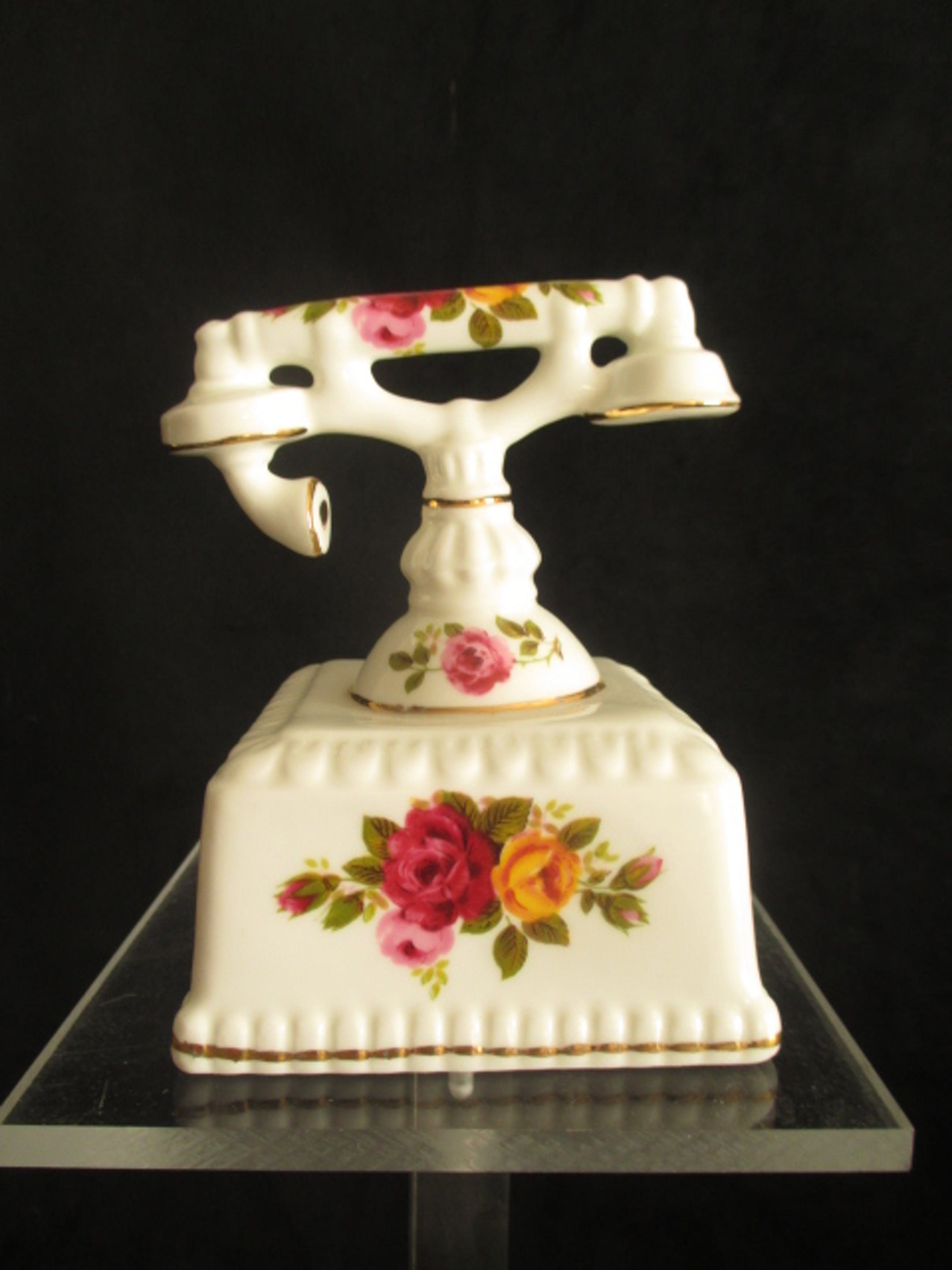 Collectie van Engelse porseleinen miniaturen «Cottage Rose» — 12 itemsVintage porseleinen miniaturen met afbeeldingen van romantische rosen met goeden accenten.Lot bestaat uit 12 miniaturen:- telefoon- zwaan- kassa- hert- locomotief- 2 kinderwagens (groot en kleiner)- naaimachine- ijzer- vaas- tuin kruiwage- stoelAlles is gemaakt van heel fijn hoogwaardig wit porselein en gemerkt.In top conditie!Afmeetingen: H van 6 tot 12,5 cm, L van 3 tot 11 cm.Aangetekende en verzekerde verzending.