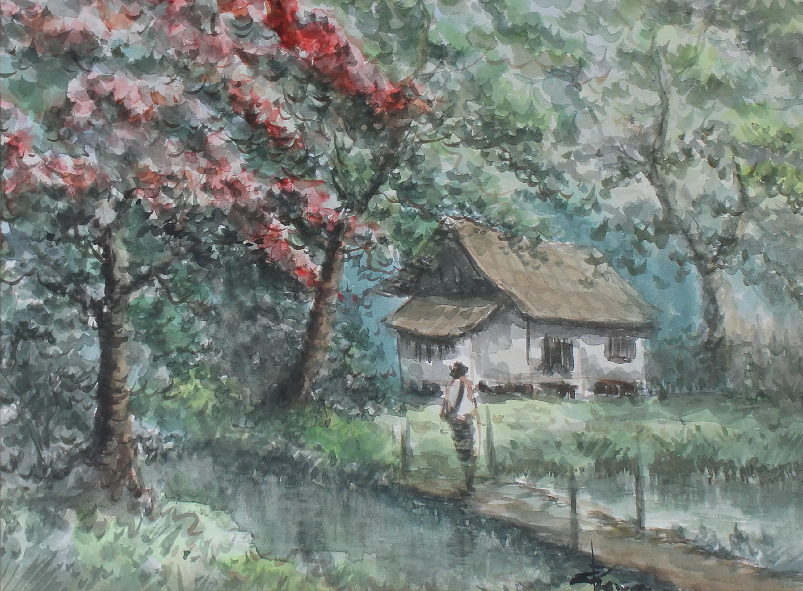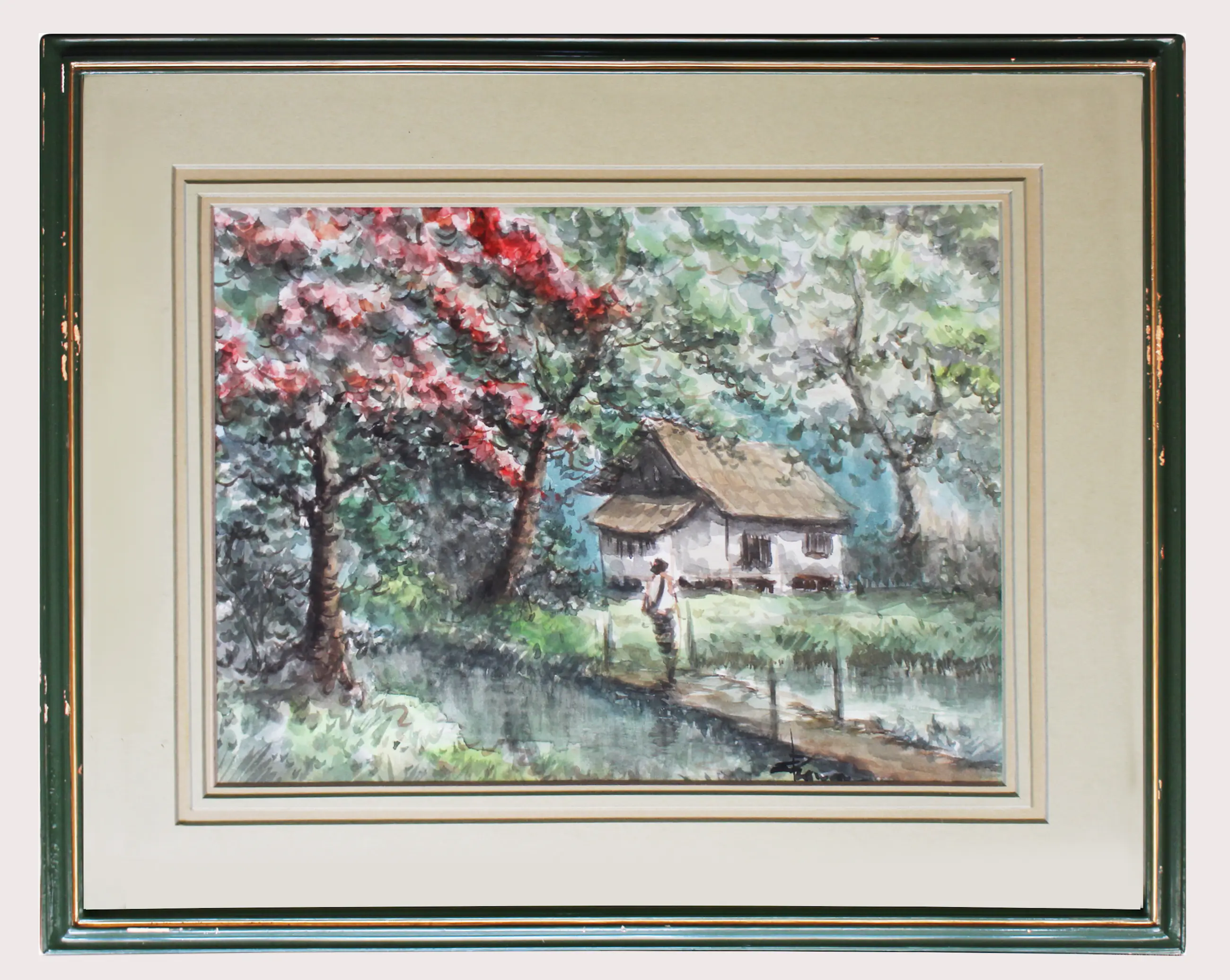de aquarellen zijn in zeer goede staat, de lijsten zijn iets beschadigd