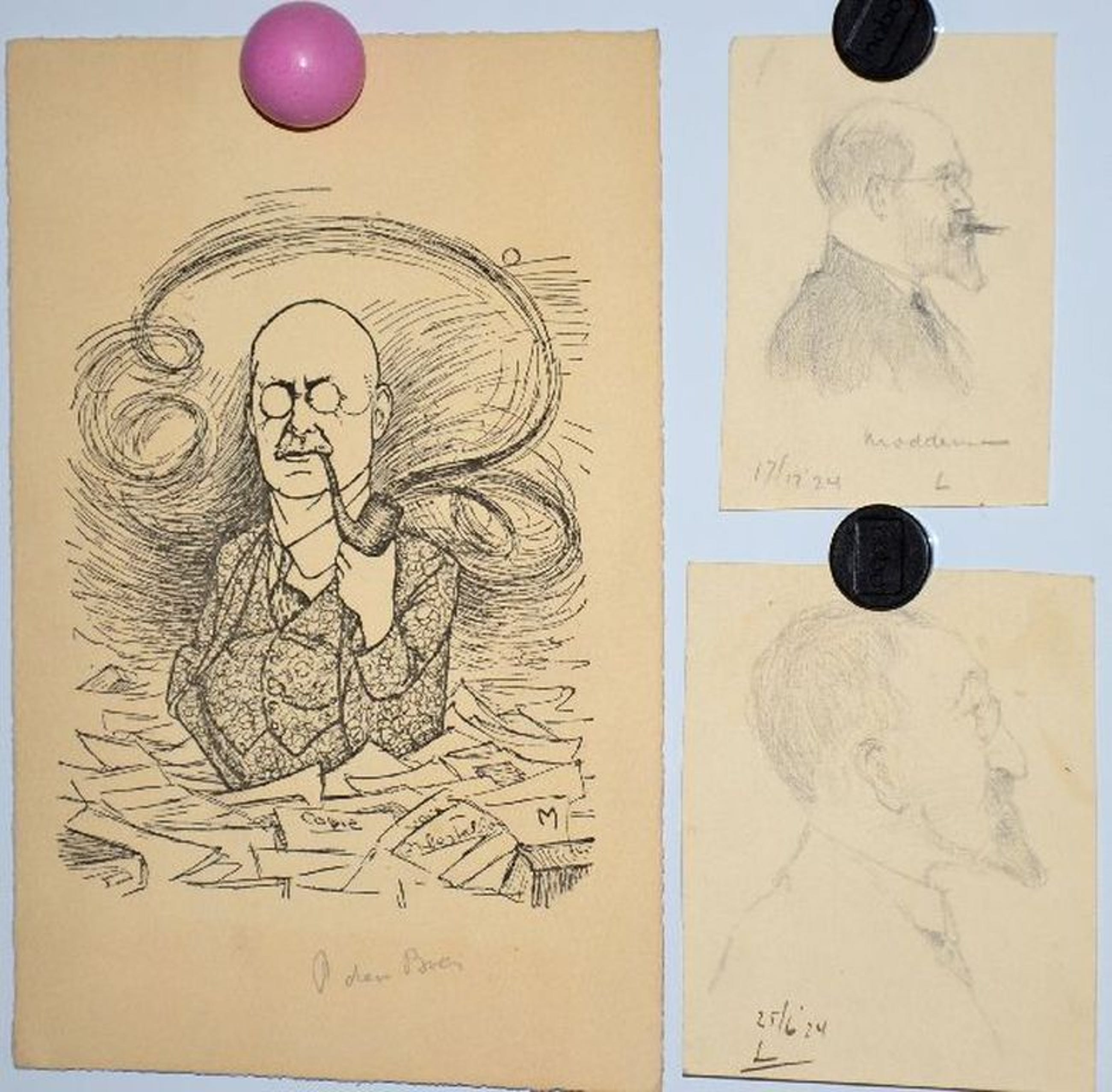 Twee potloodtekeningen van onbekende kunstenaar, gesigneerd met L.