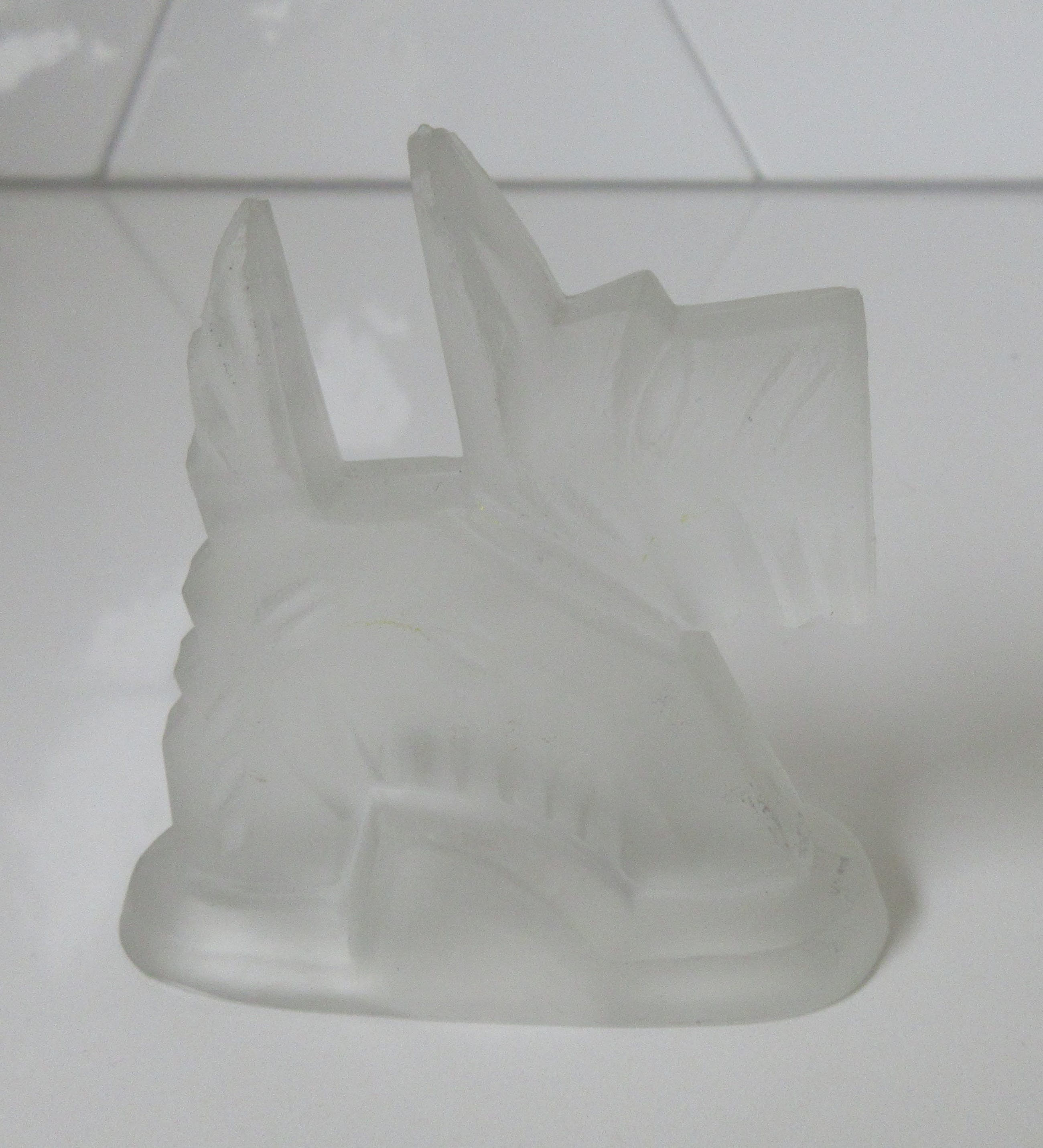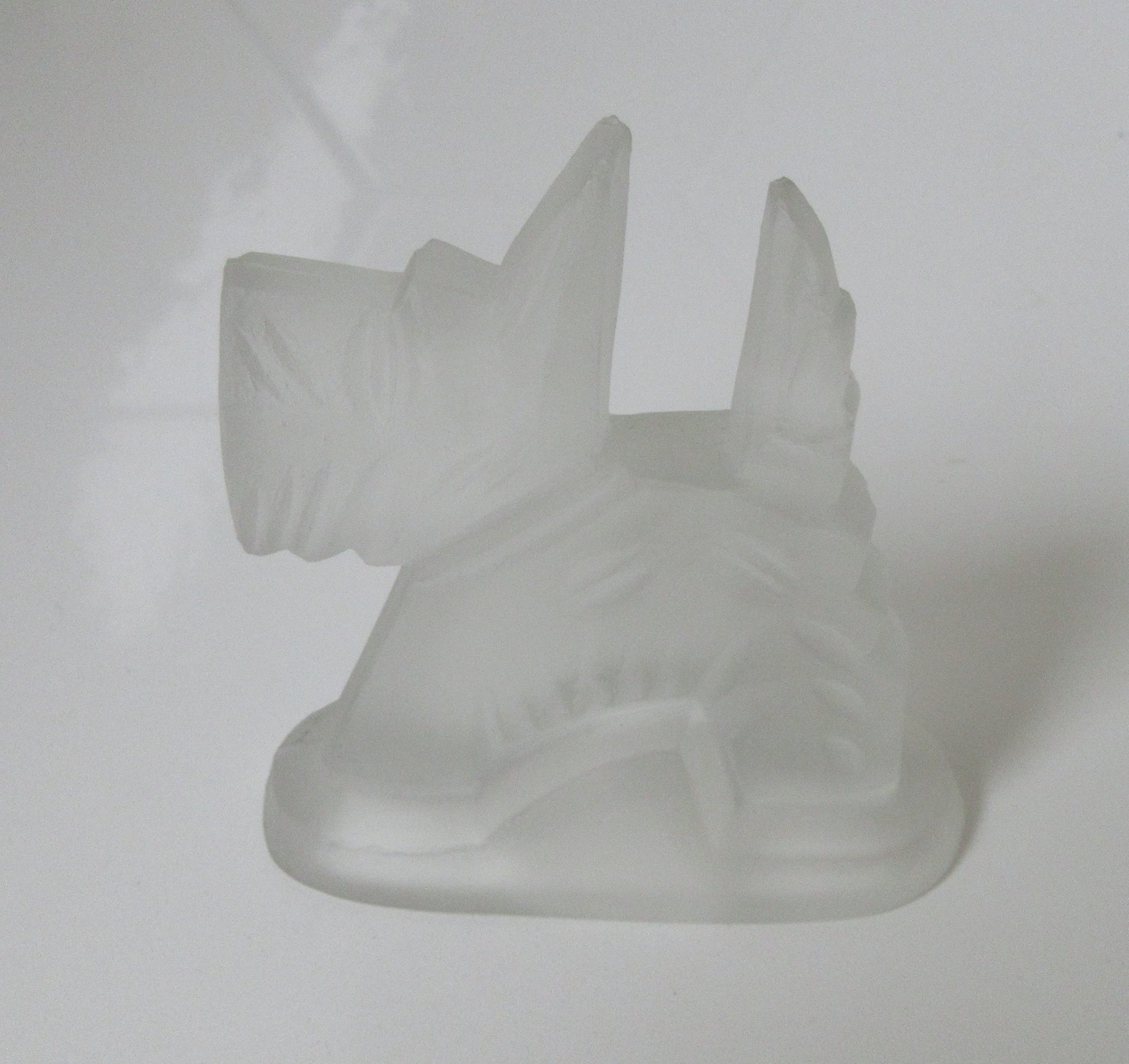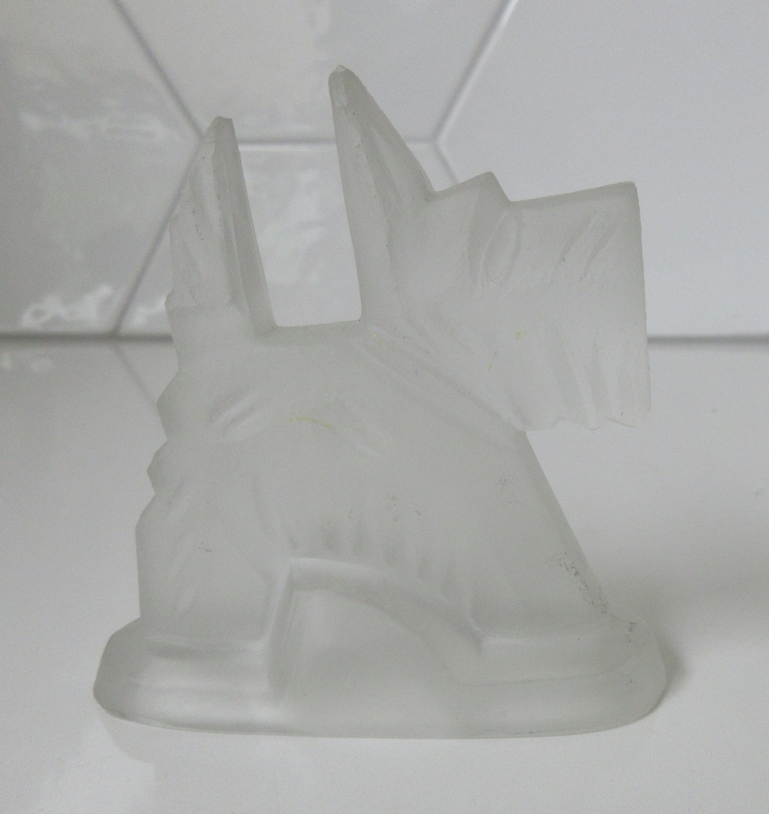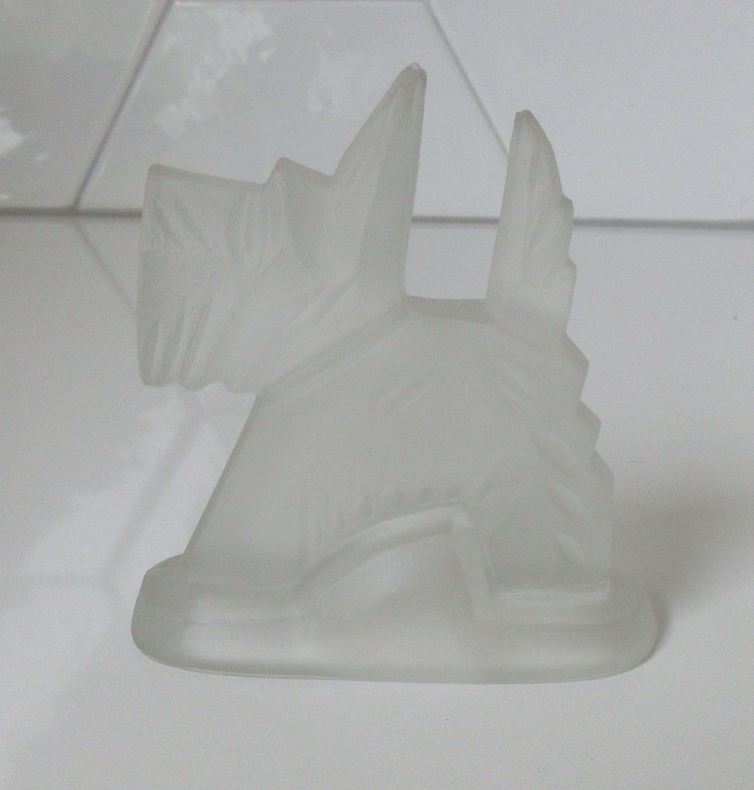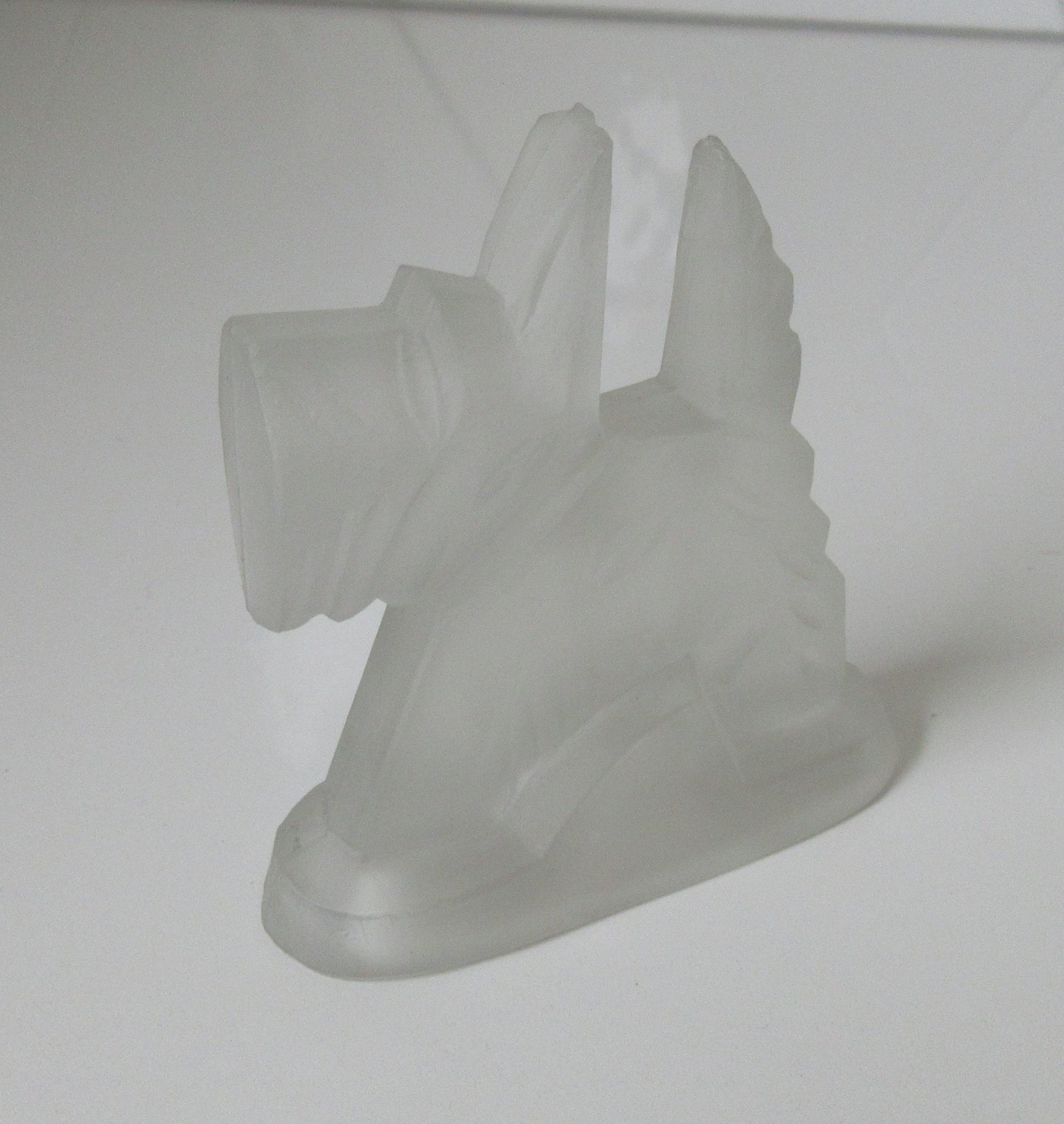 Art deco modernistsch mat persglazen figuur van een Scottie (Cairn terrier) maker onbekend, niet gesigneerd. Maar mogelijk van Tsjechische of Franse makelij. In prima conditie.
