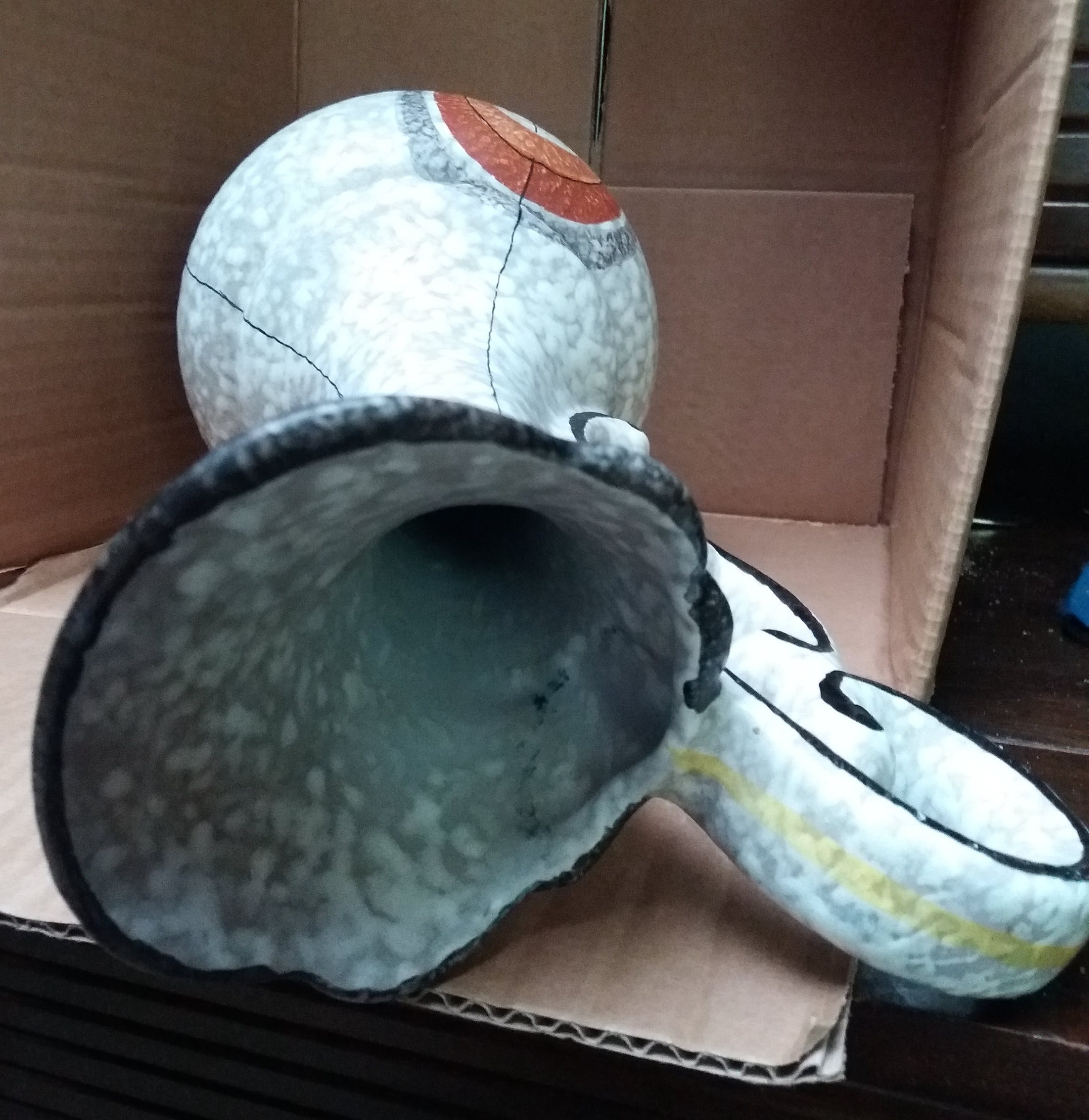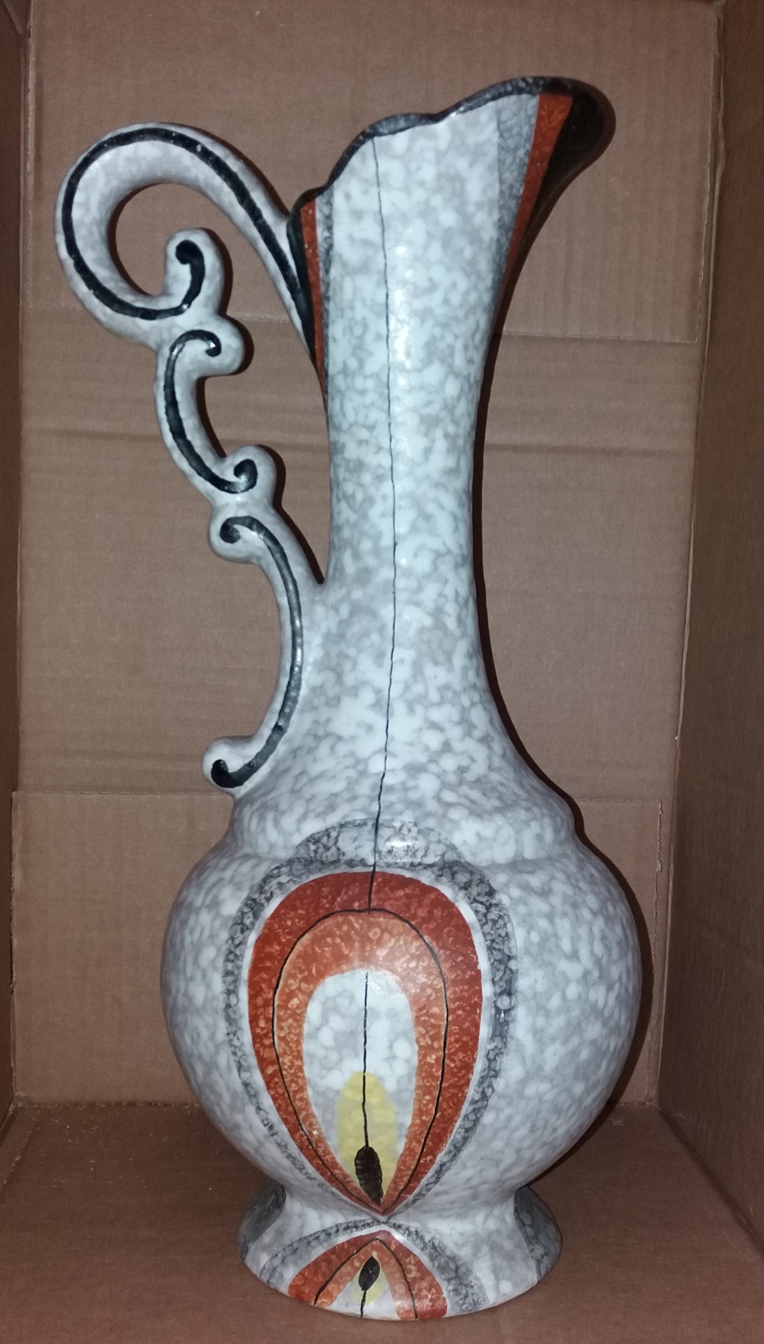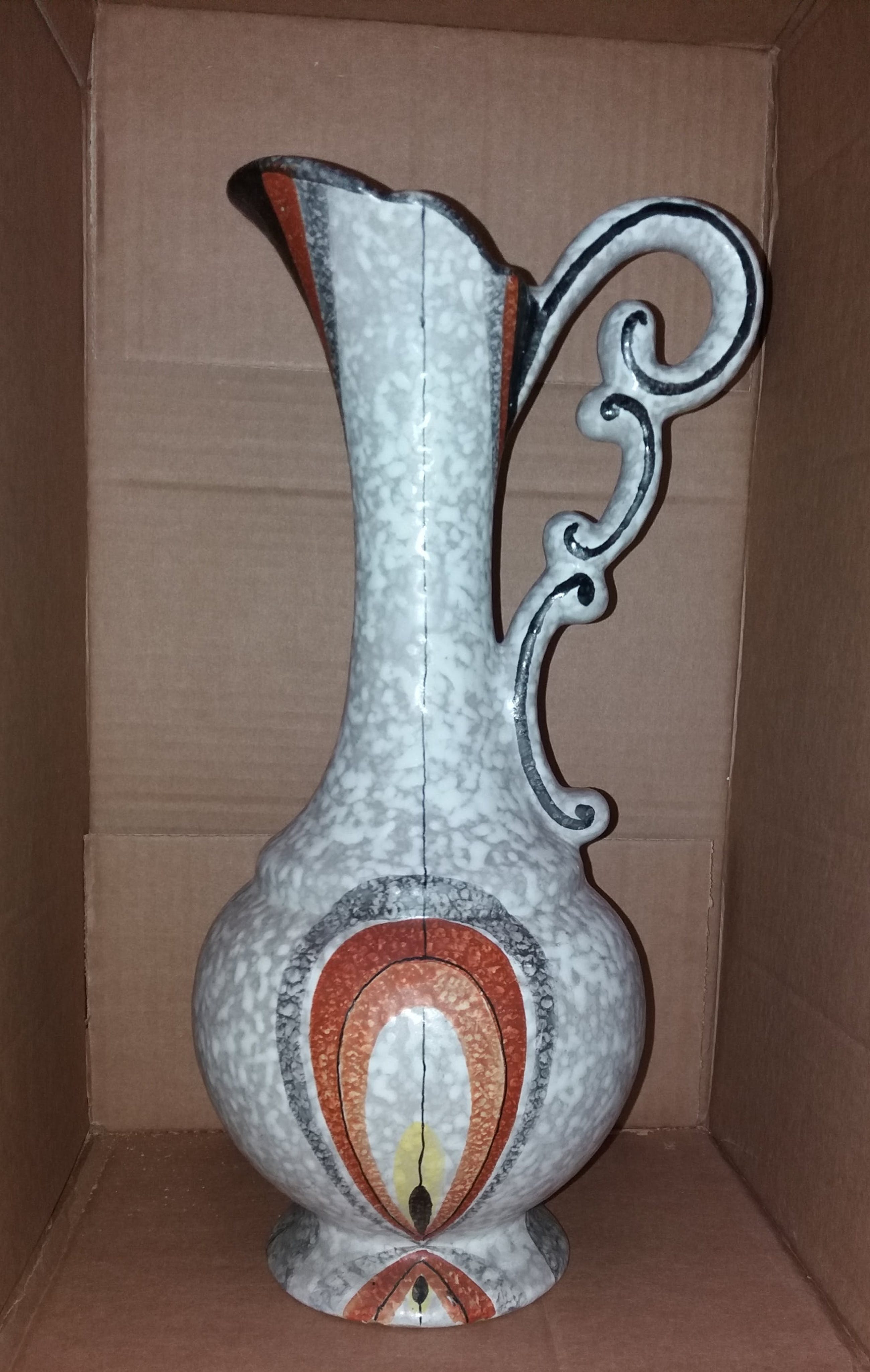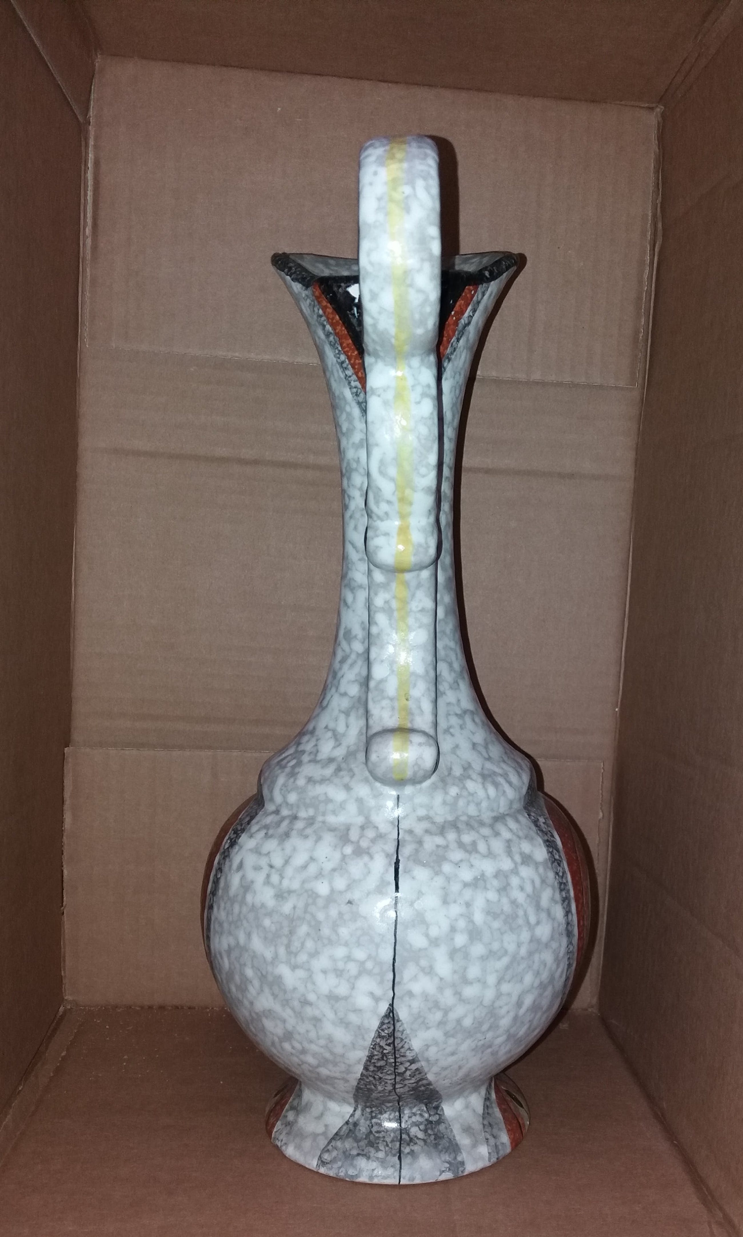 In zeer goede staat art deco vaas .Of waterkruik .Gesigneerd aan de onderkant met ella 1005 hoogte 39. cm .Word goed verpakt voor verzending met track en trace.