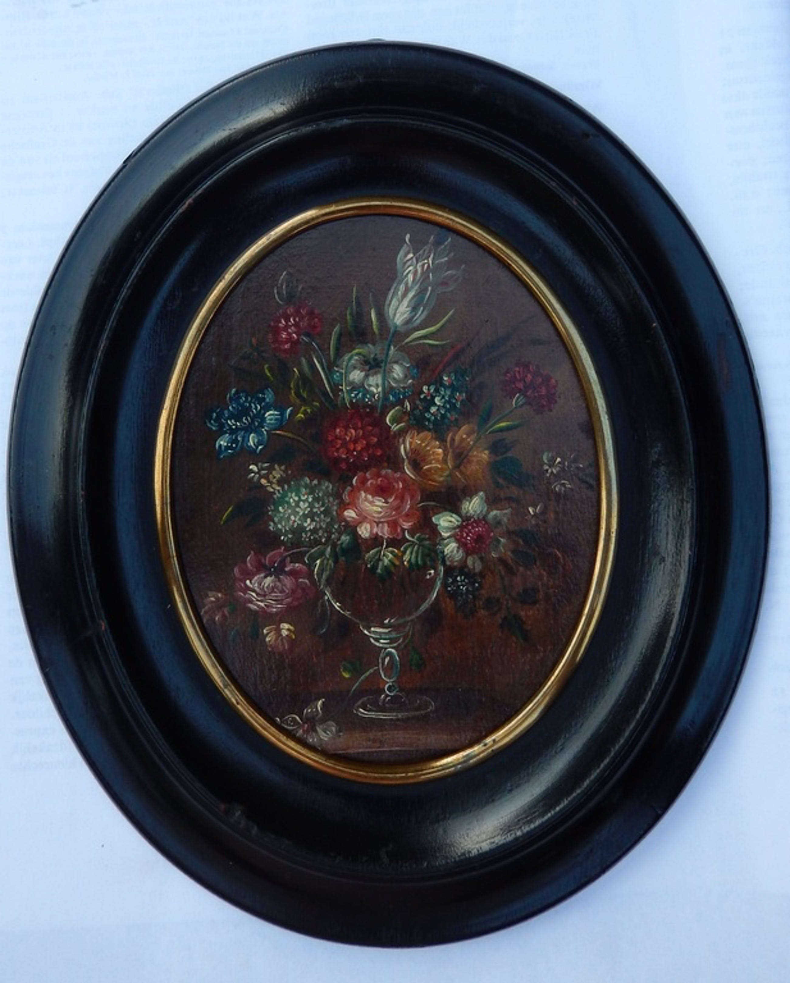 Bloemstilleven fleurig gevulde vaas Ovaal miniatuur 1750