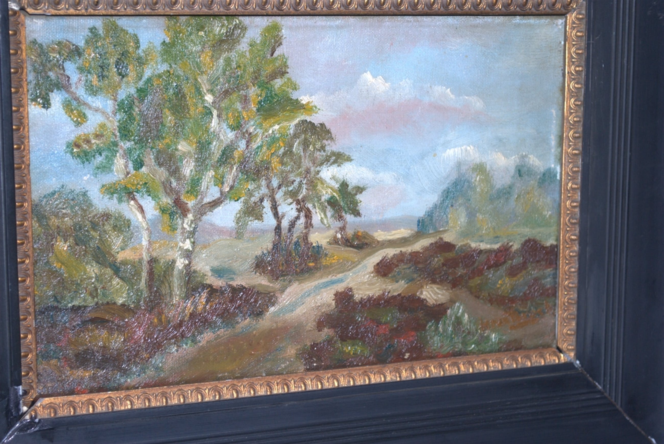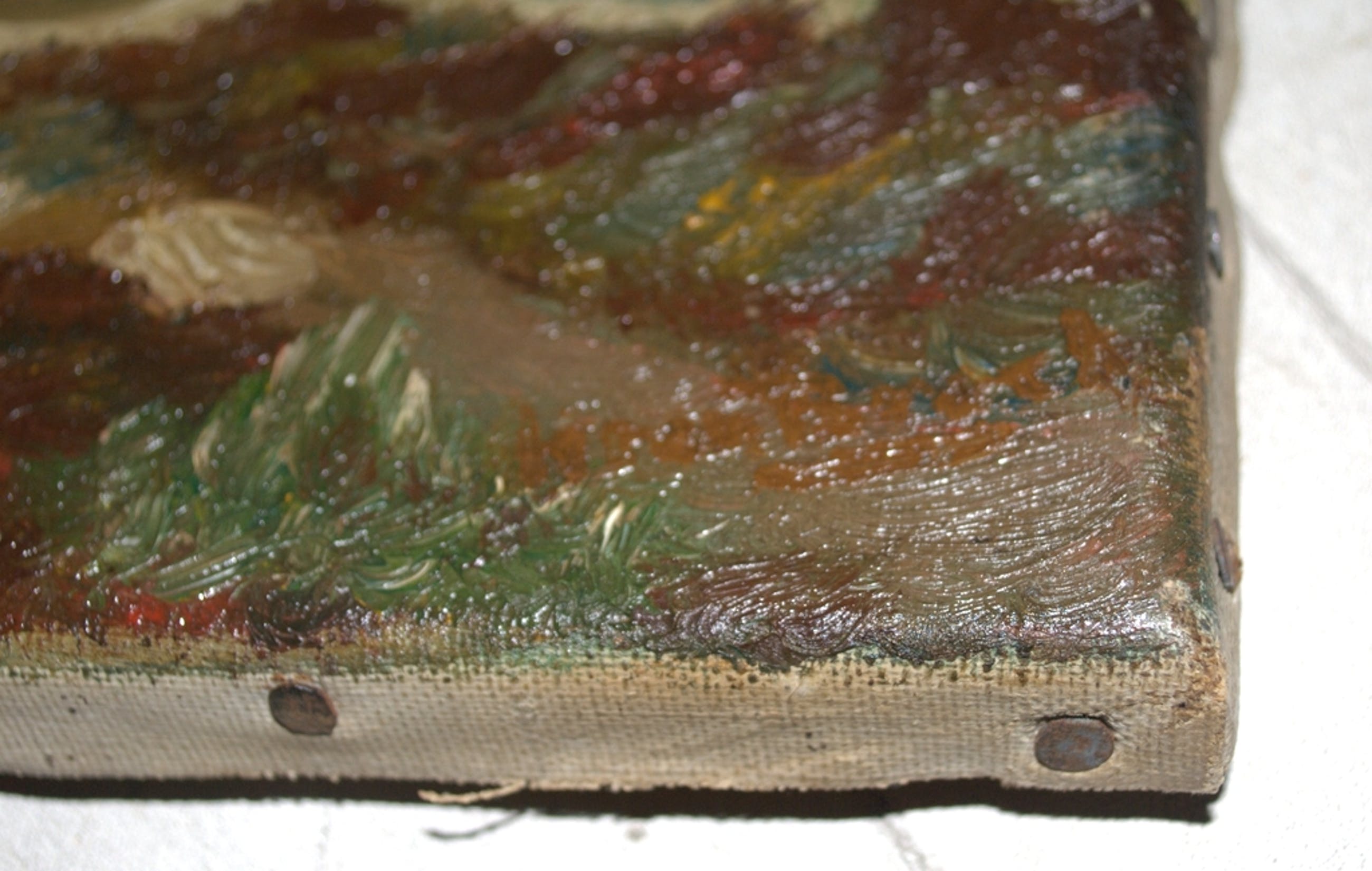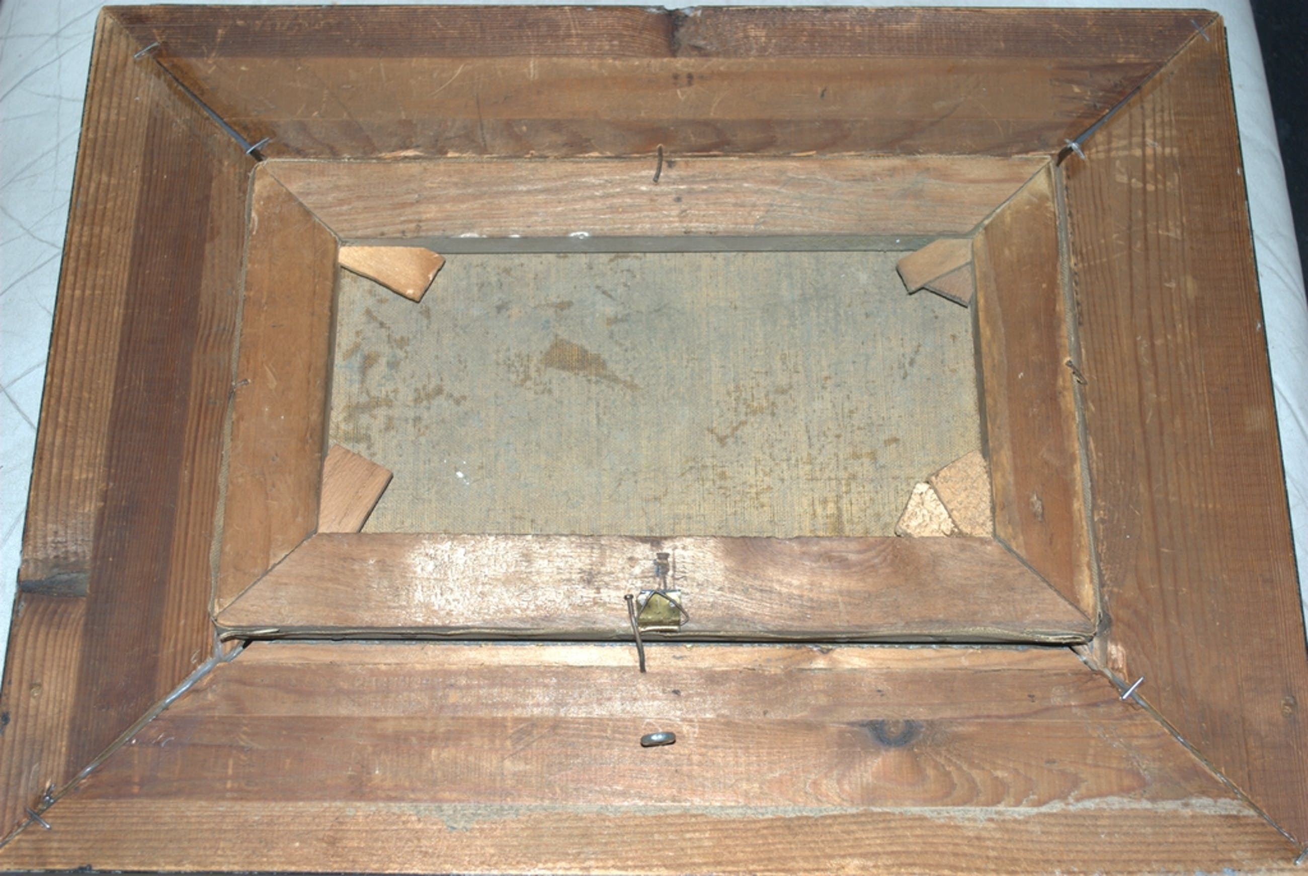Formaat spieraam ca. 18x30 cm, het doek is in goede staat, wat randschade.