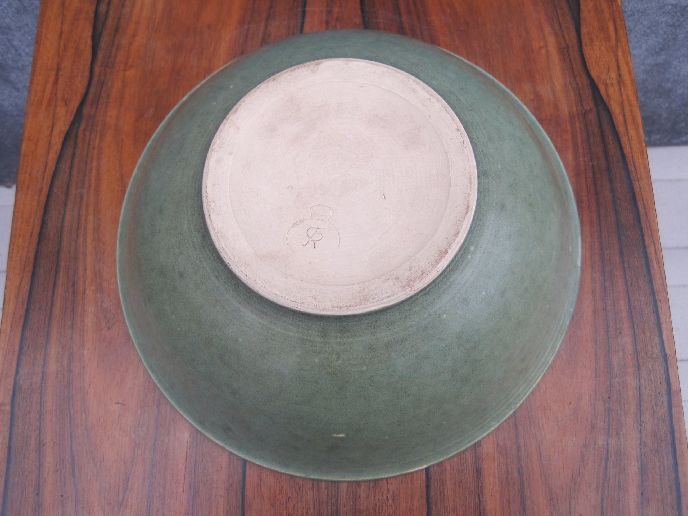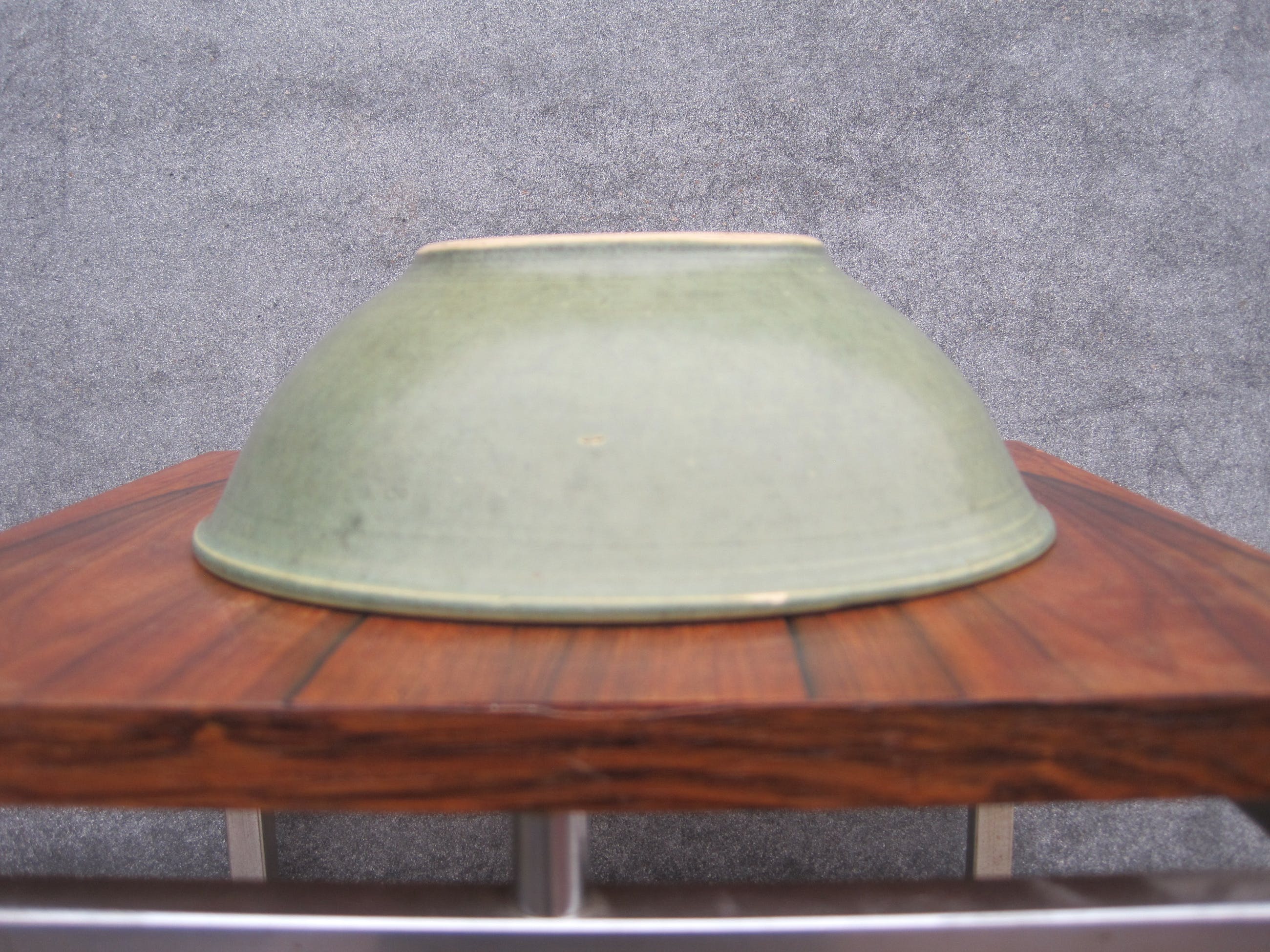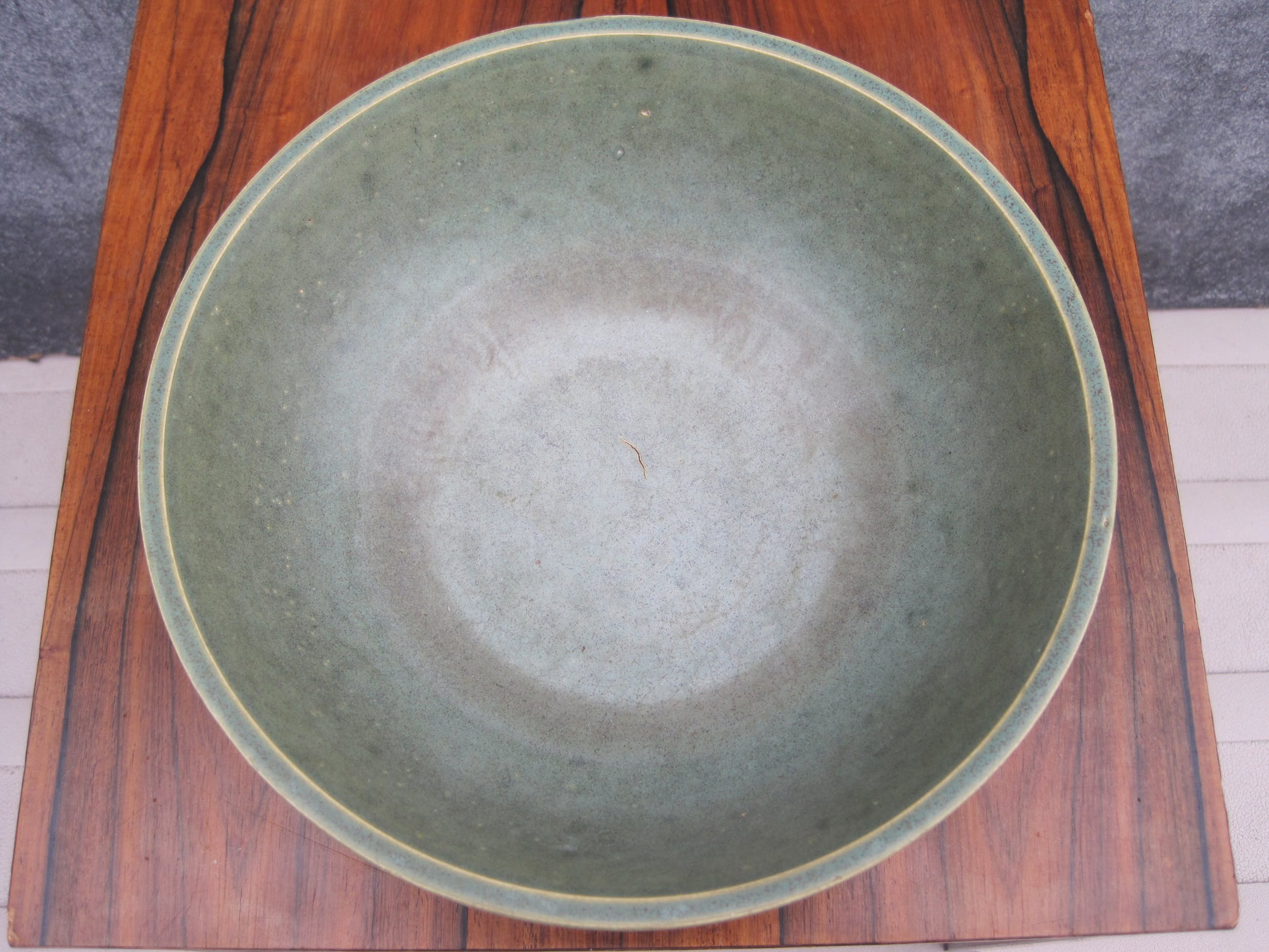 Een mooie kom of schaal in de kleur groen van Caledon . Deze schaal komt niet uit Azië, maar uit Europa. Op enkele glazuurfoutjes na verkeert deze kom in een heel goede conditie. Gemerkt op de achterkant.