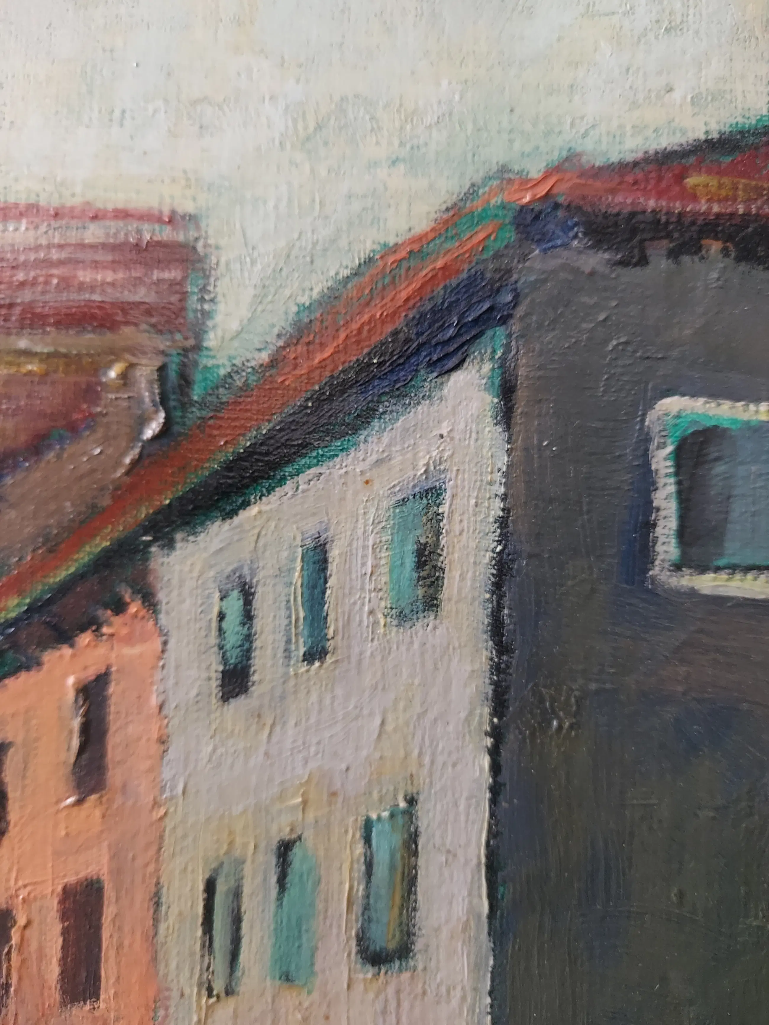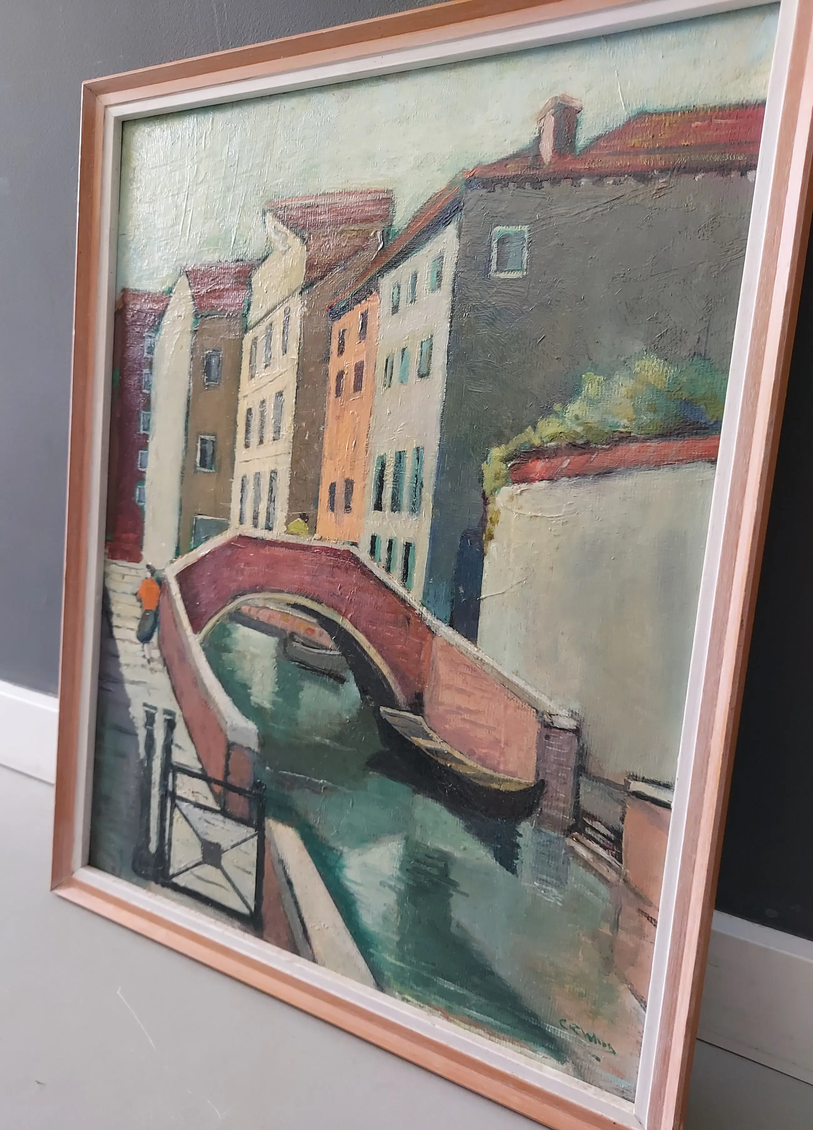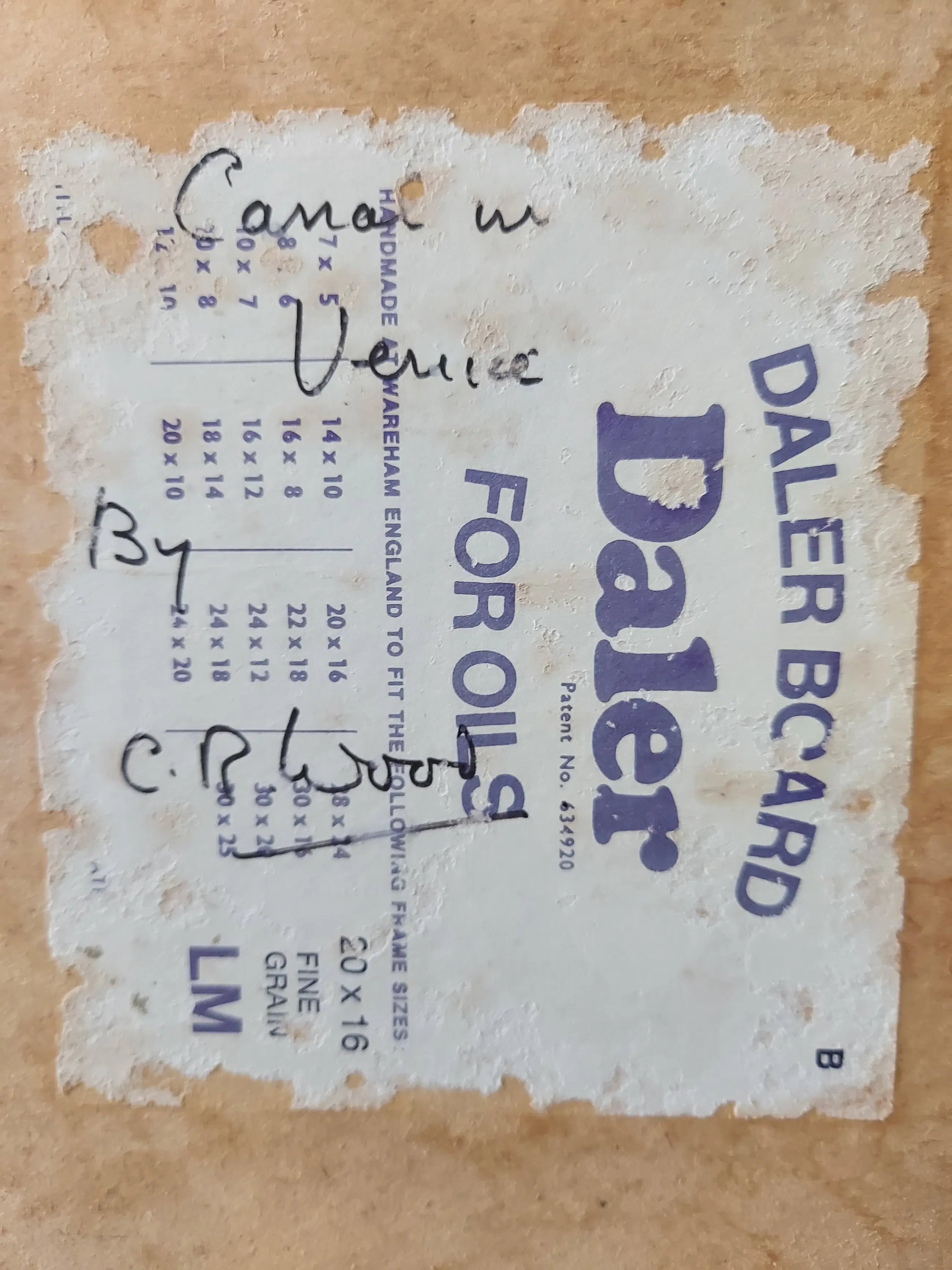 Prachtig kunstwerk "Canal in Venice" gesigneerd door CR Wood Olieverf op paneel, 45 x 36 cm. Afmeting incl. lijst 48 x 38 cm.