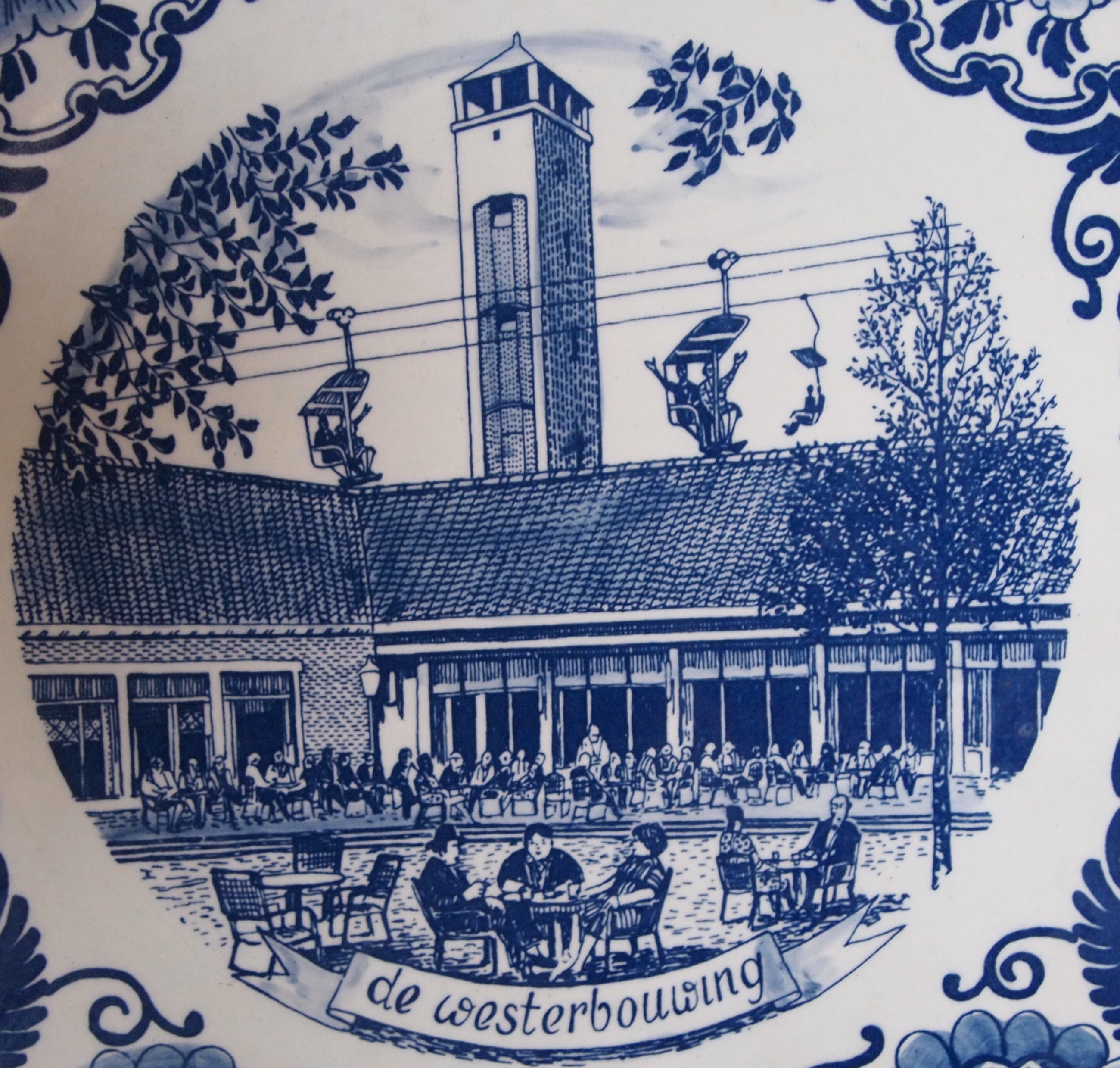 Delftsblauw wandbord "De Westerbouwing" in Oosterbeek. In prima onbeschadigde conditie en gemerkt aan de achterzijde. Aardewerkfabriek onbekend.