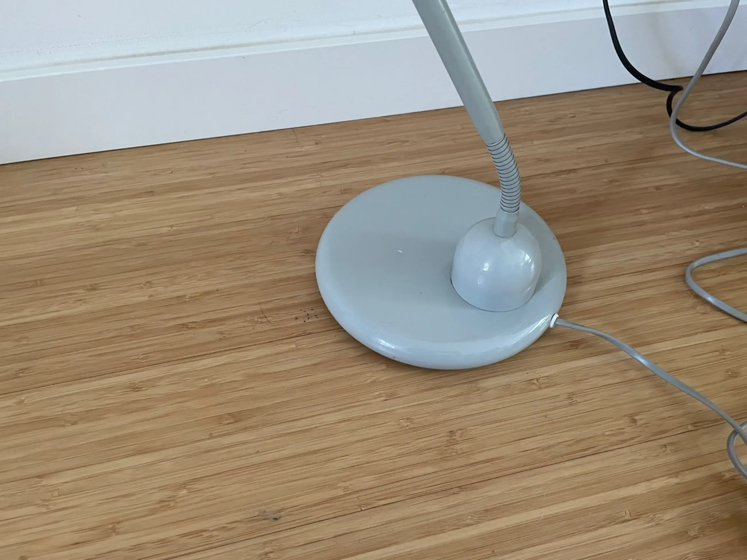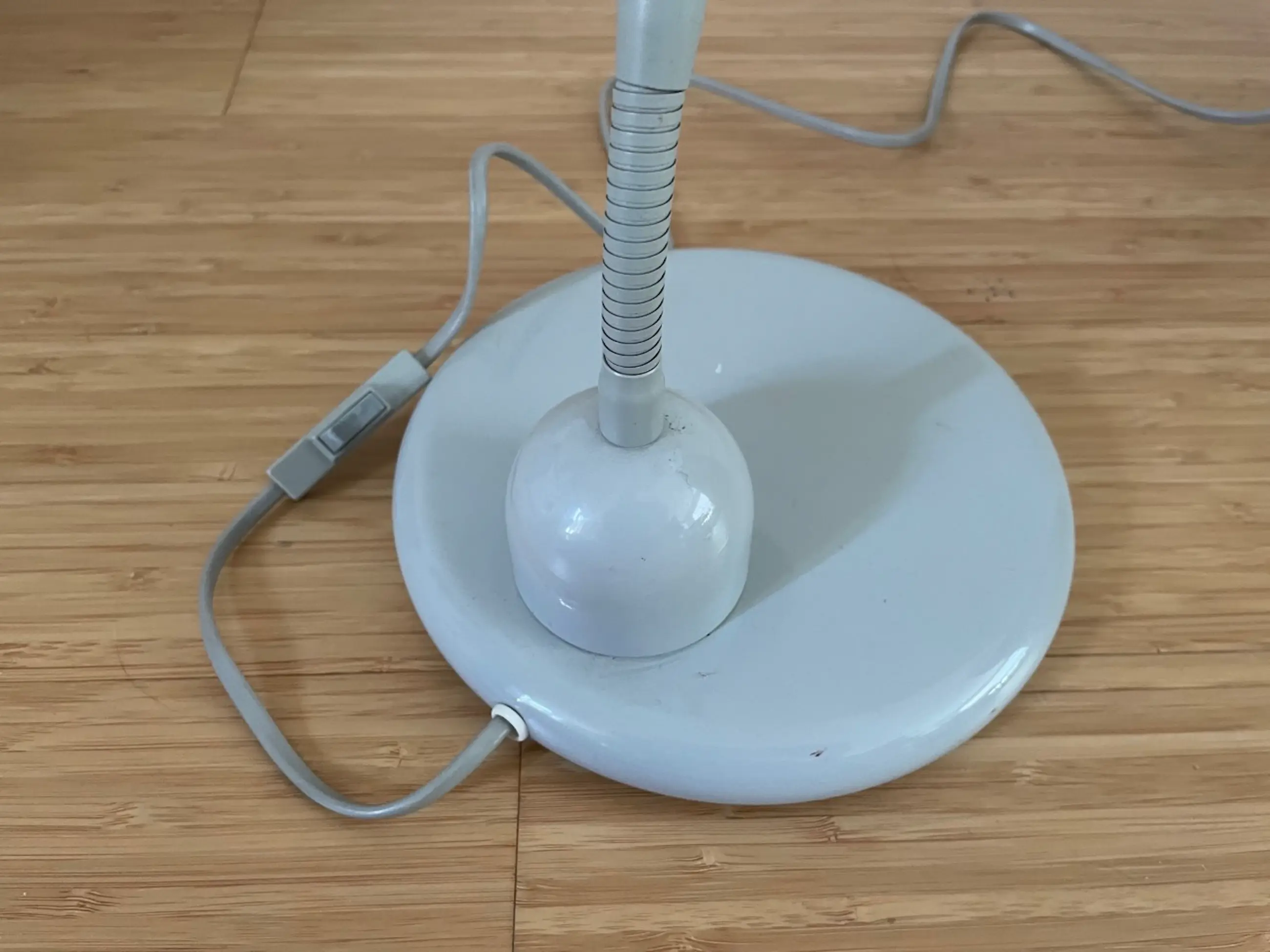 Franse grijze metalen design tafellamp of burealamp. In prima vintage werkende conditie. Restant van een merksticker aanwezig. Maar zeer waarschijnlijk een product van het Franse merk Aluminor.