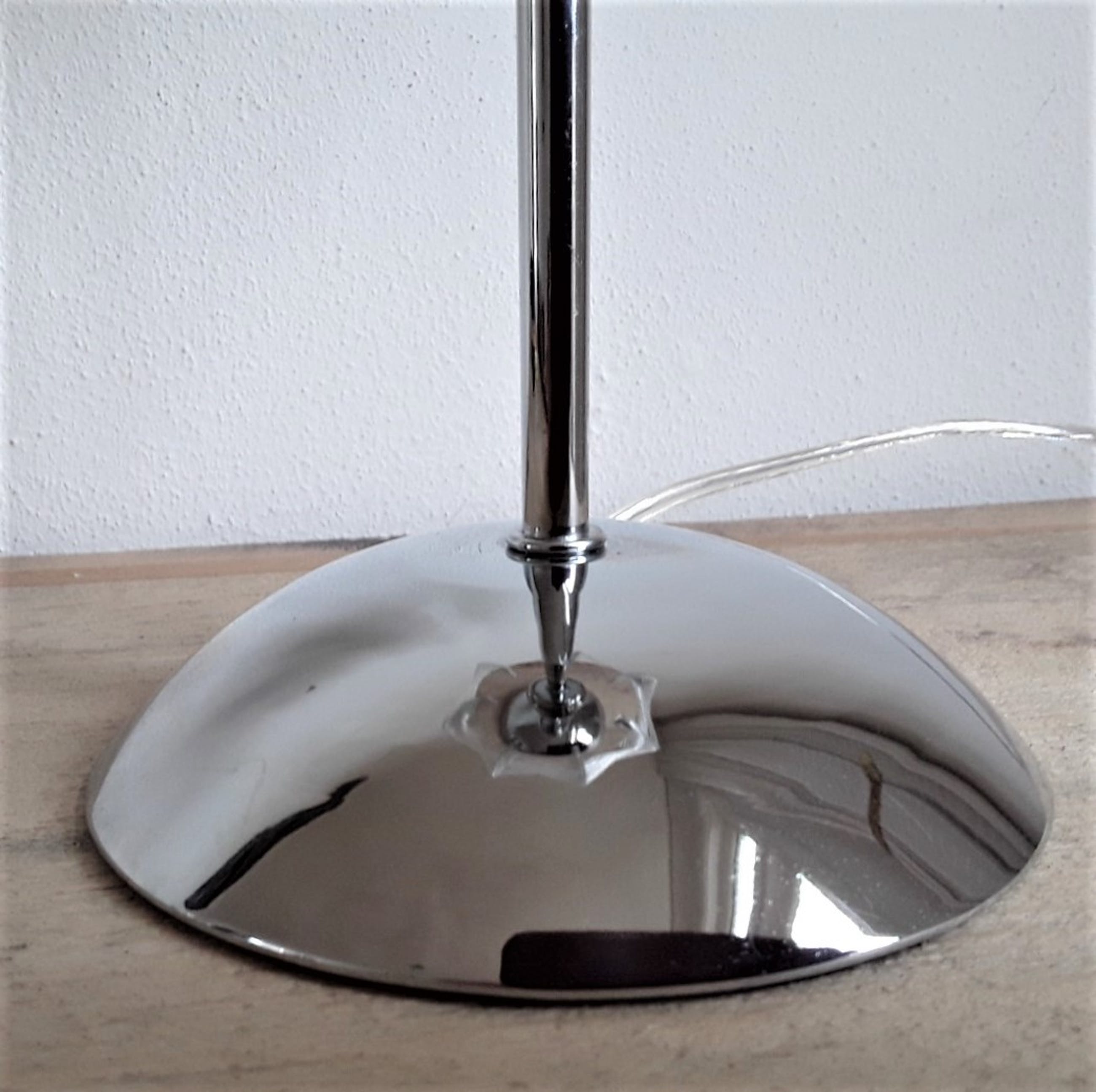 Details Merk: Globo Model: 12827 Periode: Midden 20e eeuw Hoogte: 36 cm Bol: Rond 17 cm Voet: Rond 14 cm Lamp: 40 watt Lampfitting: E14 (klein) Bediening: Snoerschakelaar Snoerlengte: 170 cm Verpakkingsgewicht: ca 1,5 kg