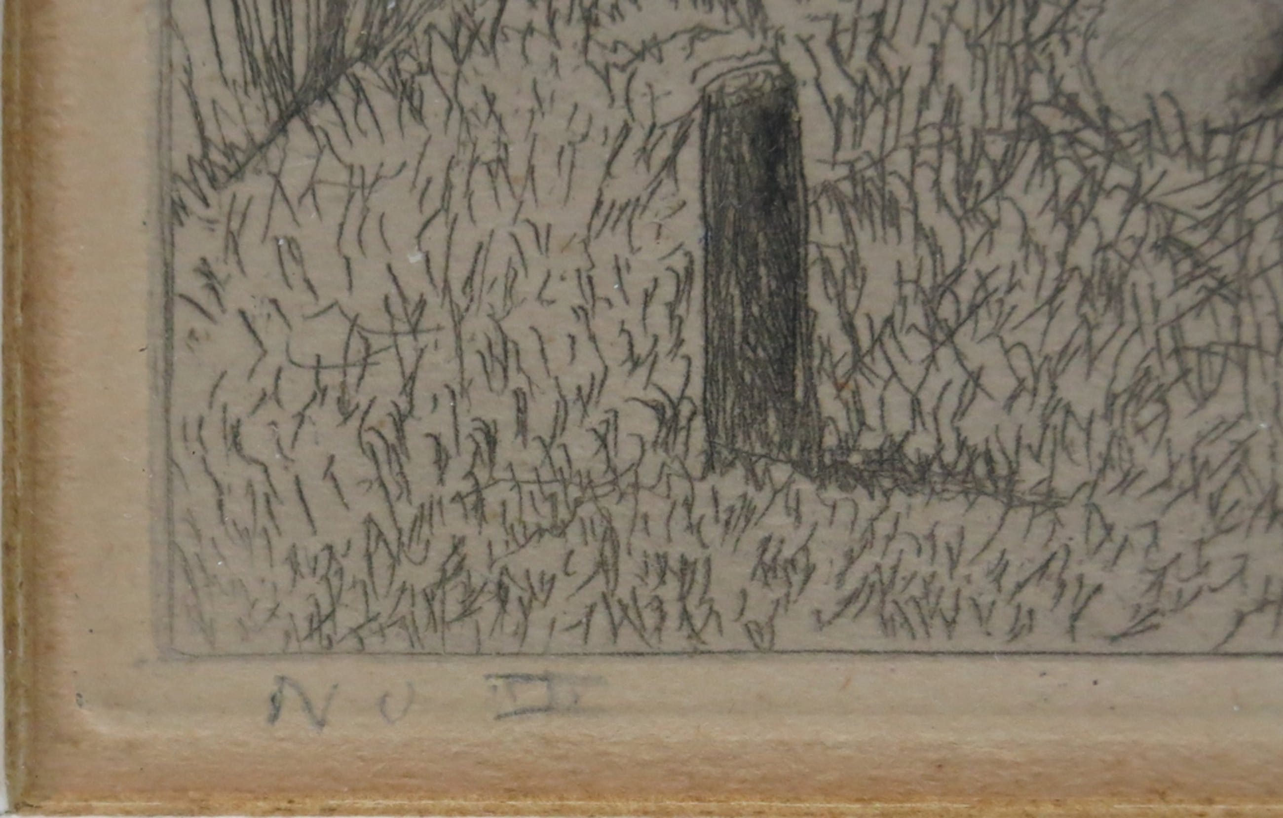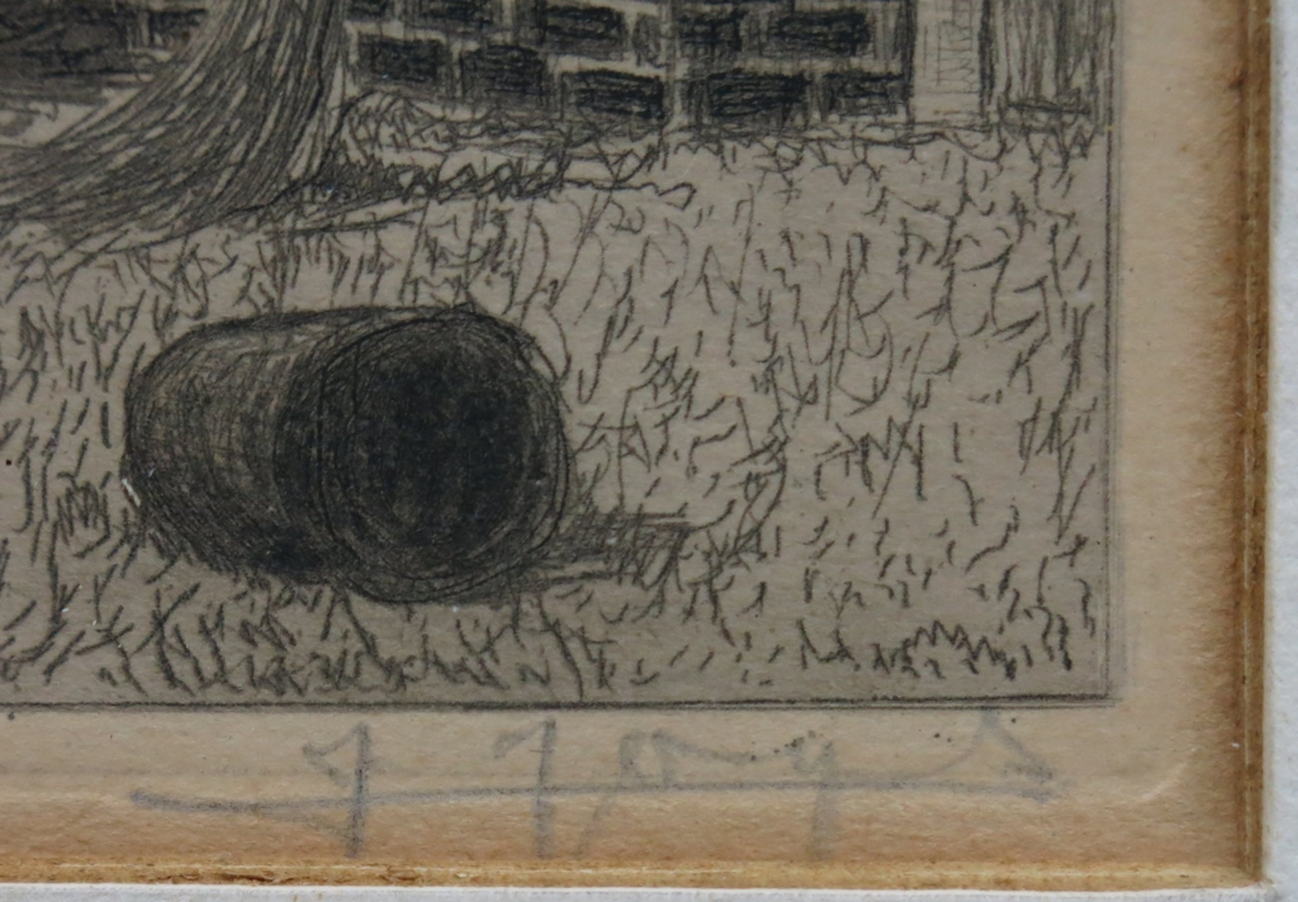 Ets met een lieflijke voorstelling en een voor ons helaas slecht te lezen en onbekende signatuur.
