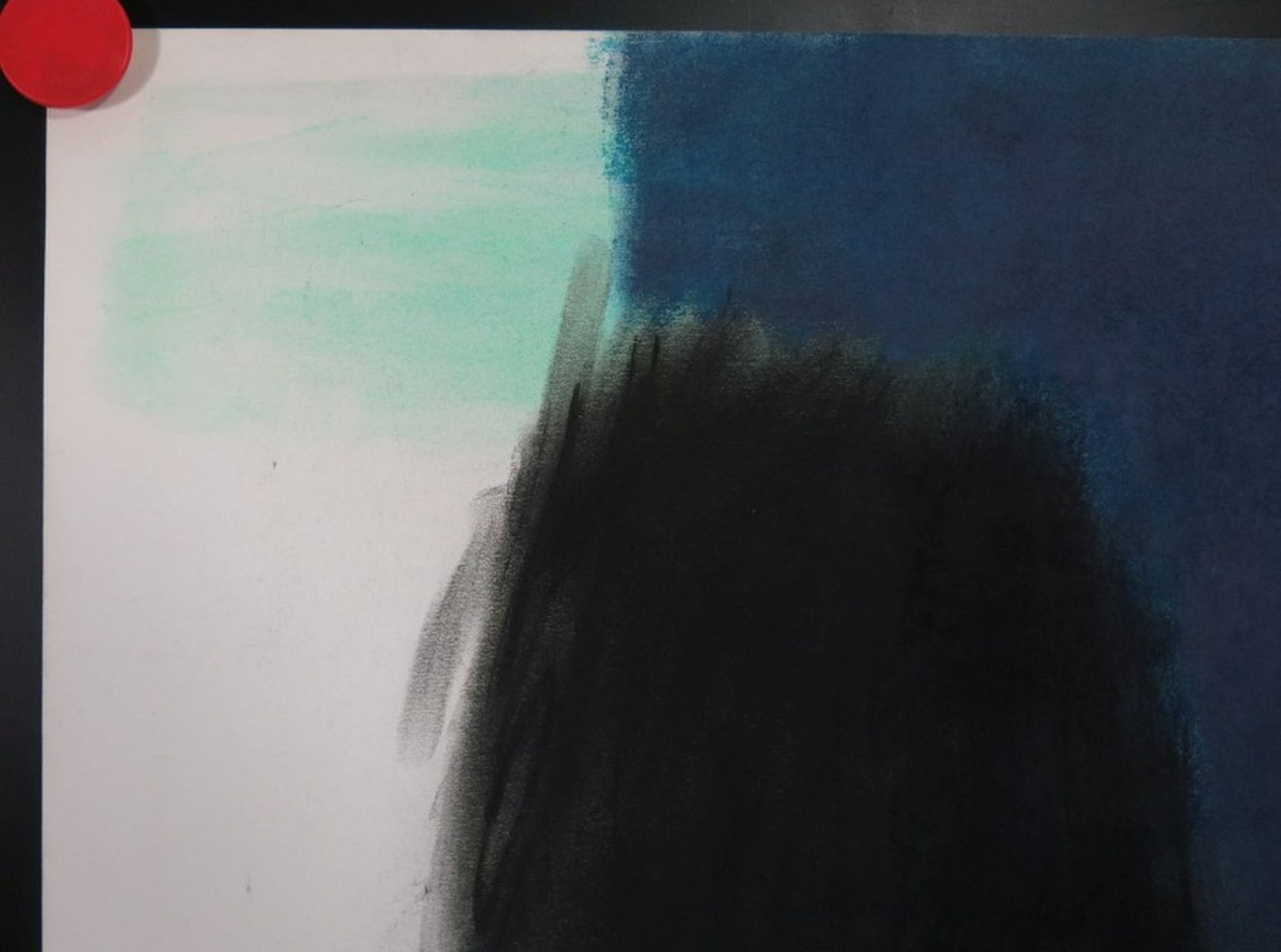 Materiaal: Krijttekening op geschept papier (Blauw toont werkelijk paars)