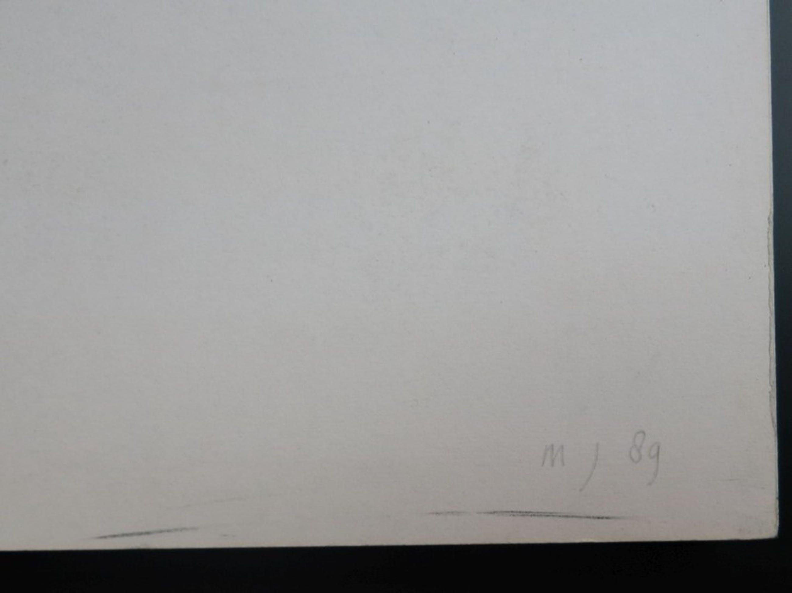 Gesigneerd: Ja, handgeschreven met potlood (rechtsonder), (M.J.)