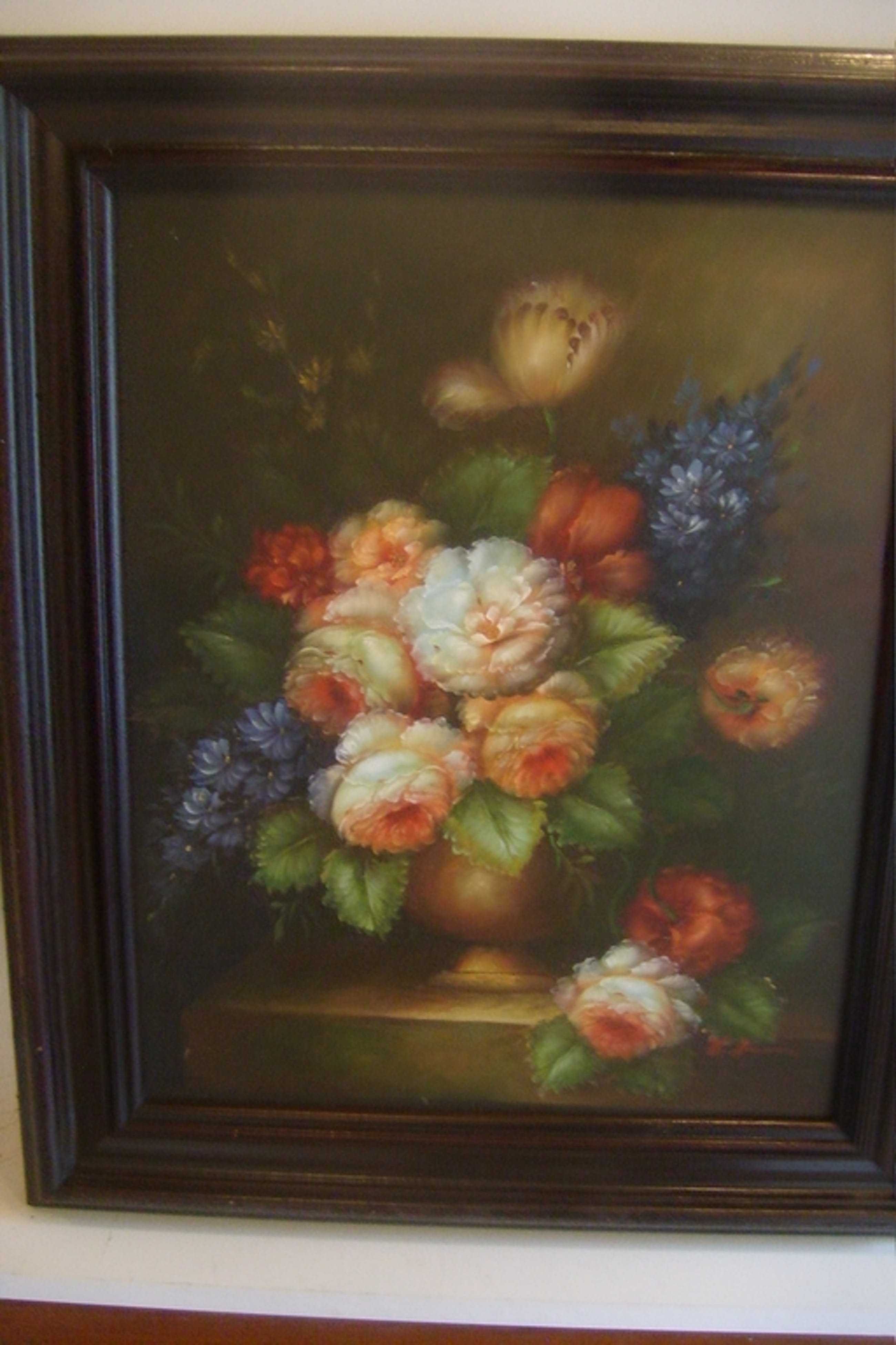 onbekende meester, stilleven met bloemen en vaas, gesigneerd, r.o. niet leesbaar.