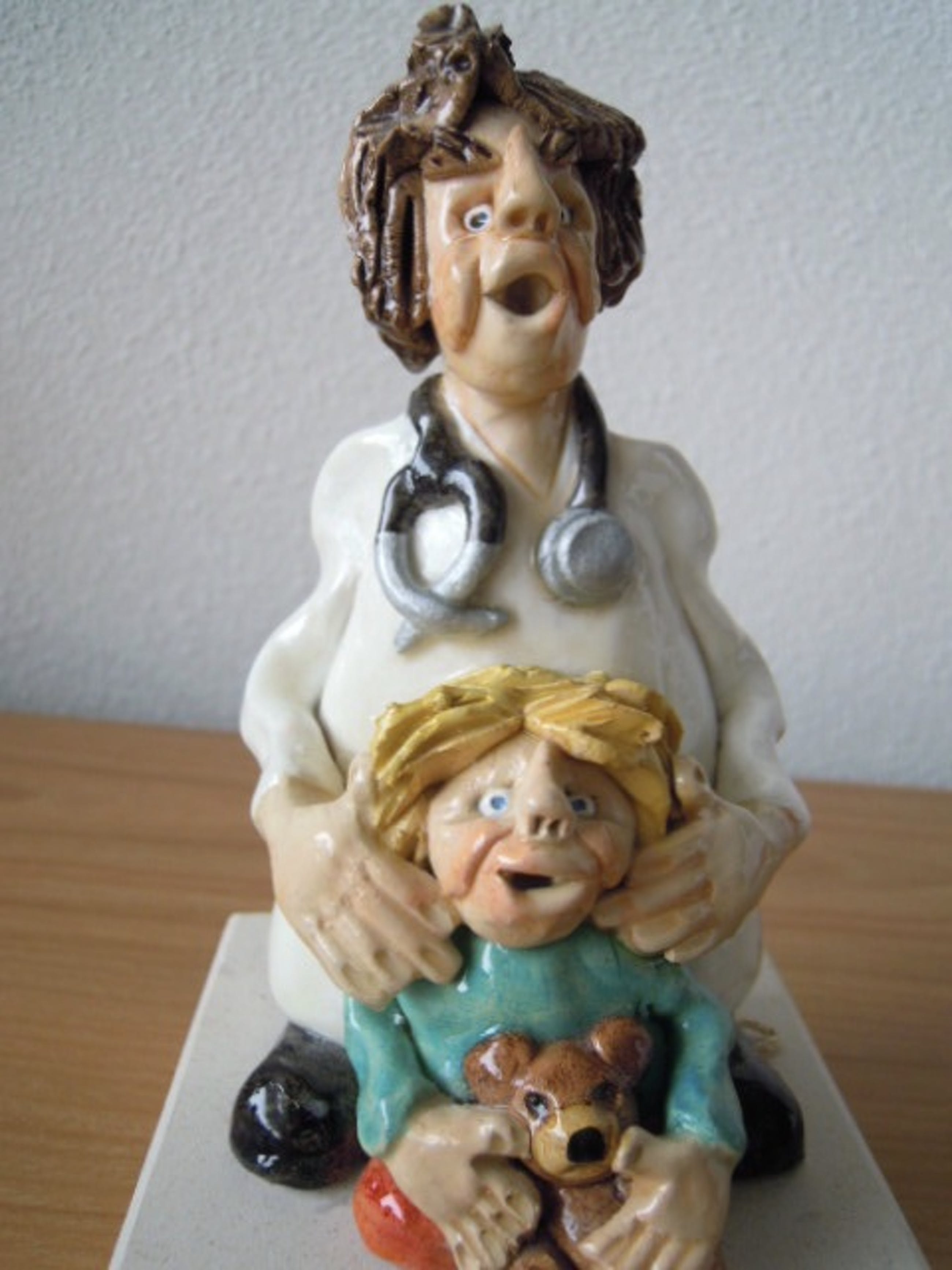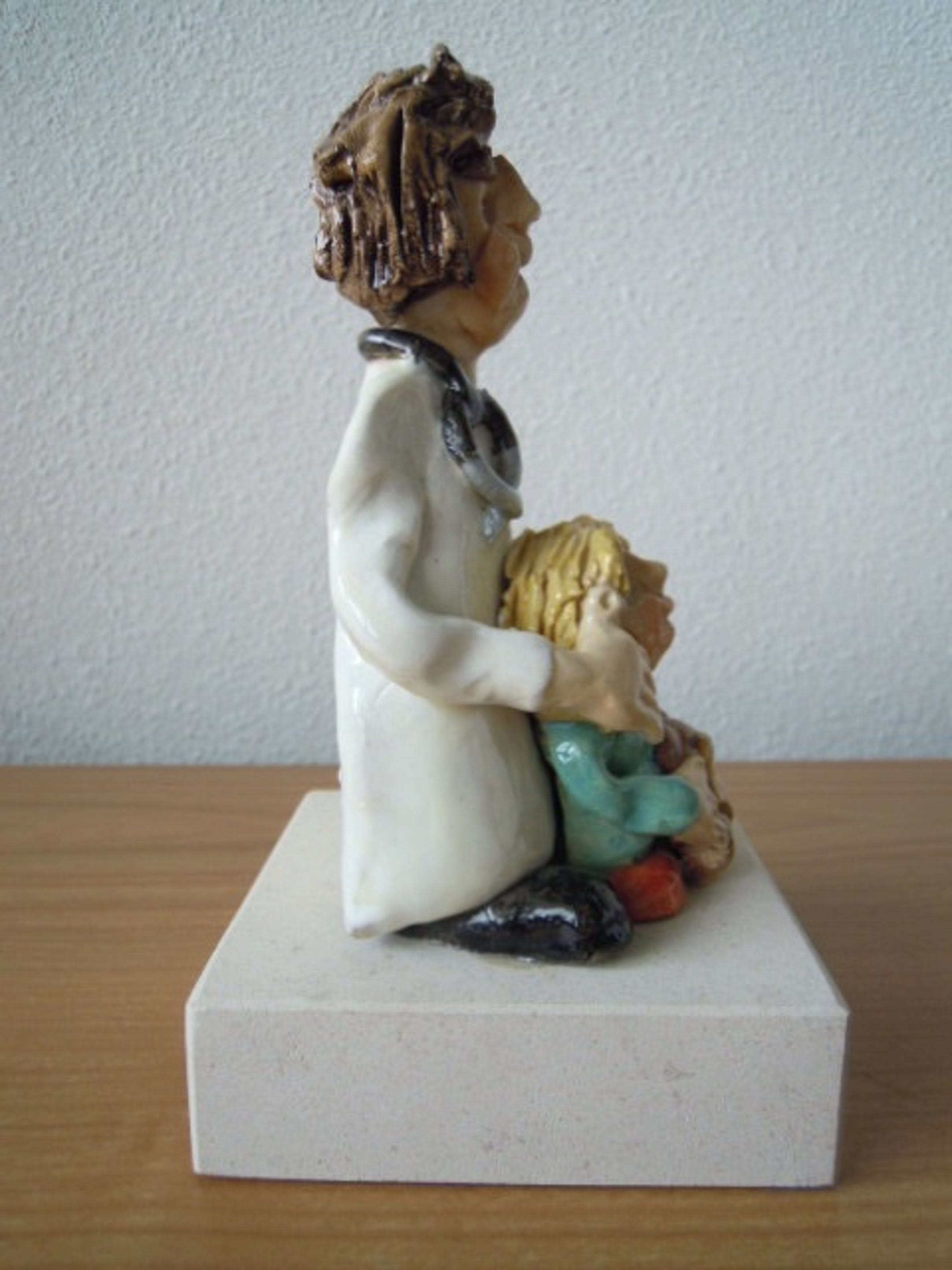 Handgemaakt gesigneerd beeldje van DOKTER MET KIND.