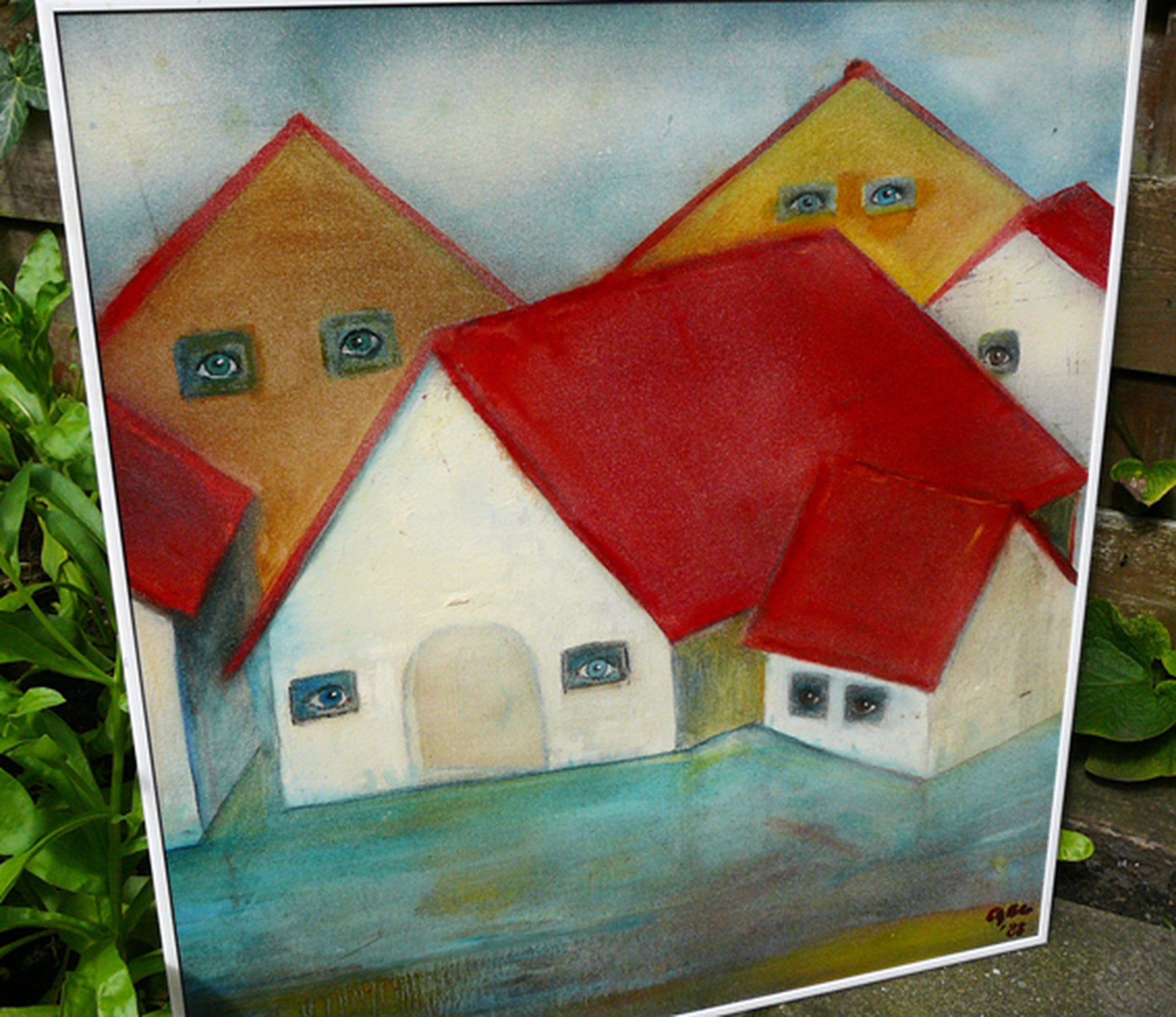 Markant olieverf op paneel van een mij niet bekende kunstenaar. Rechtsonder onleesbaar gesigneerd en gedateerd 1988. Degelijke, wit gelakte wissellijst. Af te halen in Utrecht of verzending in overleg.