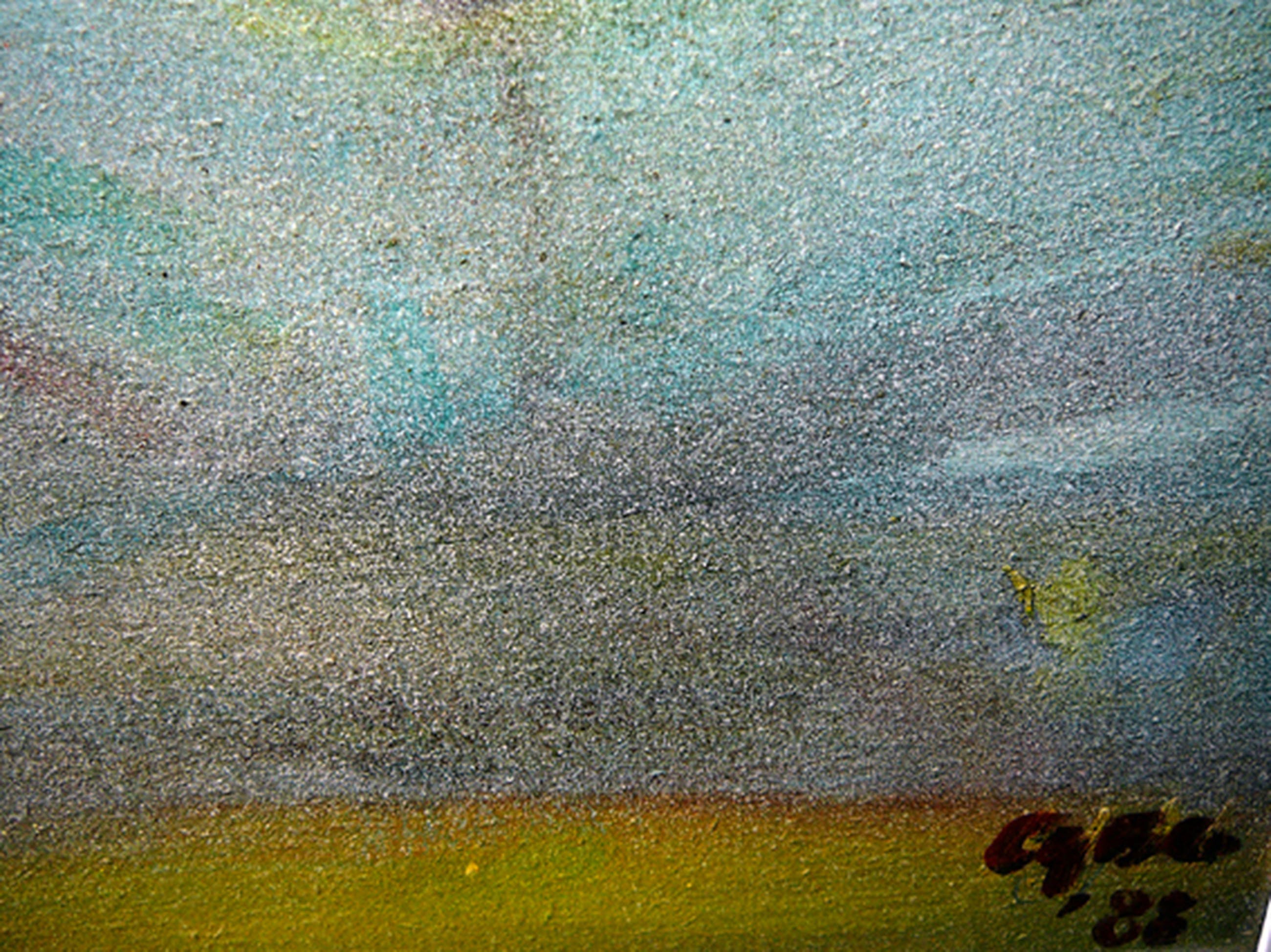 Formaat: 58 x 60 cm Techniek: olieverf op paneel Gesigneerd: ja, onleesbaar Creatie: 1988 Conditie: zeer goed