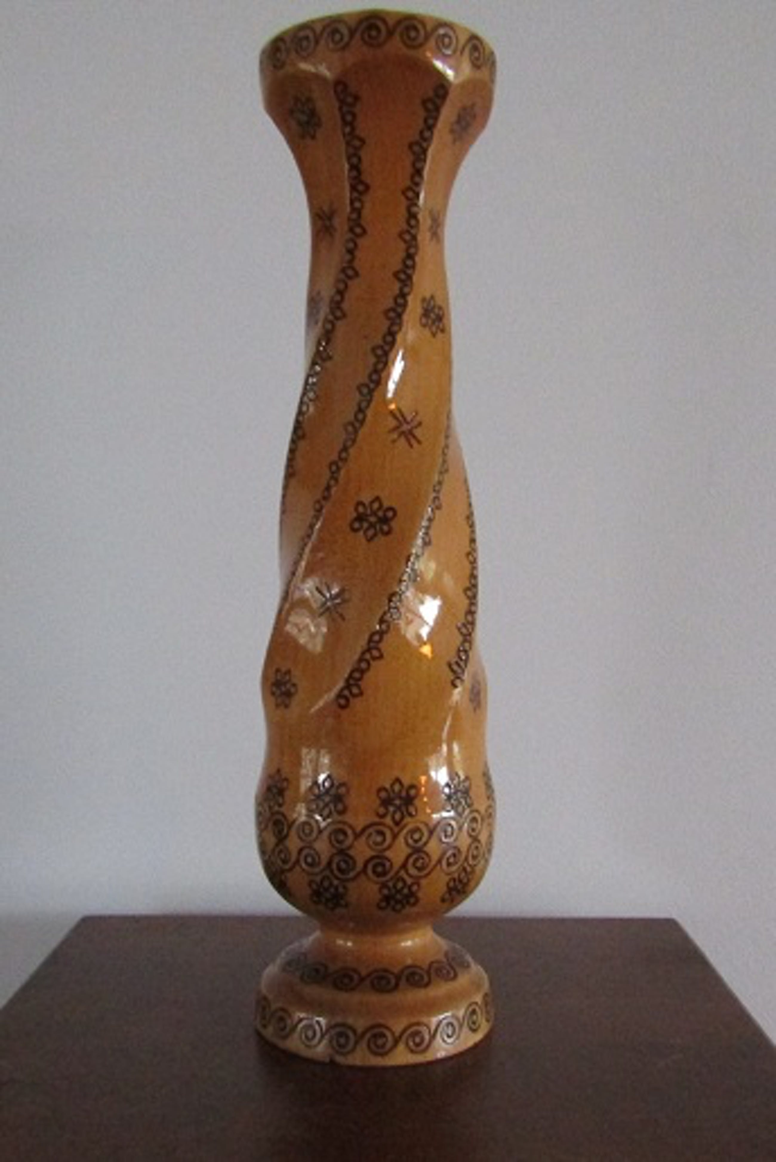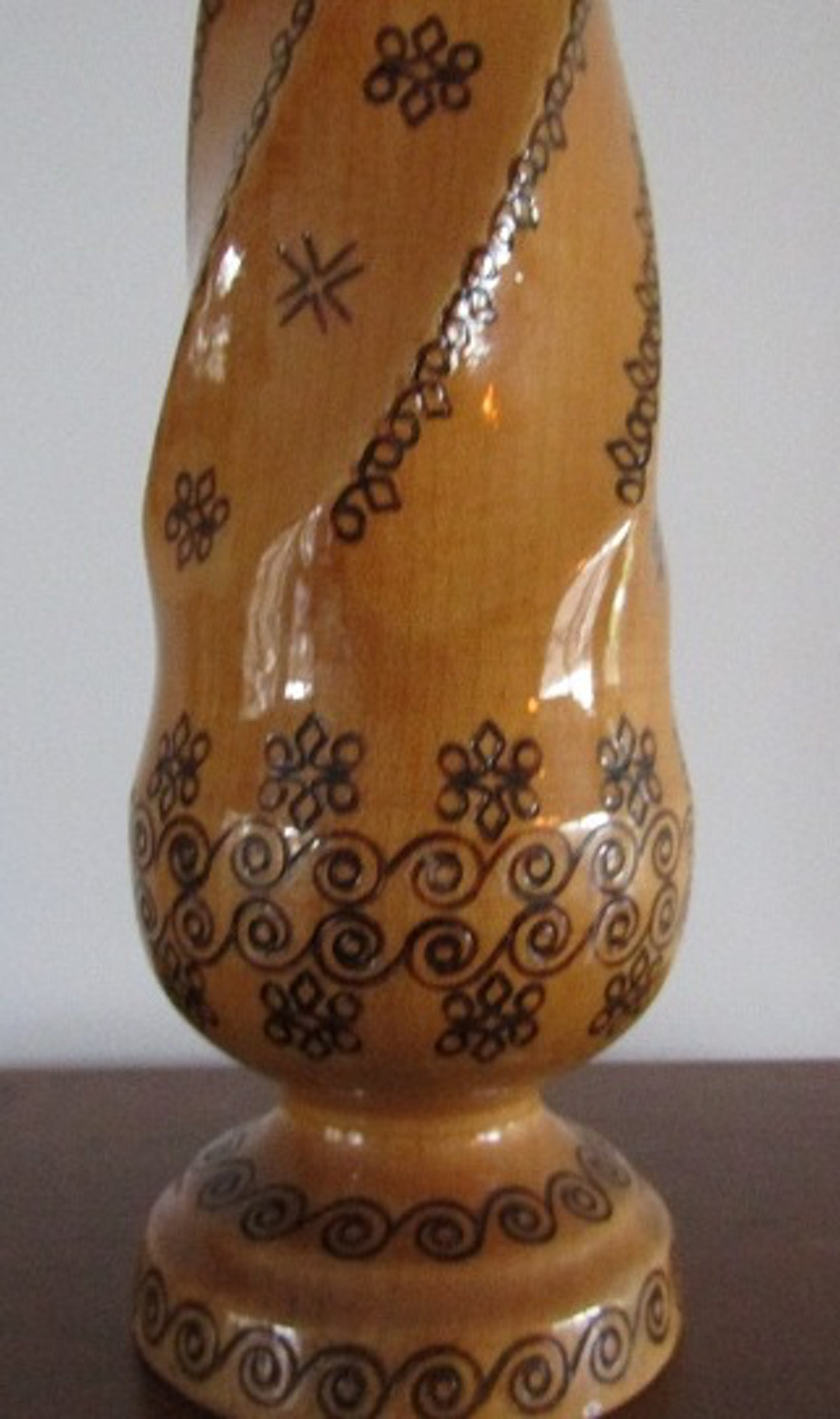 Onbekend - Houten spiraalvormige vaas met gegraveerde deco. elementen - Verkocht
