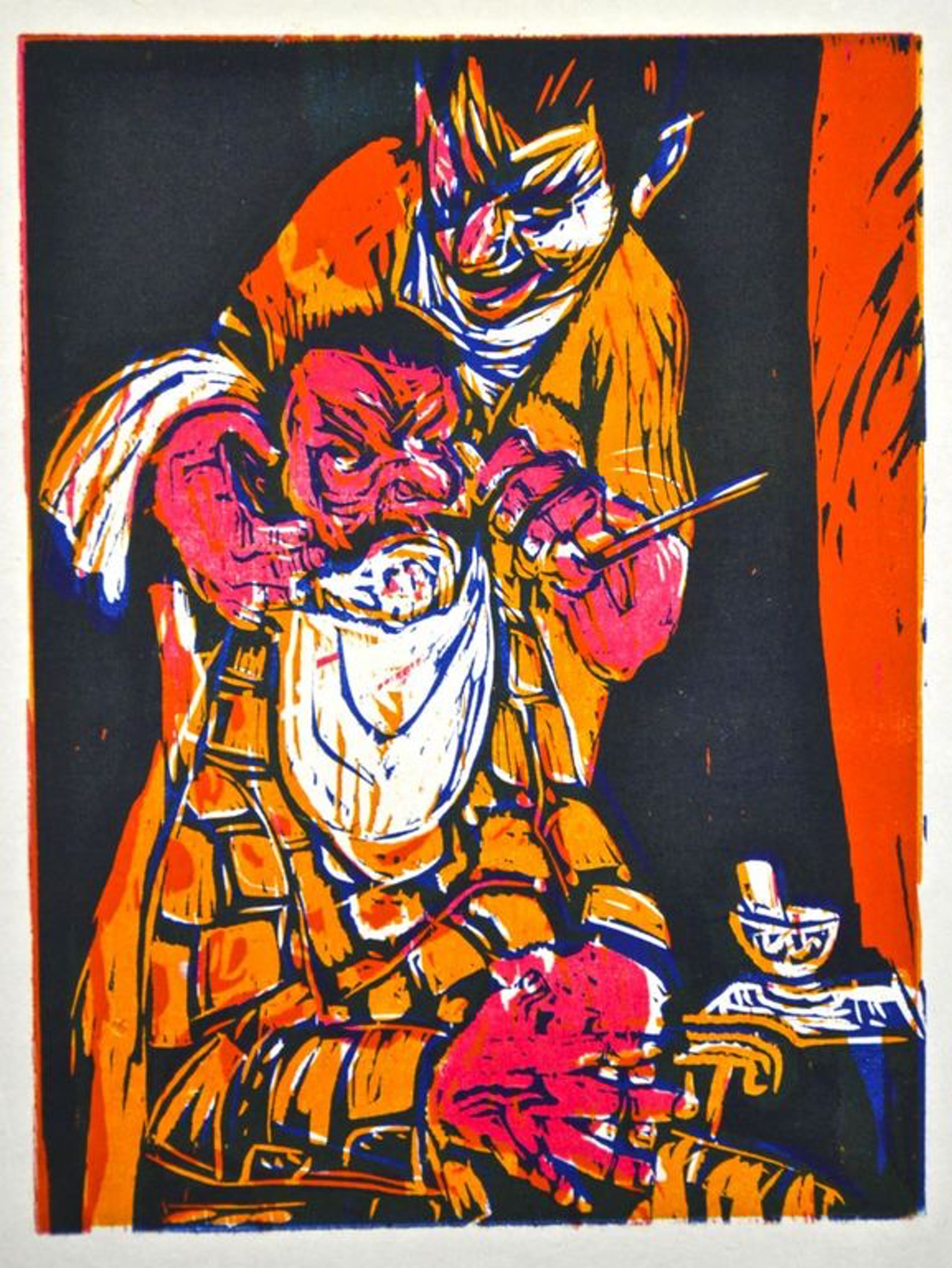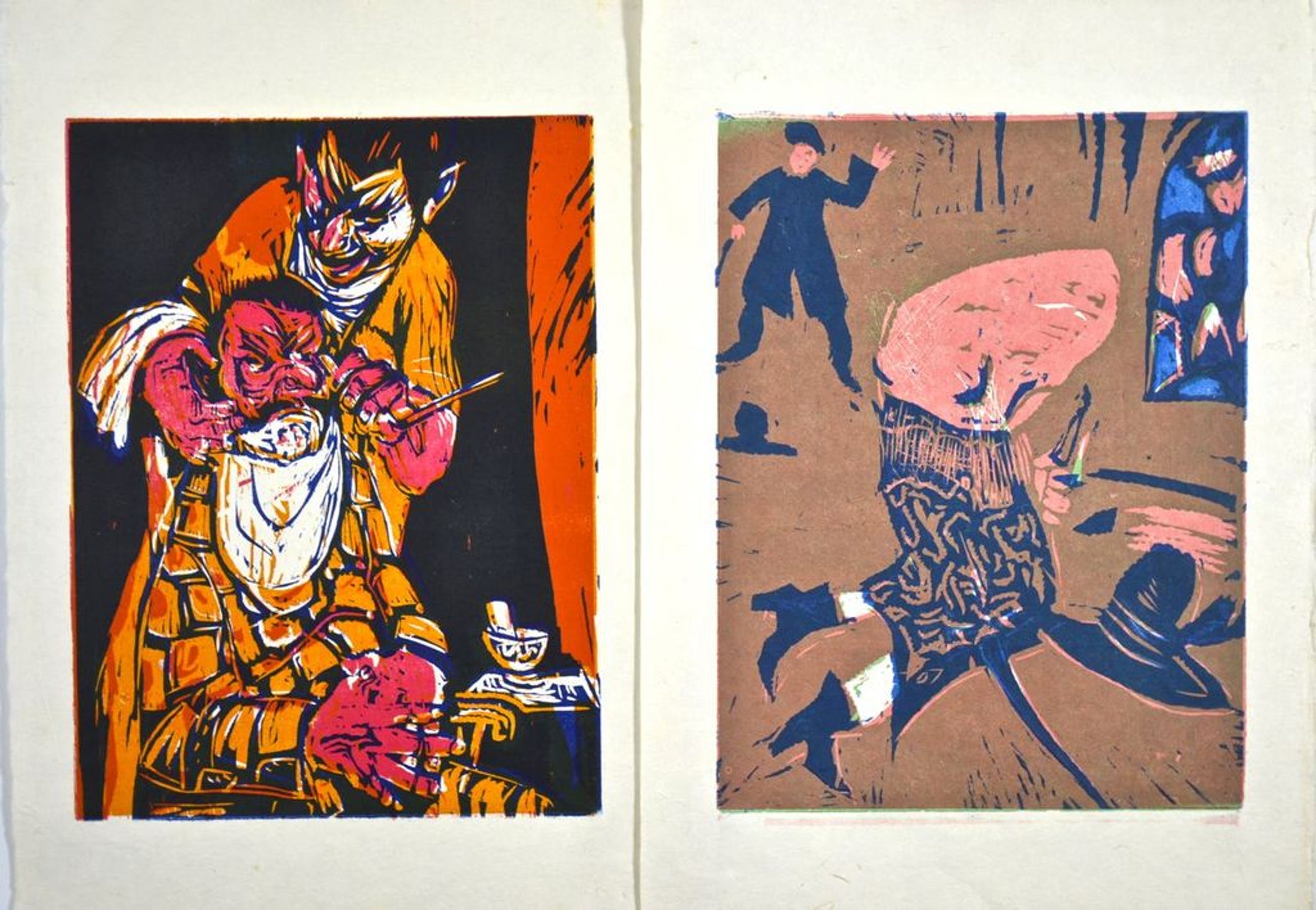 Twee zeer mooie kleurrijke houtsneden. De kunstenaar is bij ons helaas niet bekend.