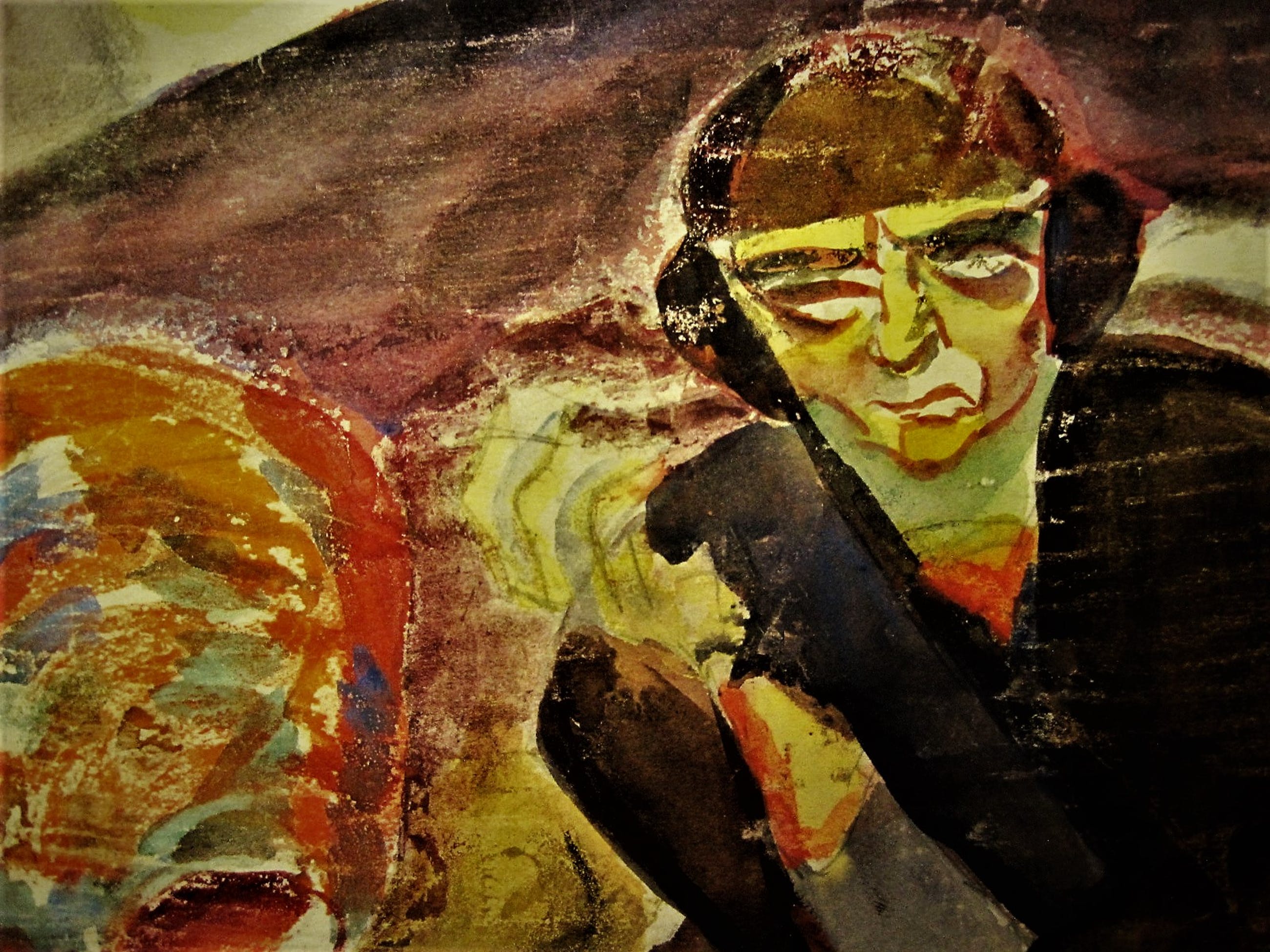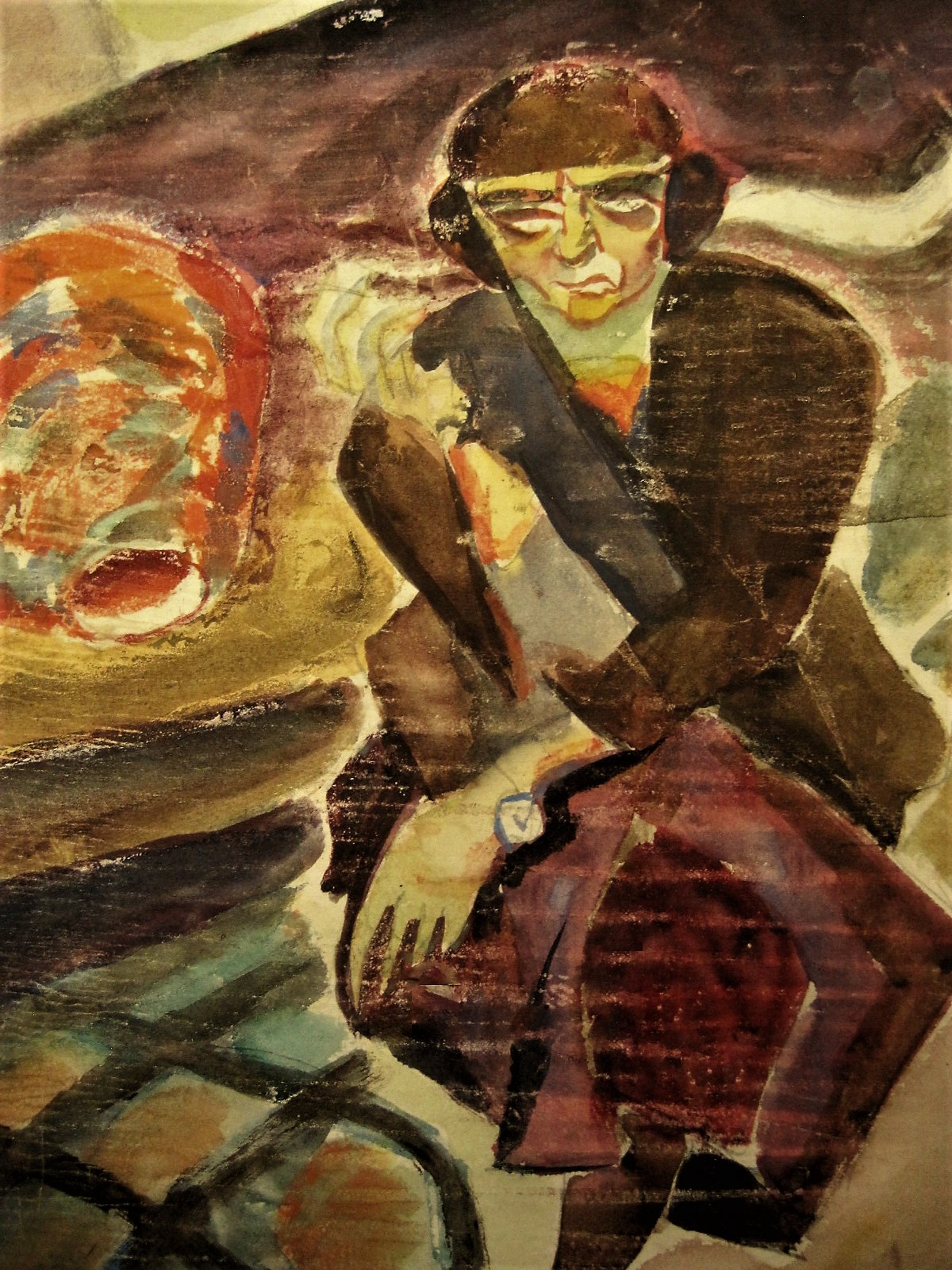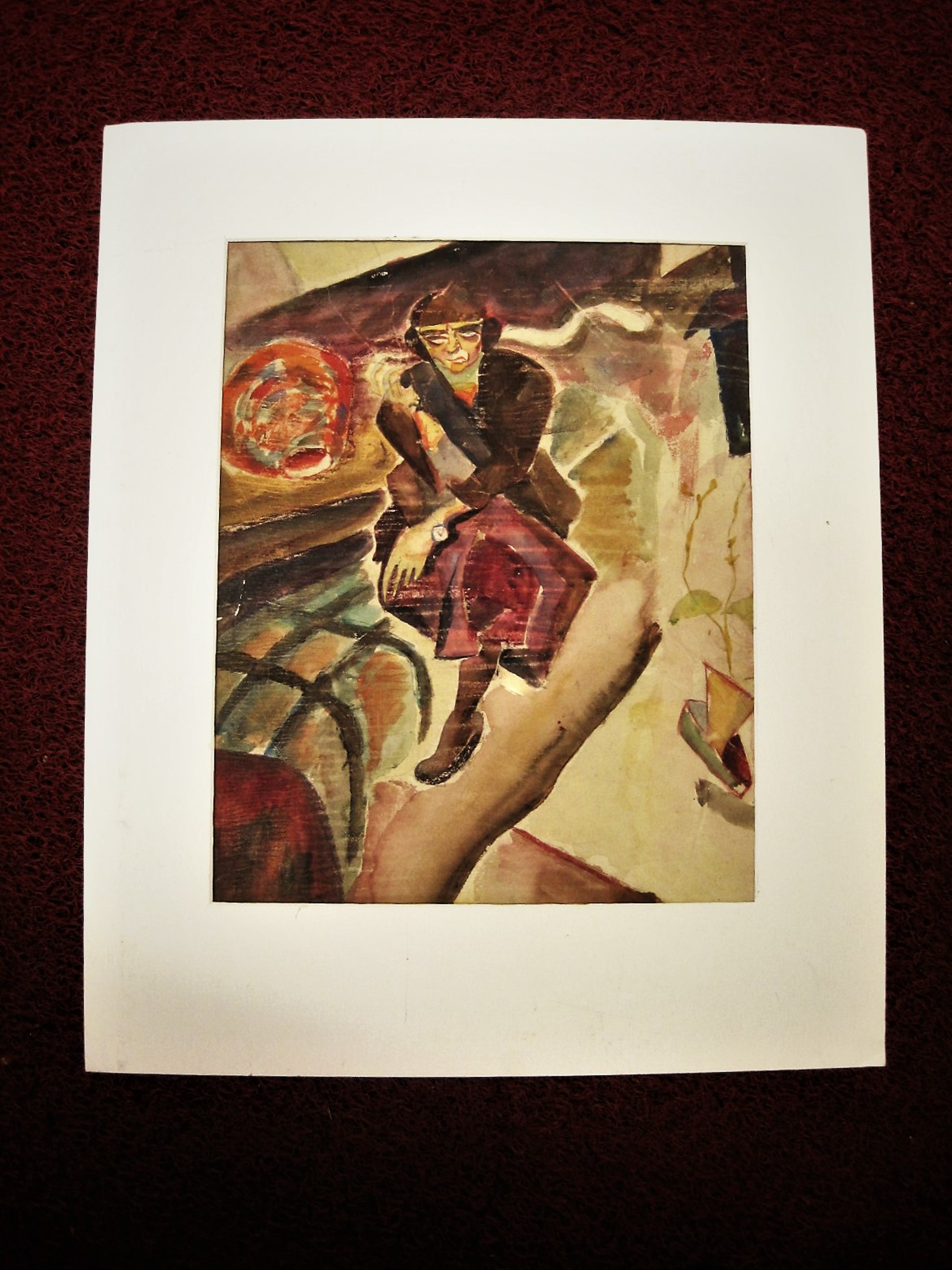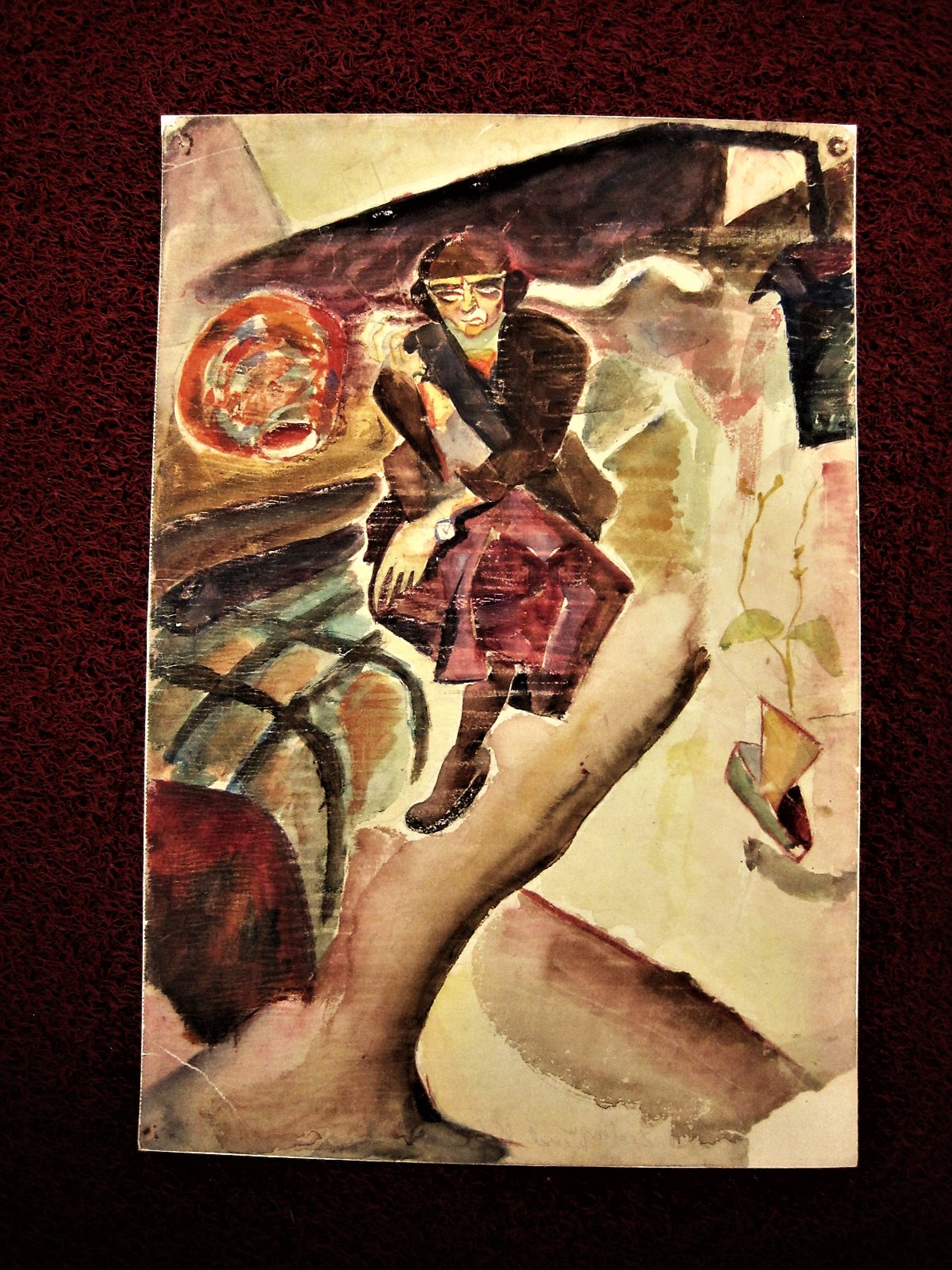 Bijzondere vondst! Een groot, omstreeks 1930 geschilderd Aquarel op papier "de schilder A.C. (Carel) Willink". Sterk kubistische voorstelling met mooie karakteristieke jaren 30 kleuren. Op de achterzijde met potlood gesigneerd en getiteld.