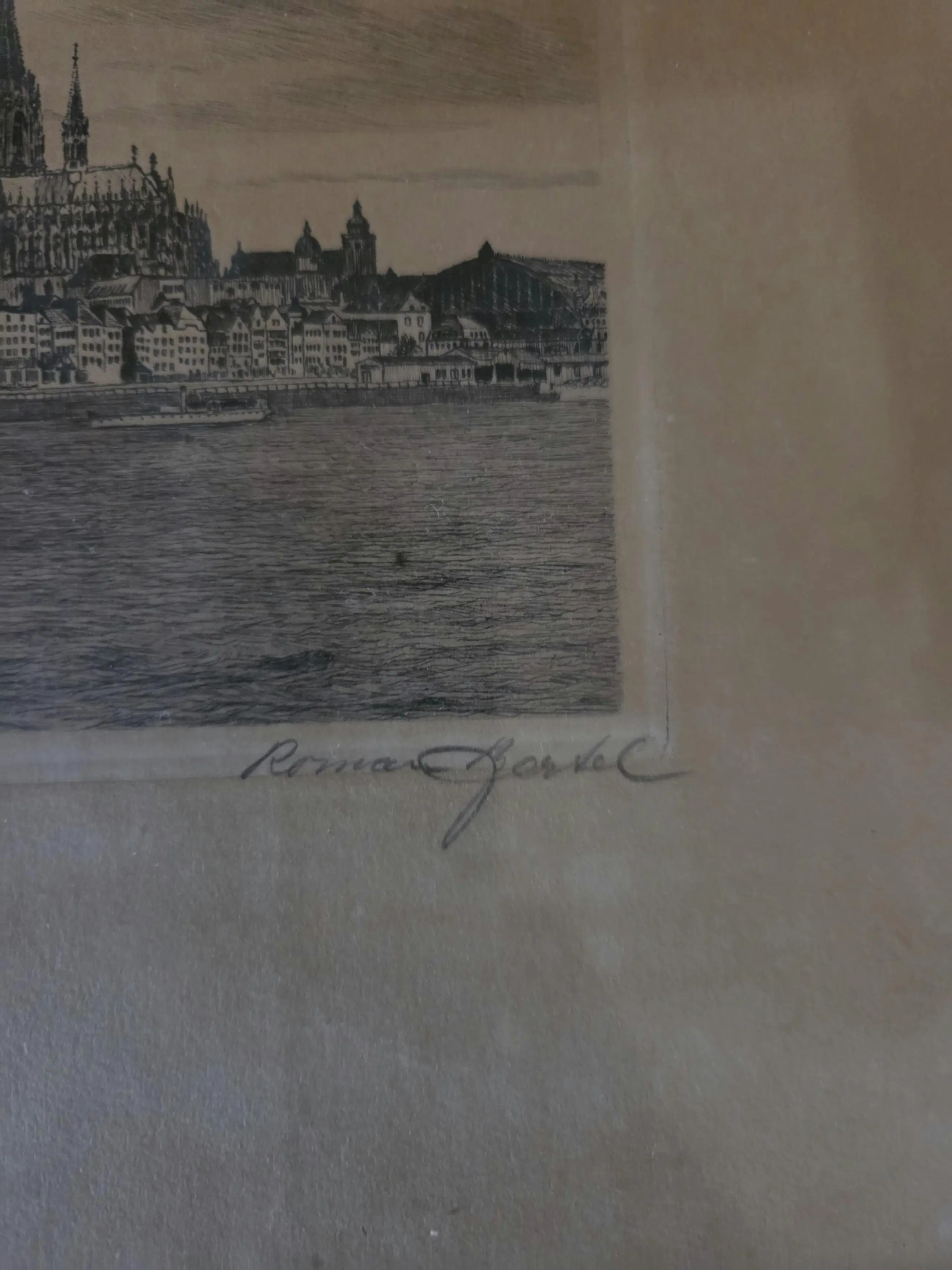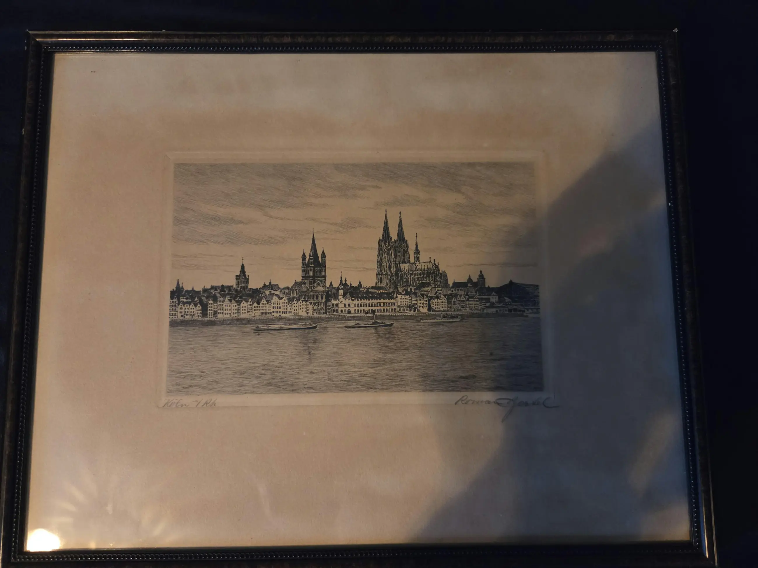 Prachtige antieke ets van Keulen, een sfeervolle en gedetailleerde weergave van de historische skyline aan de Rijn. De herkenbare torens van de Dom van Keulen geven dit werk een tijdloze uitstraling. De ets is fraai ingelijst en straalt karakter en authenticiteit uit – een echte blikvanger voor liefhebbers van geschiedenis, architectuur of klassieke kunst. Perfect voor aan de muur in een klassiek interieur, kantoor of als bijzonder cadeau voor een verzamelaar.