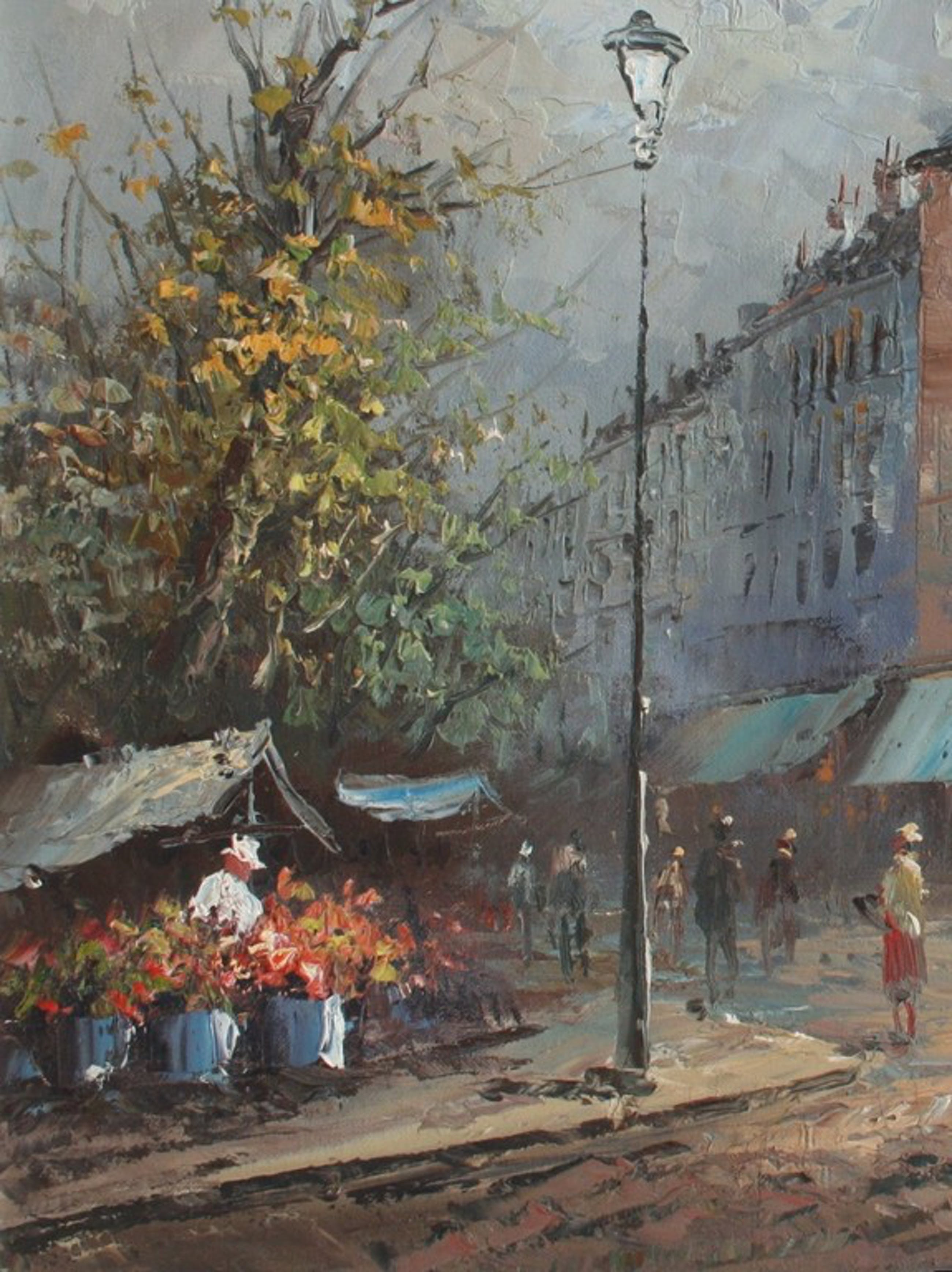 Realistisch en vaardig schilderij gemaakt met een paletmes. Stijl jaren 60 / 70.