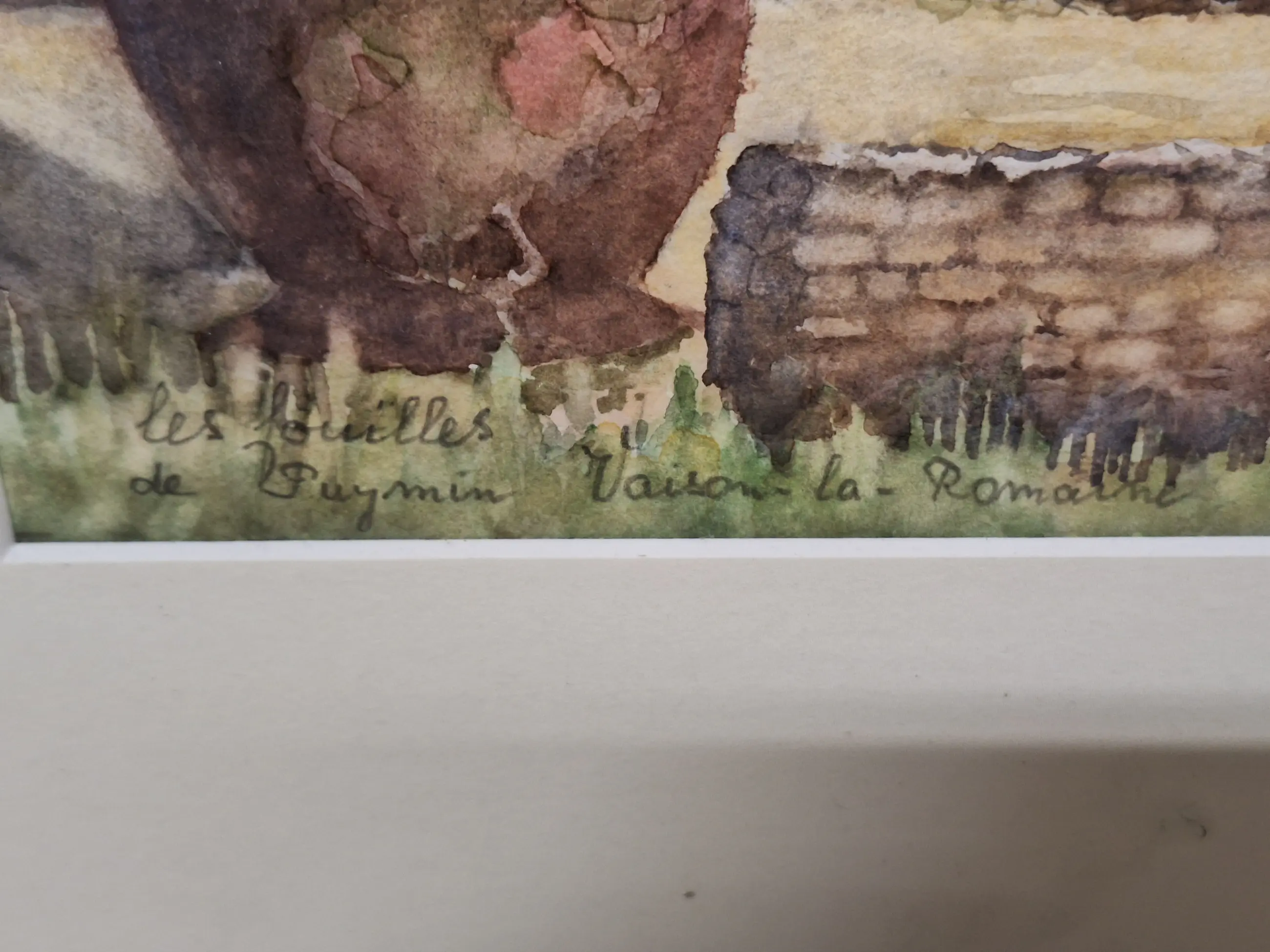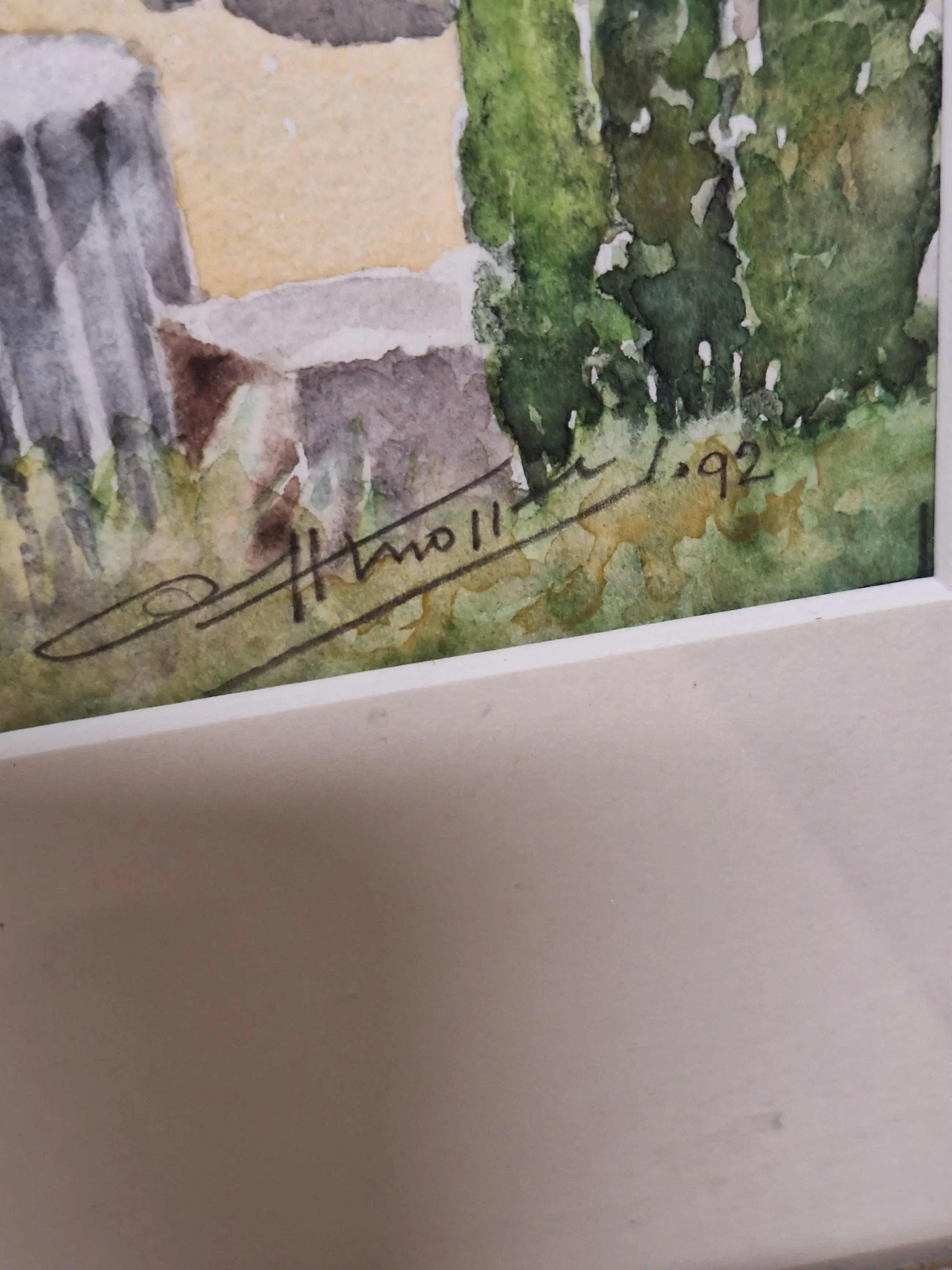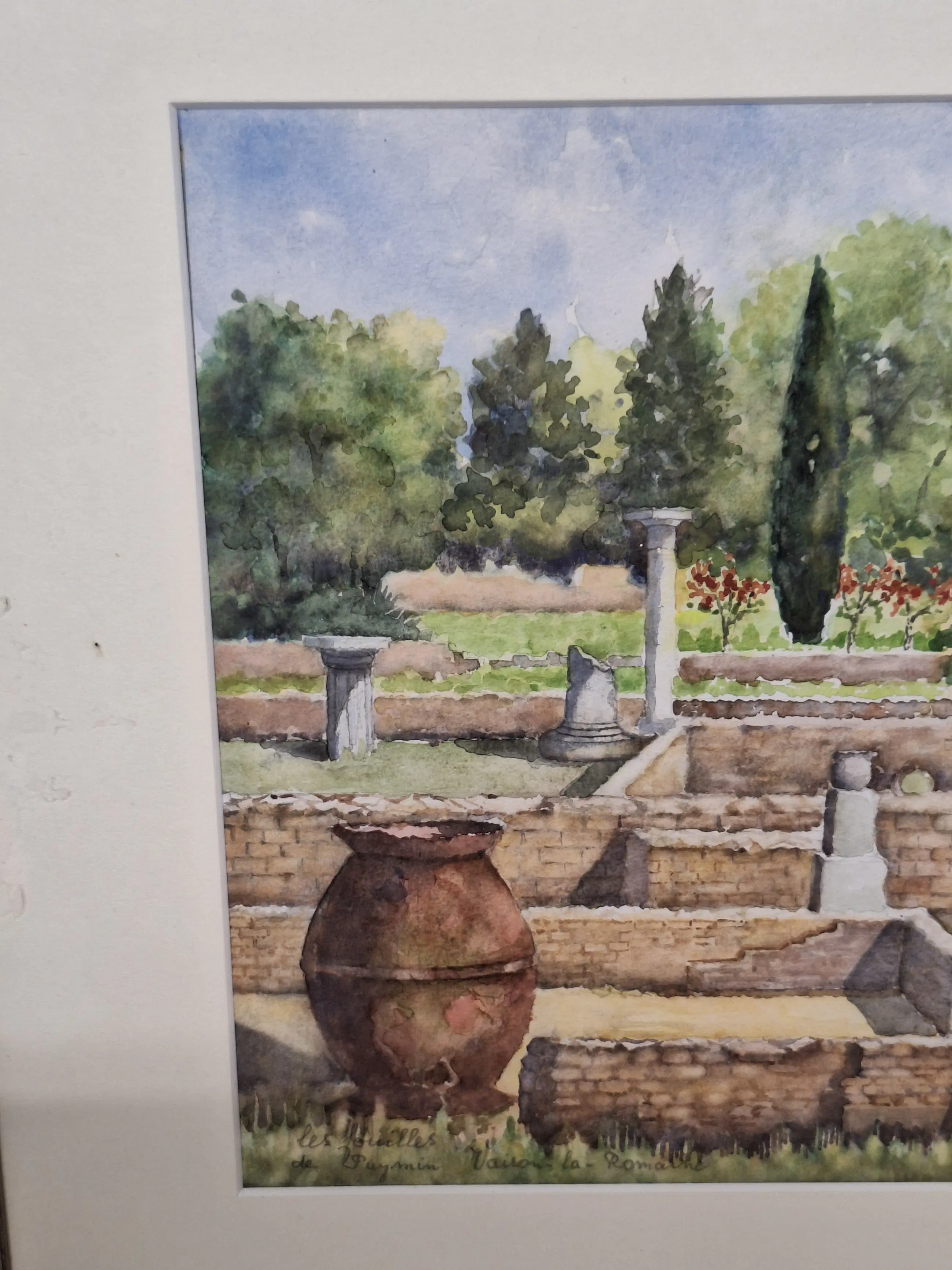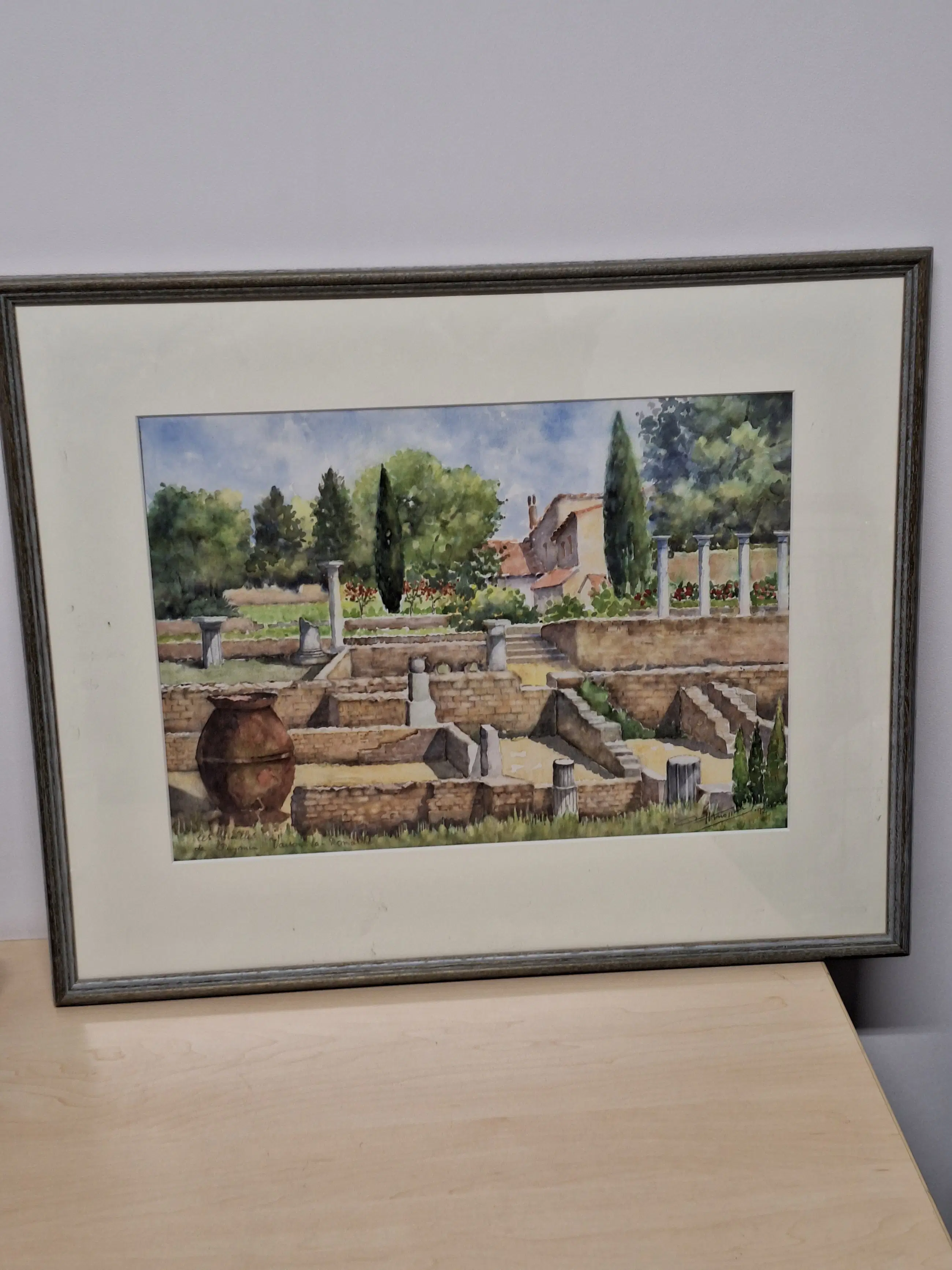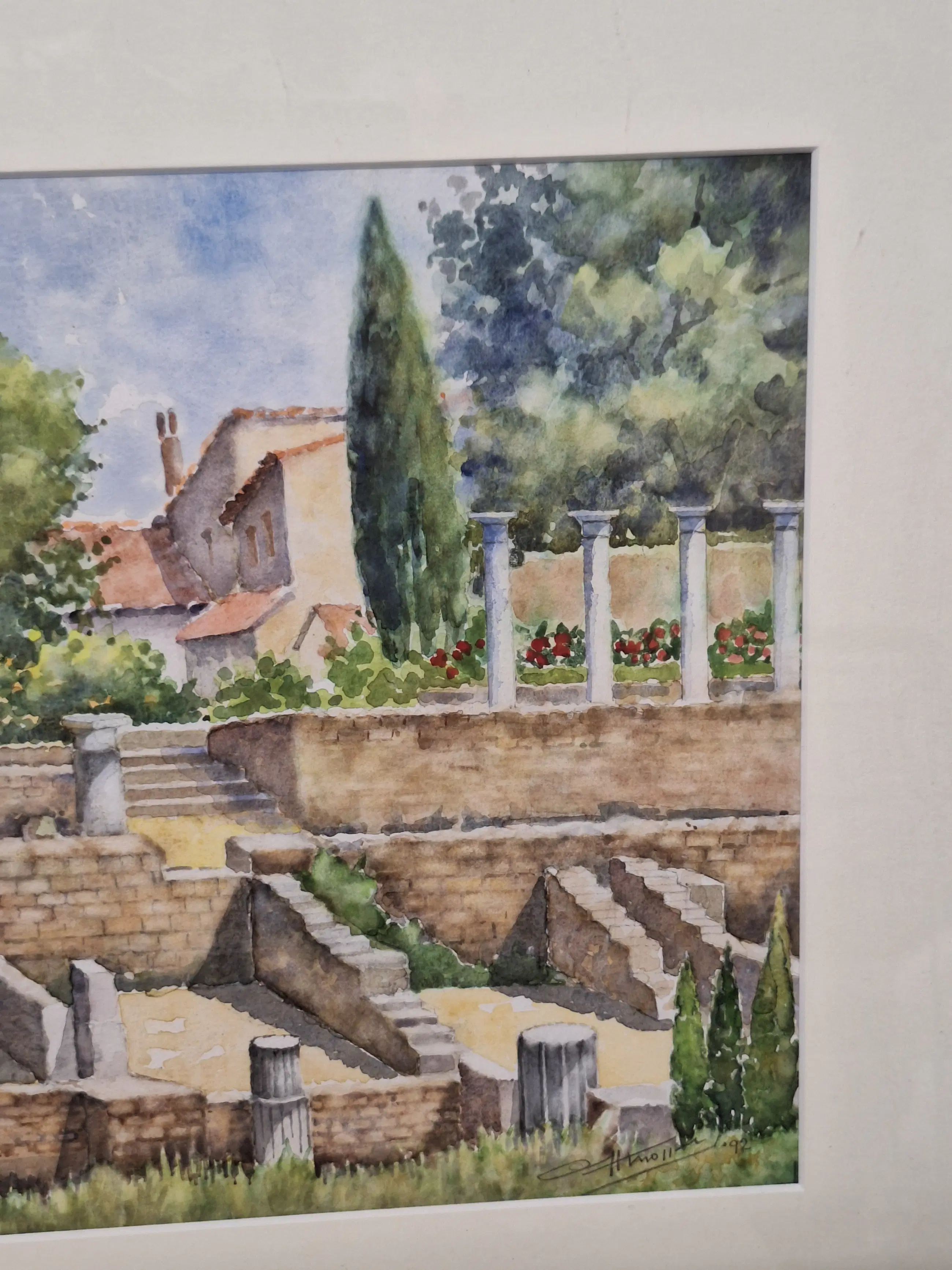 Mooie aquarwl van onbekende kunstenaar. Onderwerp is de romeinse tuin.