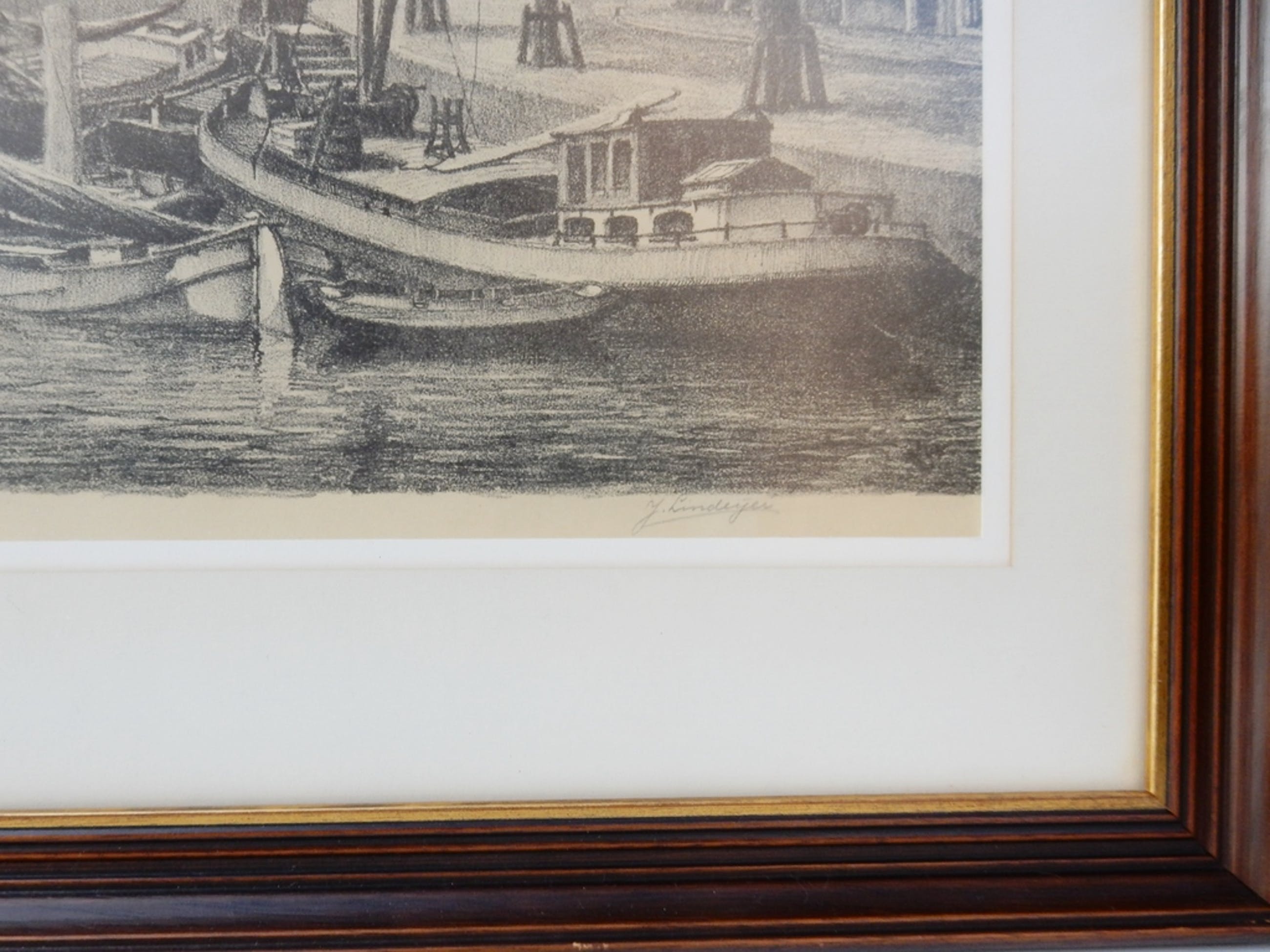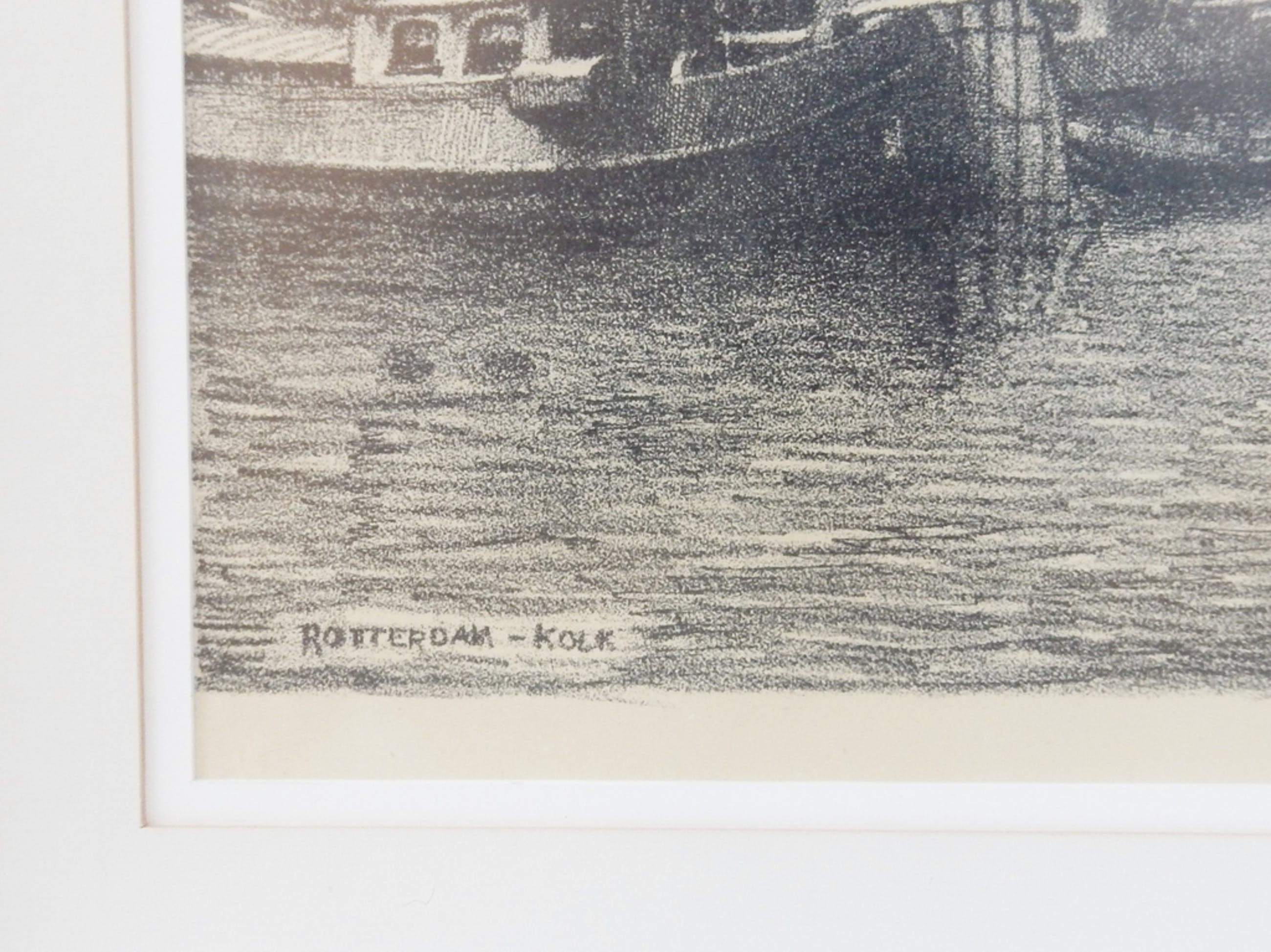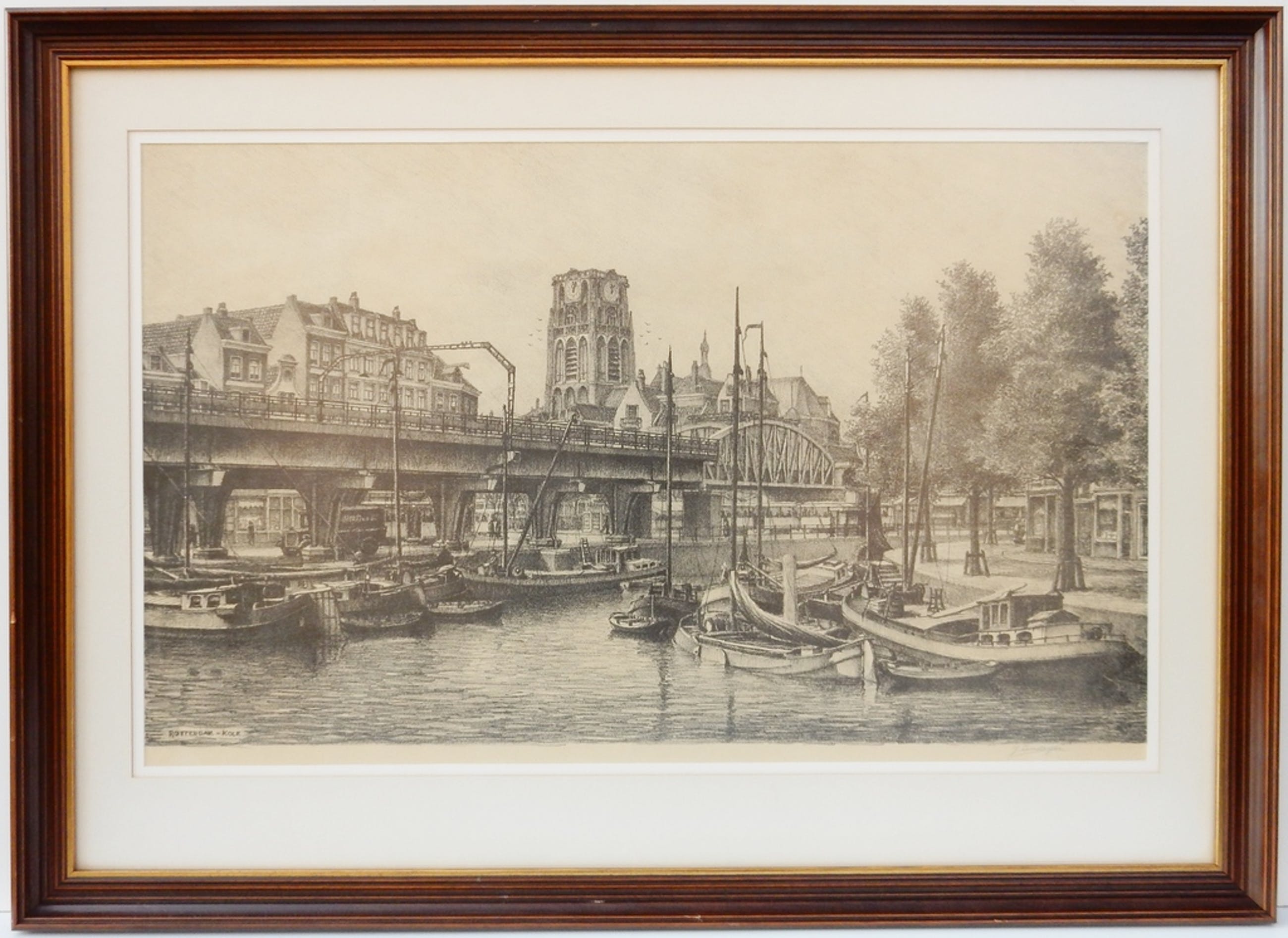 Prachtige en grote lithografie met voorstelling van de Kolk te Rotterdam.