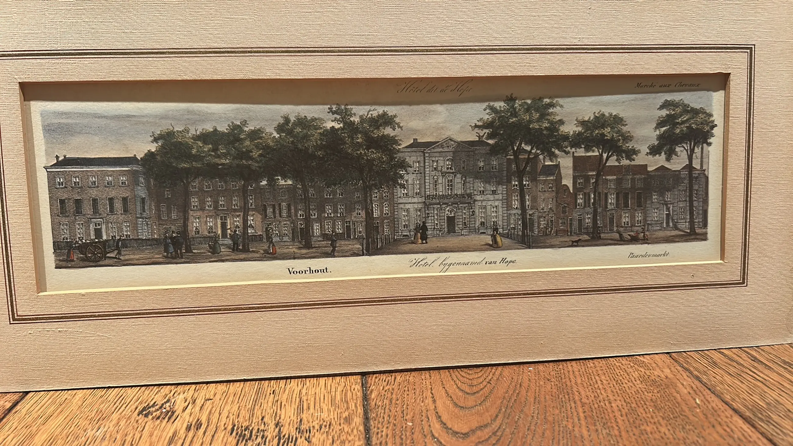 Lithografie van de paardenmarkt in Voorhout Den Haag
