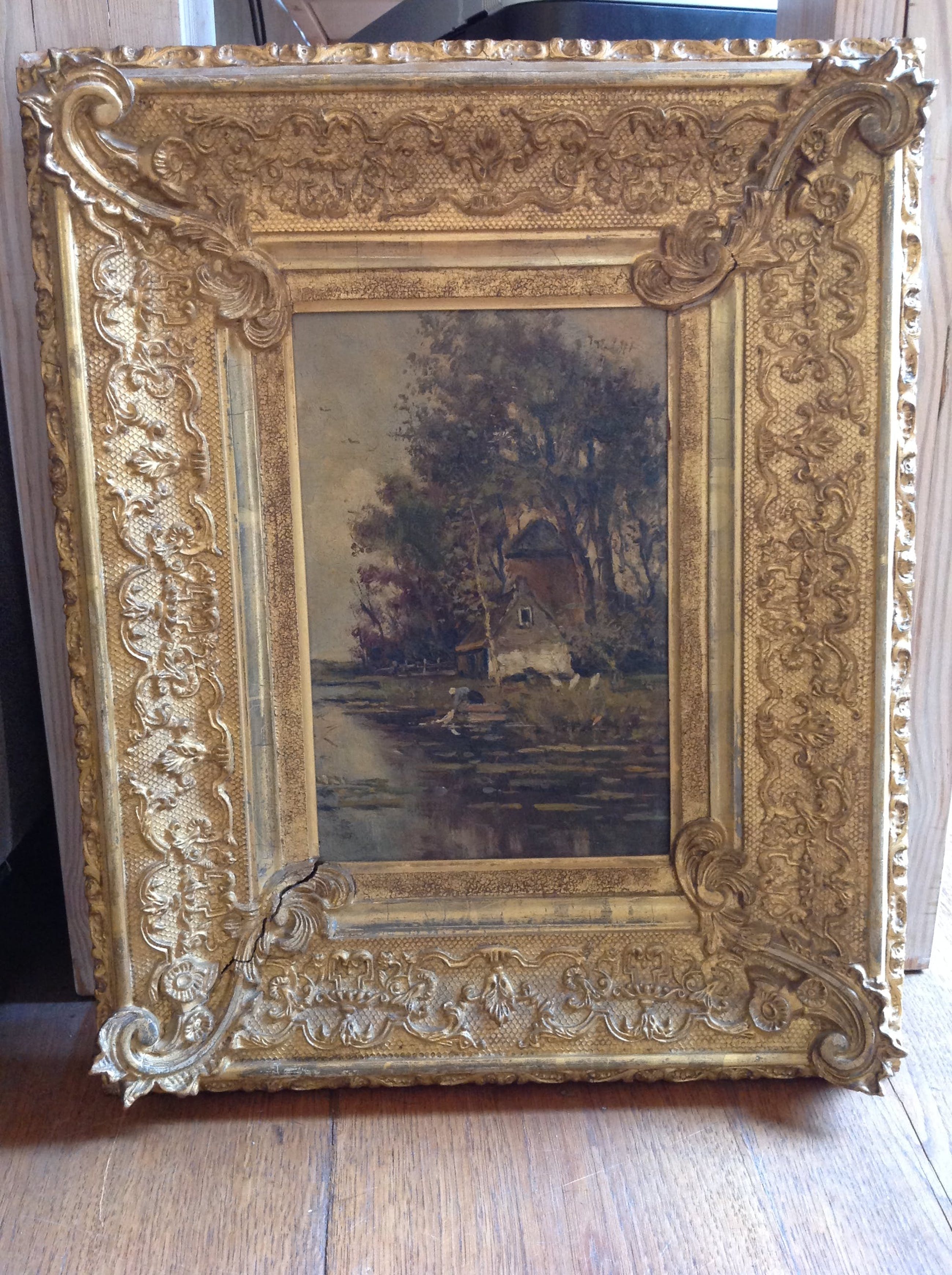 C1248-4 Kunstenaar: onbekend Techniek: olie op paneel Voorstelling: Loenen aan de Vecht Ongesigneerd