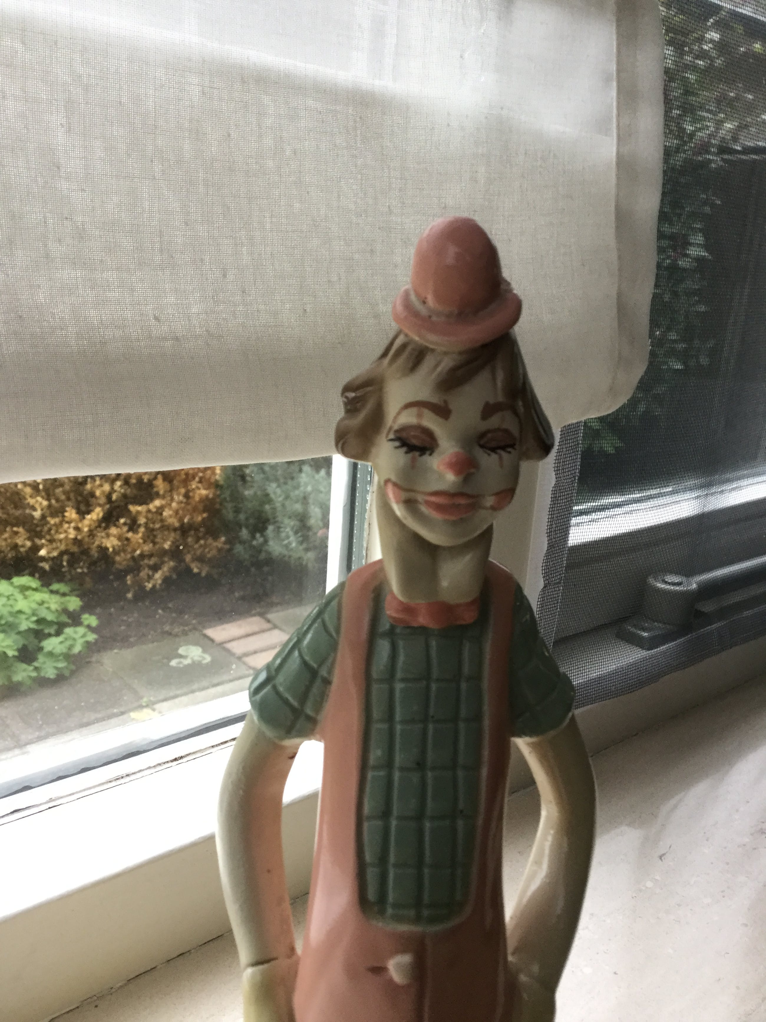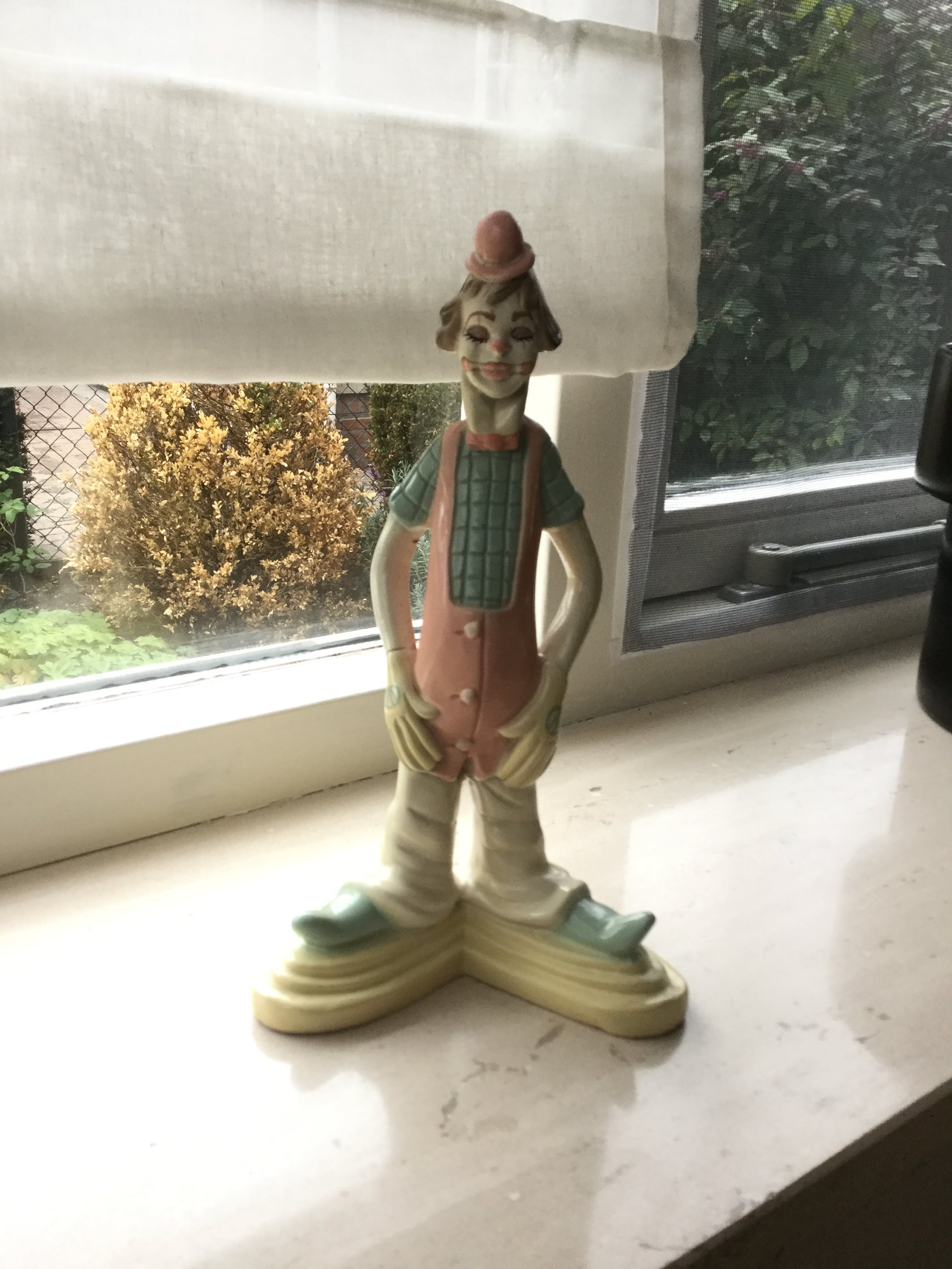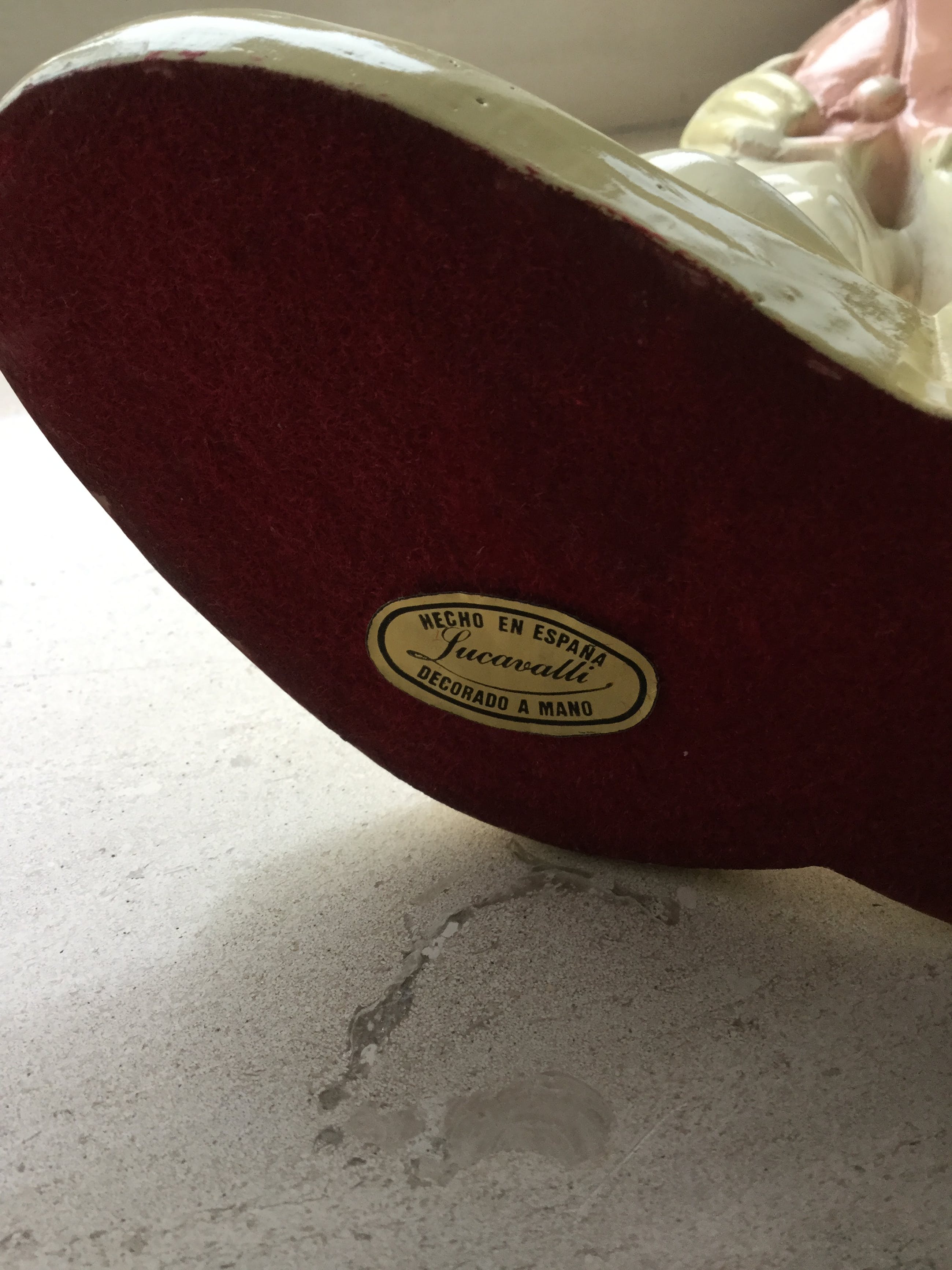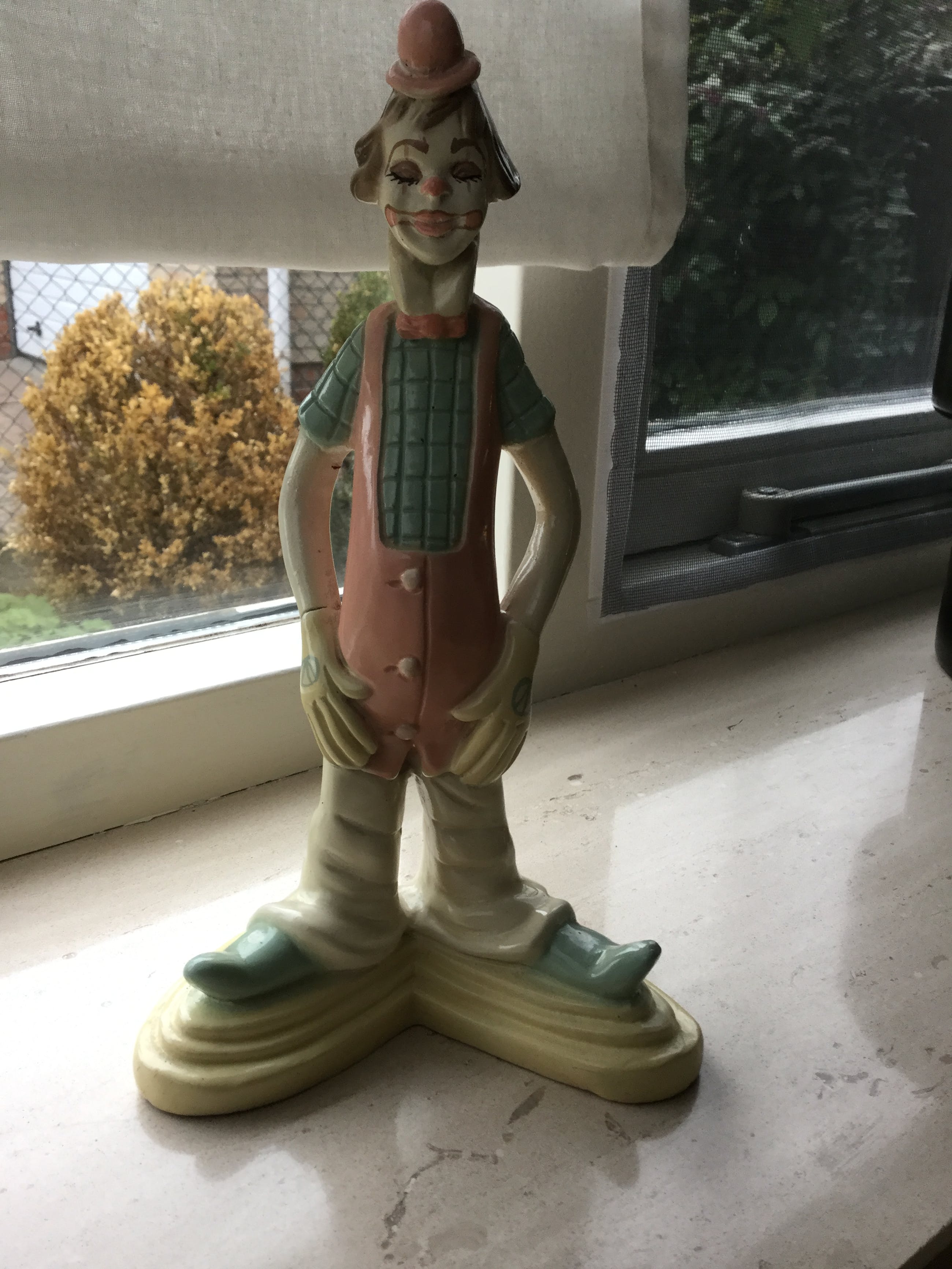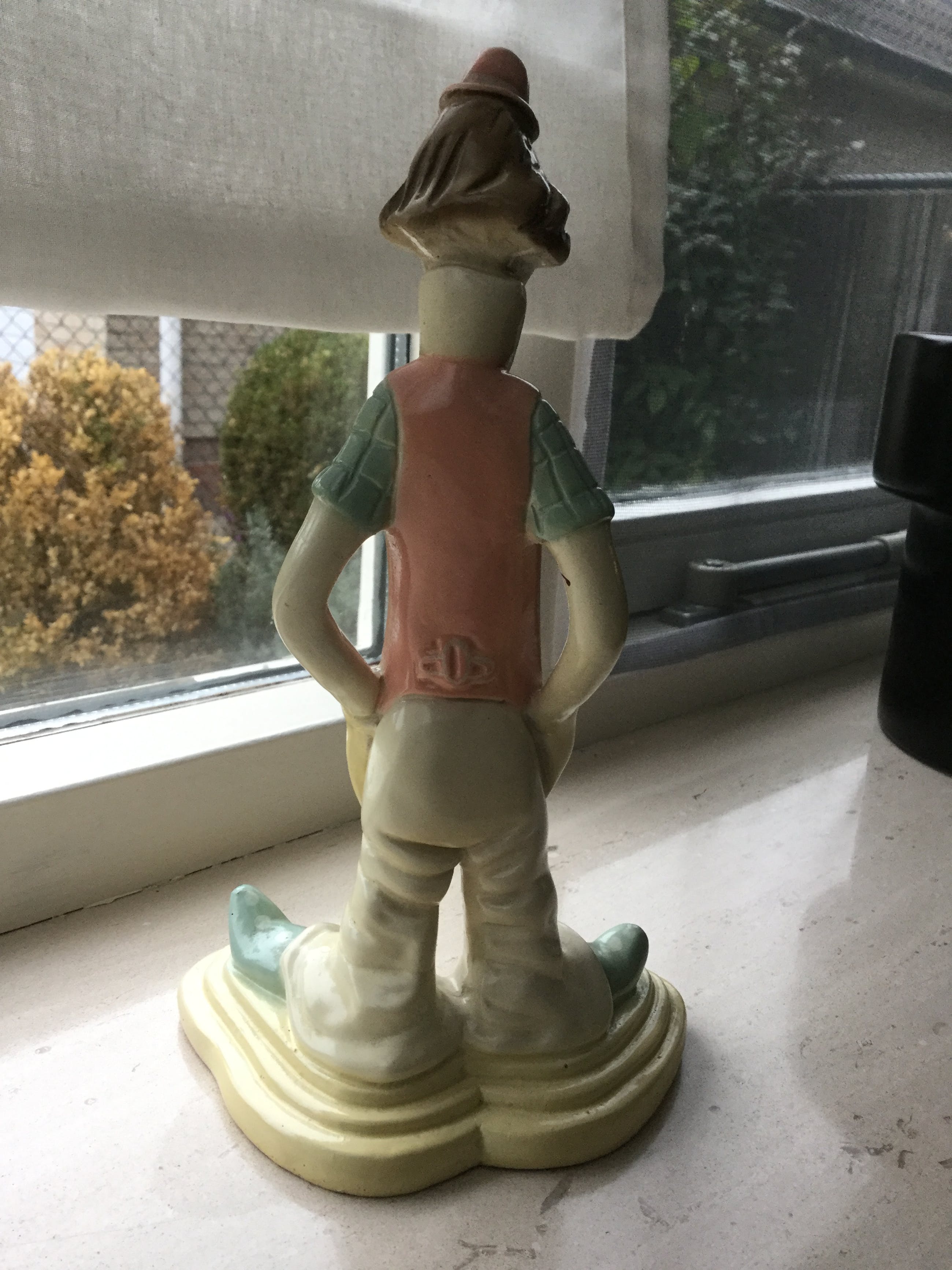 Het is een mooi beeldje waarschijnlijk jaren 50/60, de periode van “ban de bom”.Het heeft namelijk 2 vredestekens op beide handen. Eerder meegebracht uit Spanje.