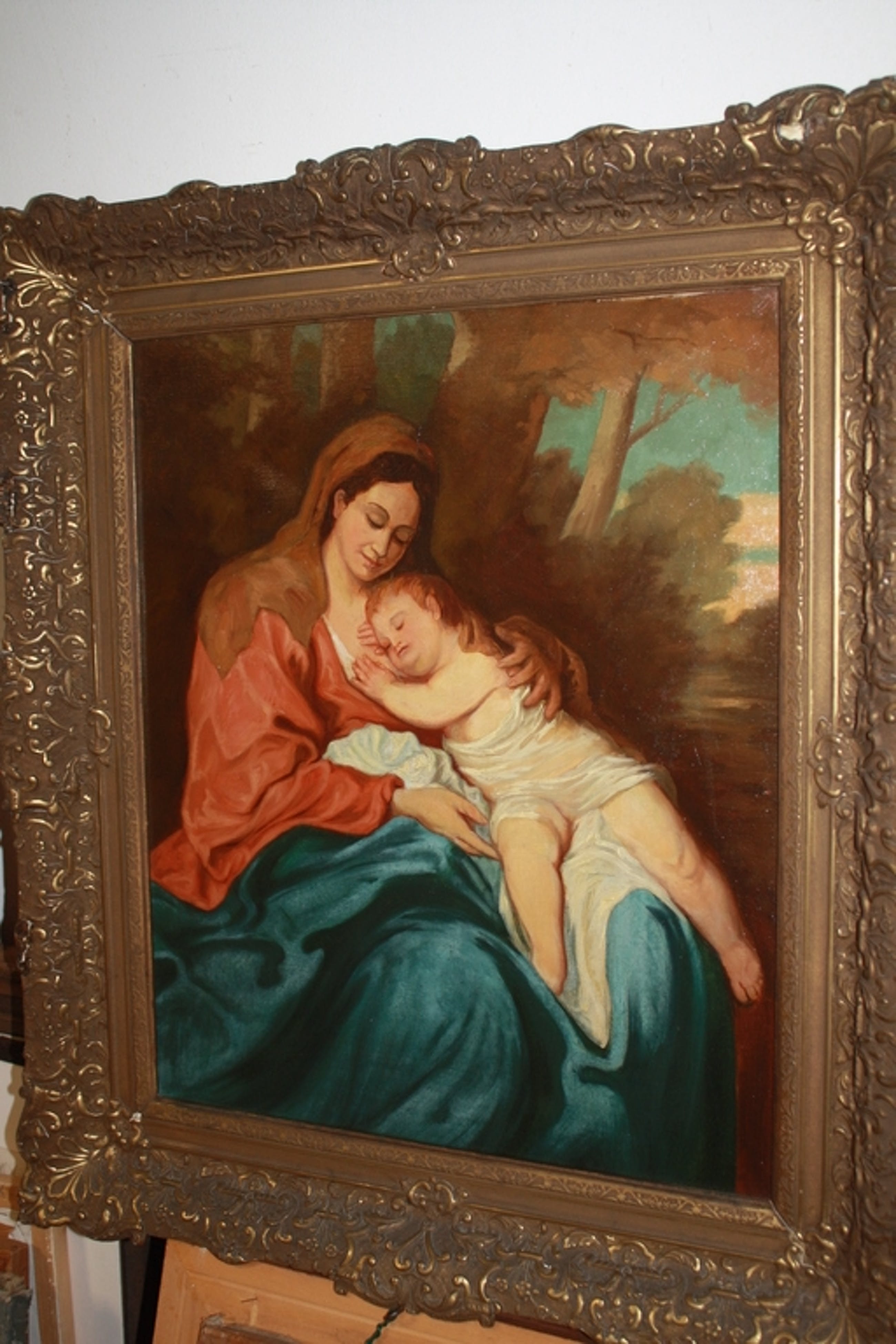 Gekaderd in zware baroque lijst in de maat 68 x 78 cm