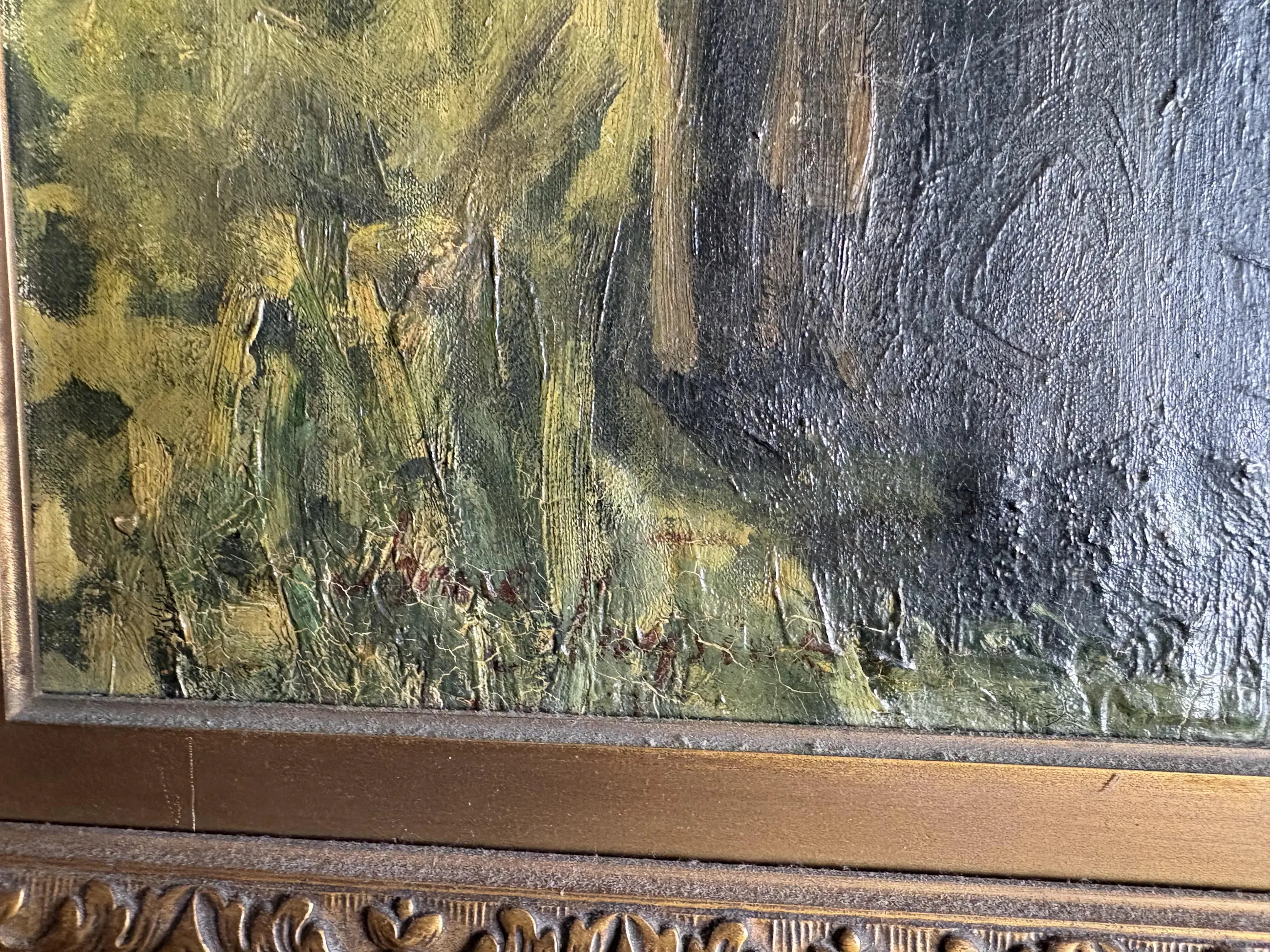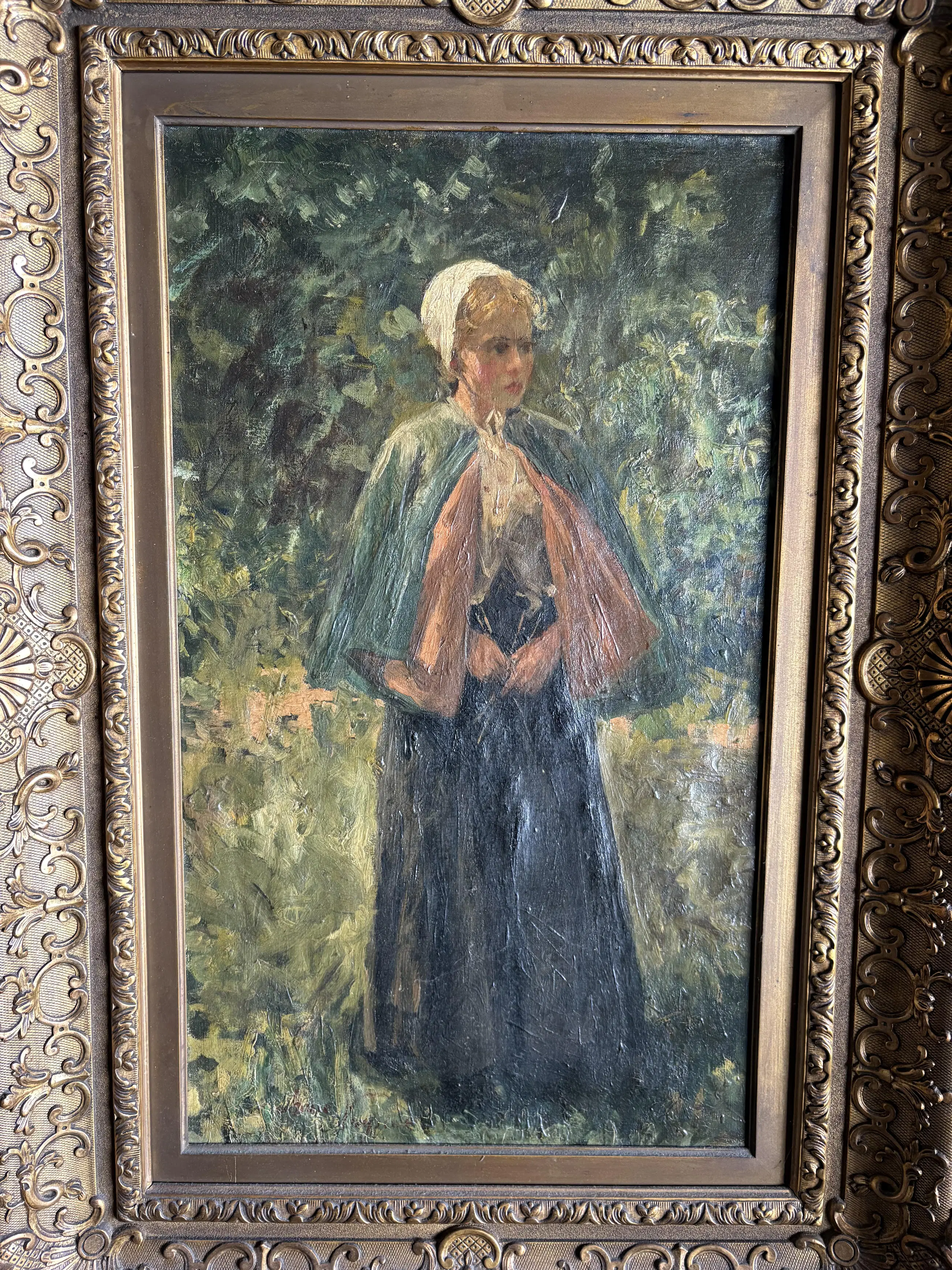 Helaas is mij niet bekend wie de kunstenaar is. Maar het is een mooi schilderij . Deb lijst is beschadigd op een paar punten