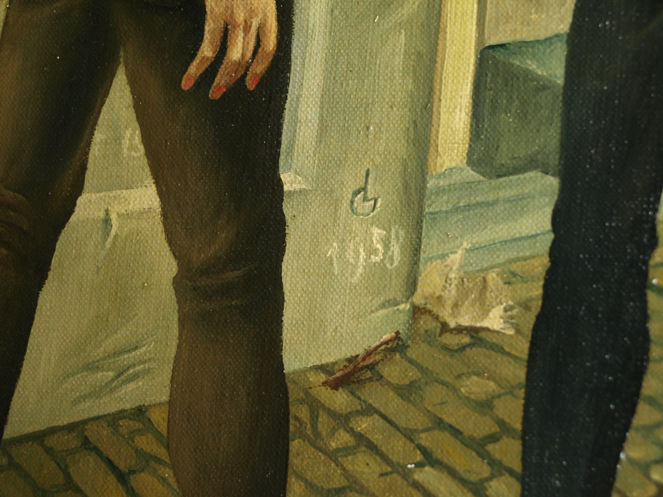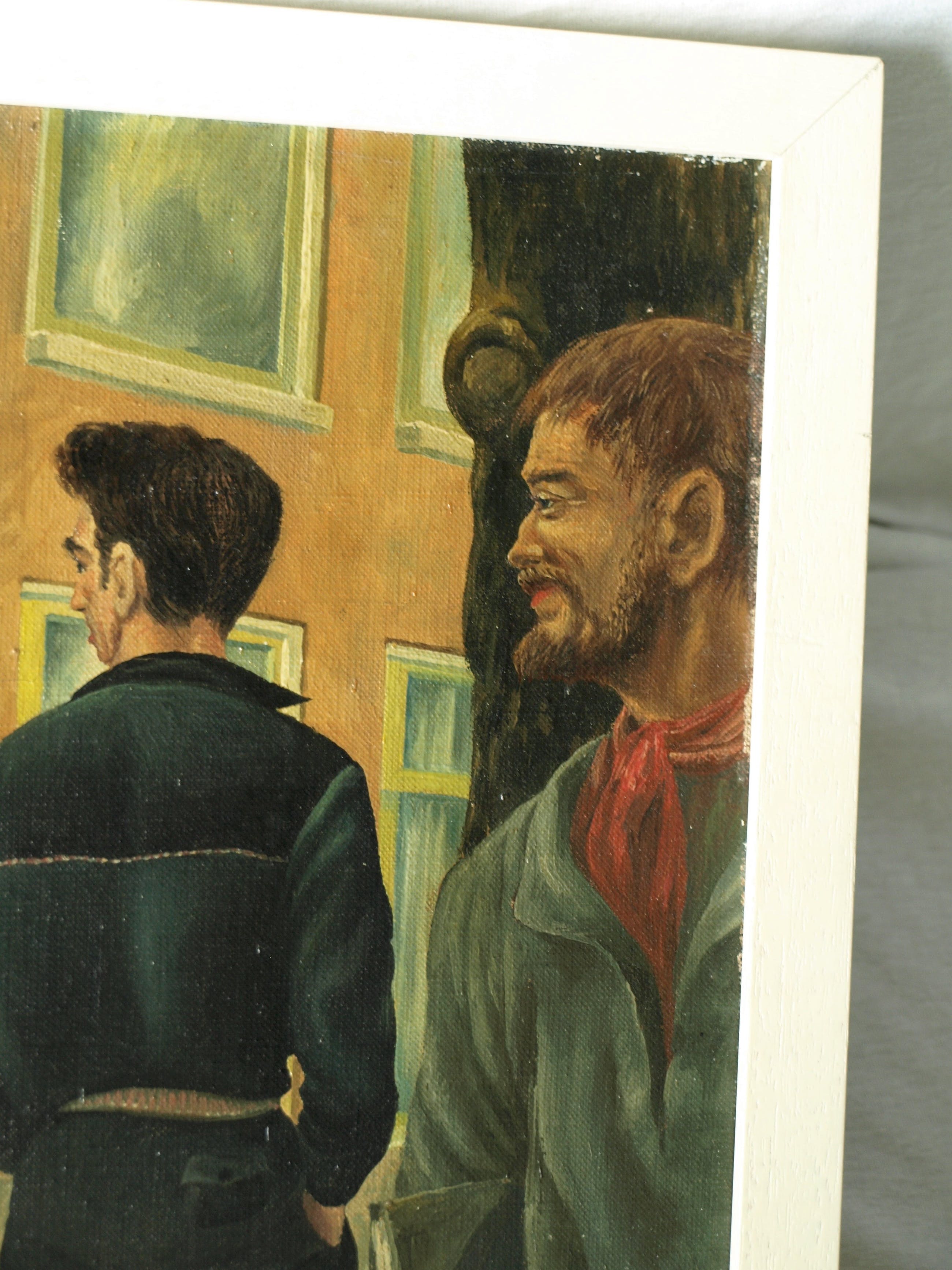 | In goede staat met een klein slijtplekje met verfverlies (tussen de rechtervoet van de vrouw en de linkervoet van de man, zie de 7e foto). Zie ook alle foto’s voor een eigen indruk. Kan zo aan de muur. | |||||||||||