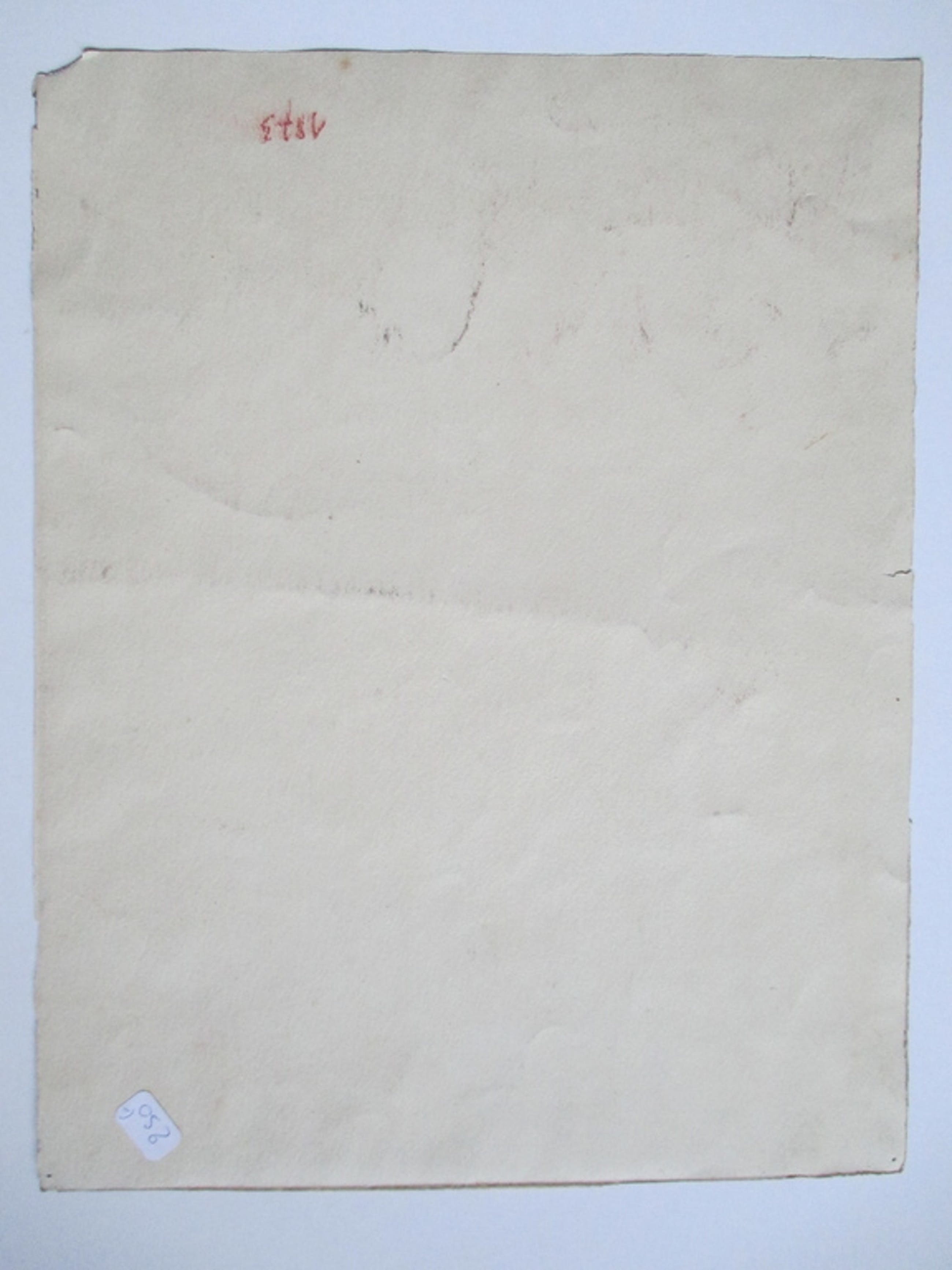 Aquarel, ongesigneerd, afm. blad 24,5x31,3 cm. verso staat "1873". In goede staat, het linkeronderhoekje ontbreekt.