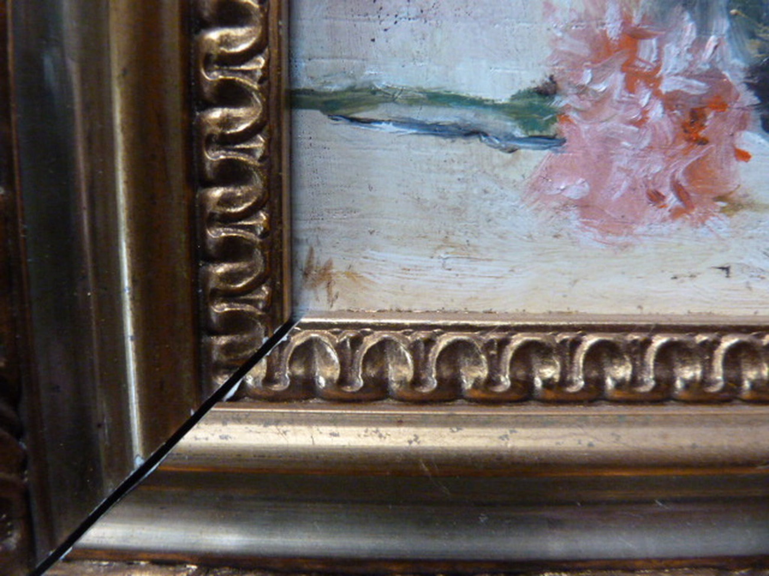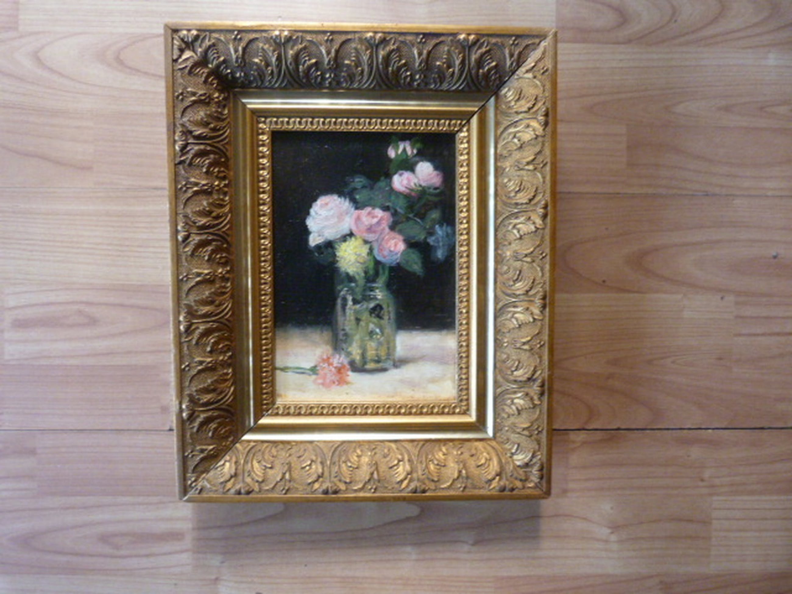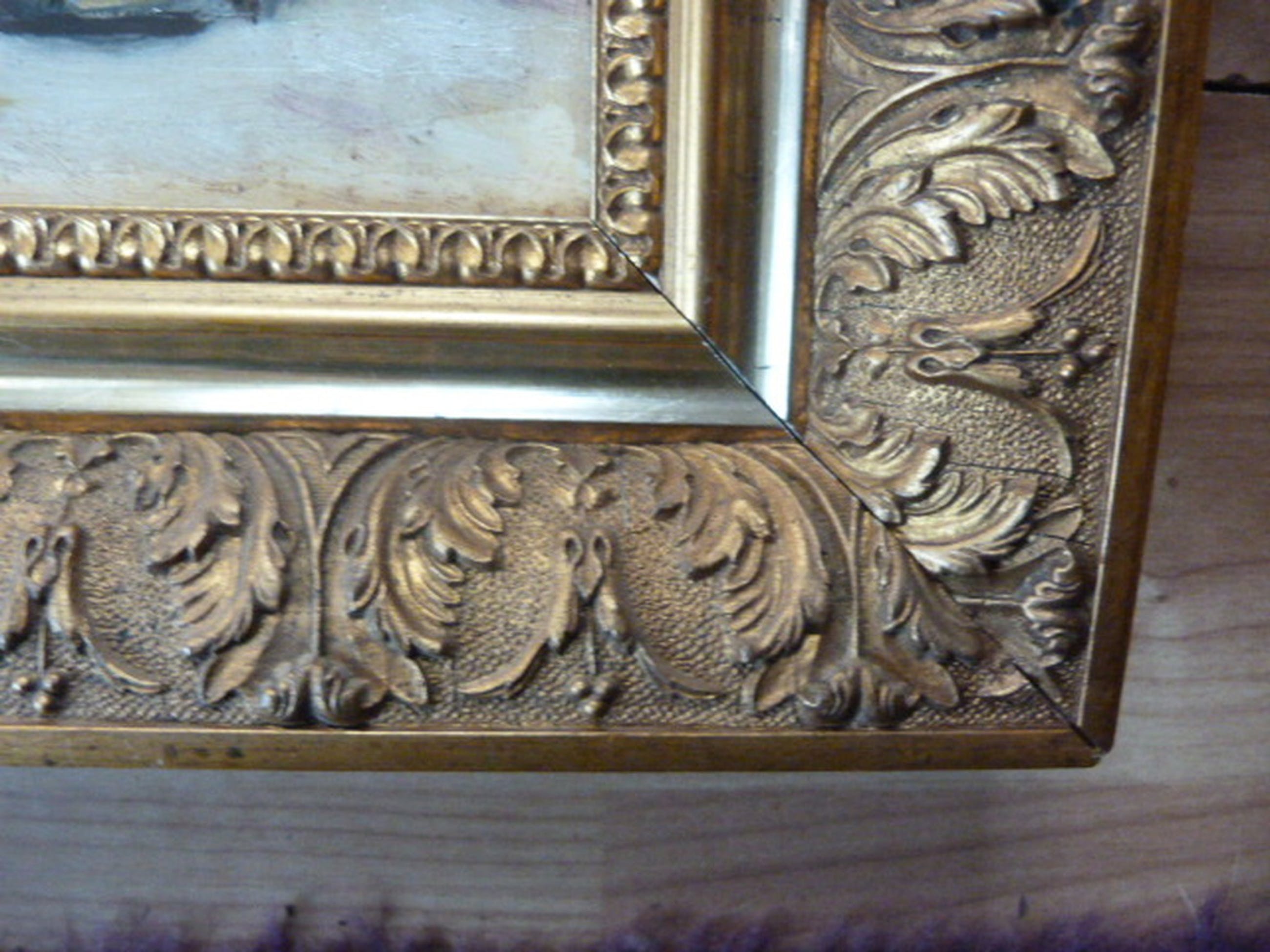 Met antieke bladgouden lijst : 34 x 28 cm.