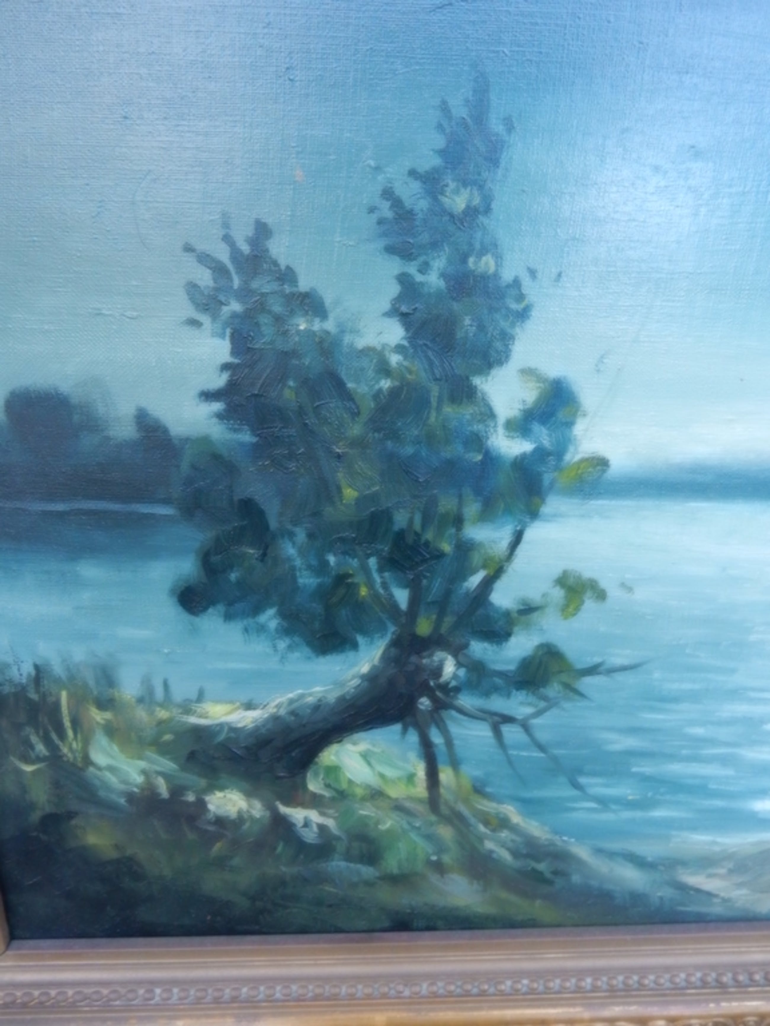 prachtig geschilderd, zeer aparte kleuren blauw,