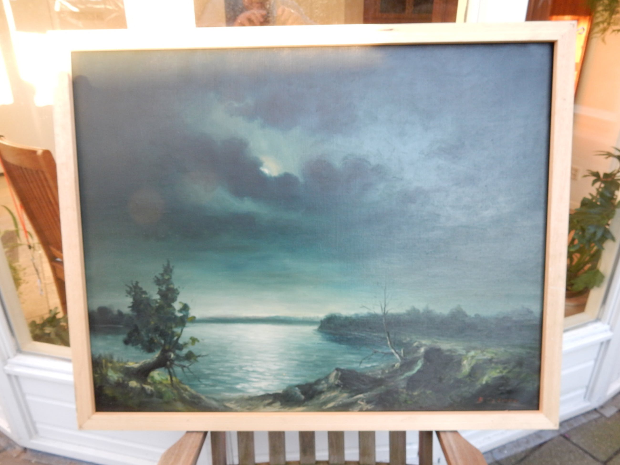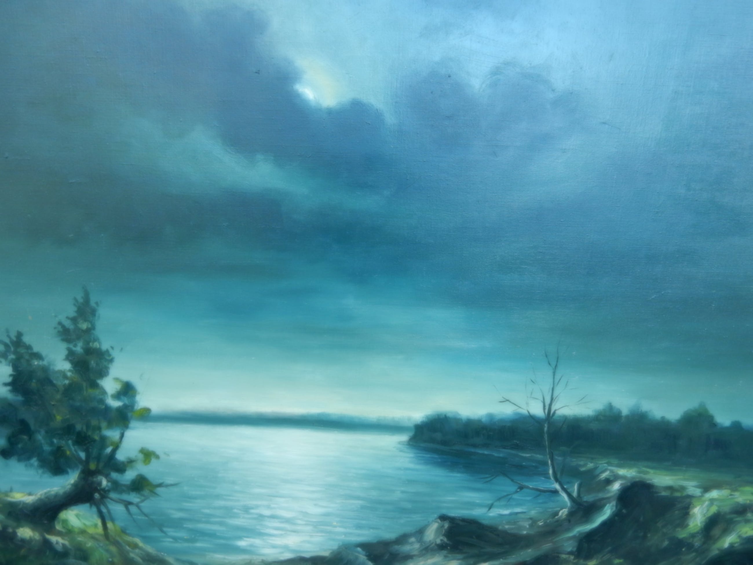 "Nacht over het meer" olieverf op linnen.