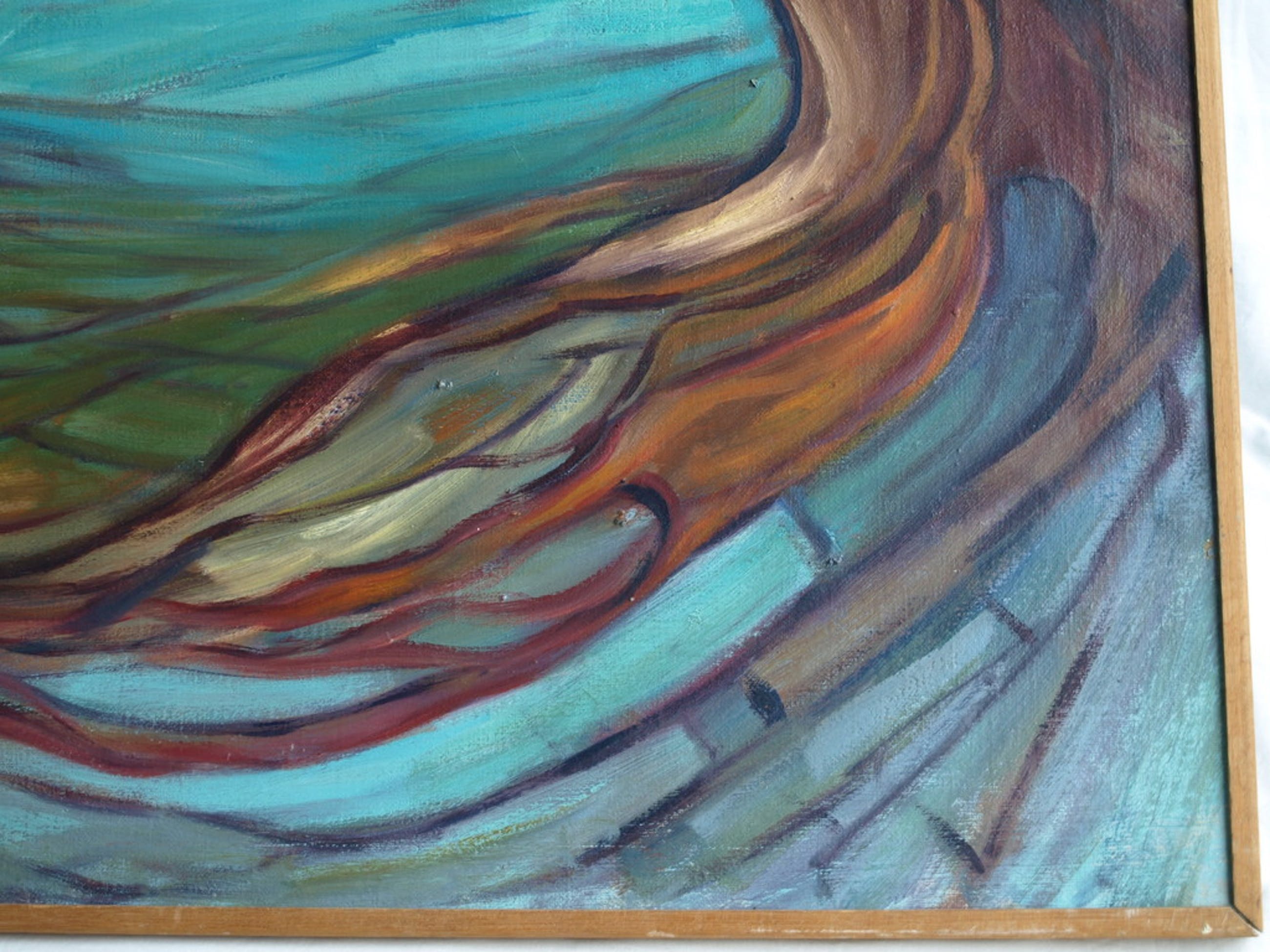 Conditie: Het werk is in goede staat. Het doek heeft een paar slijtplekjes en een deukje linksonder.