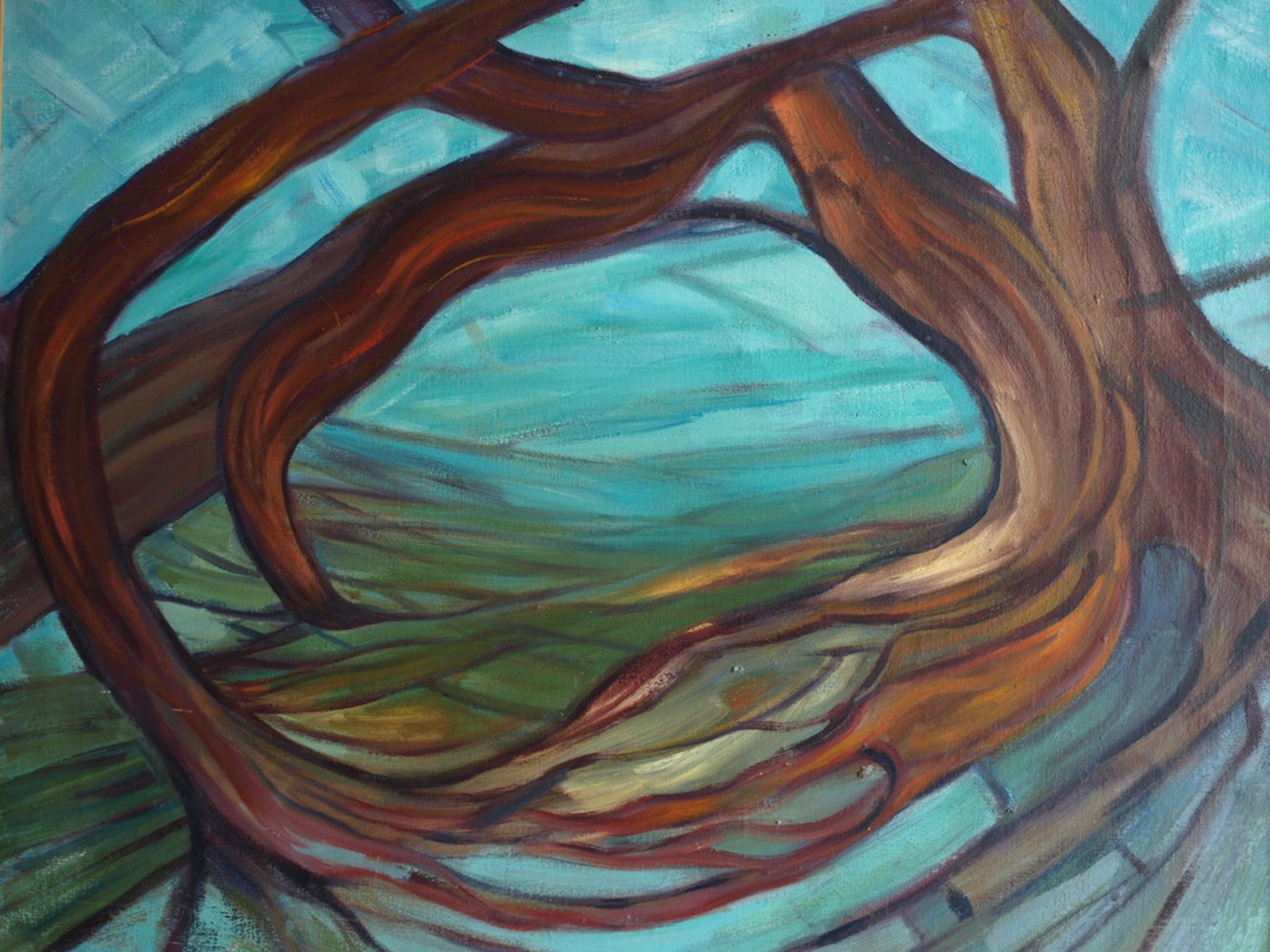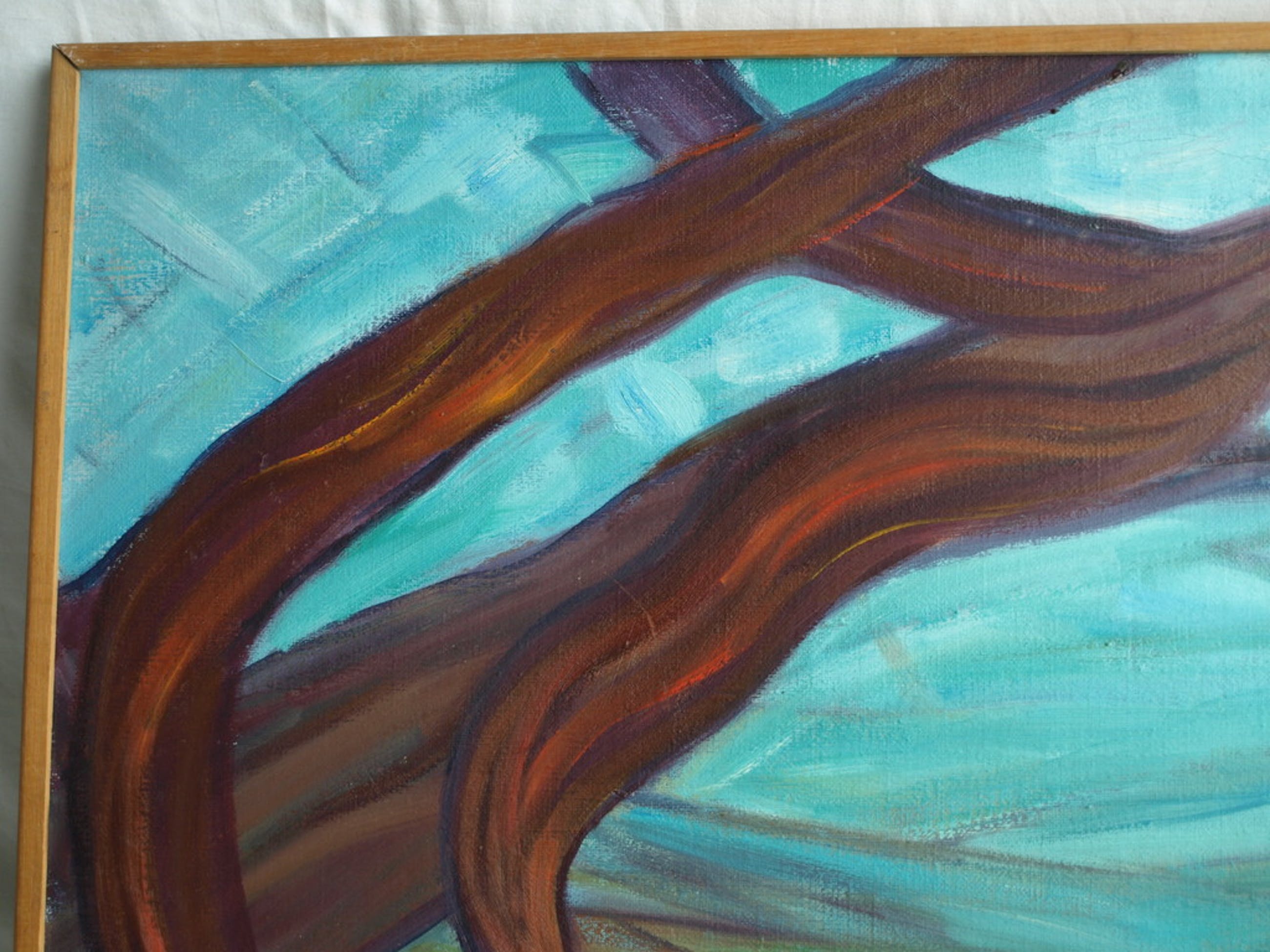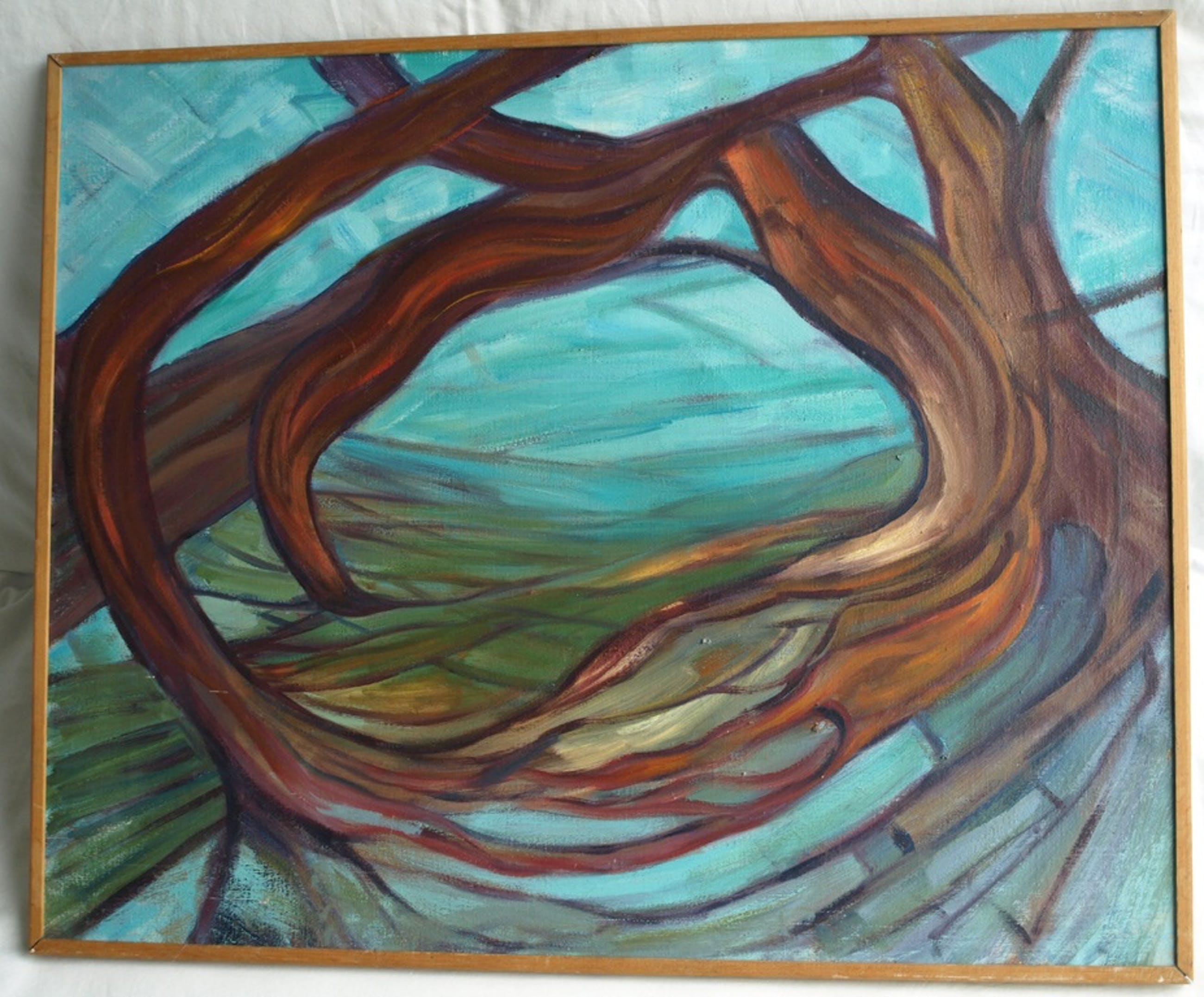 Een groot werk uit 1975 van een ons onbekende kunstenaar, getiteld “Uitzicht”.