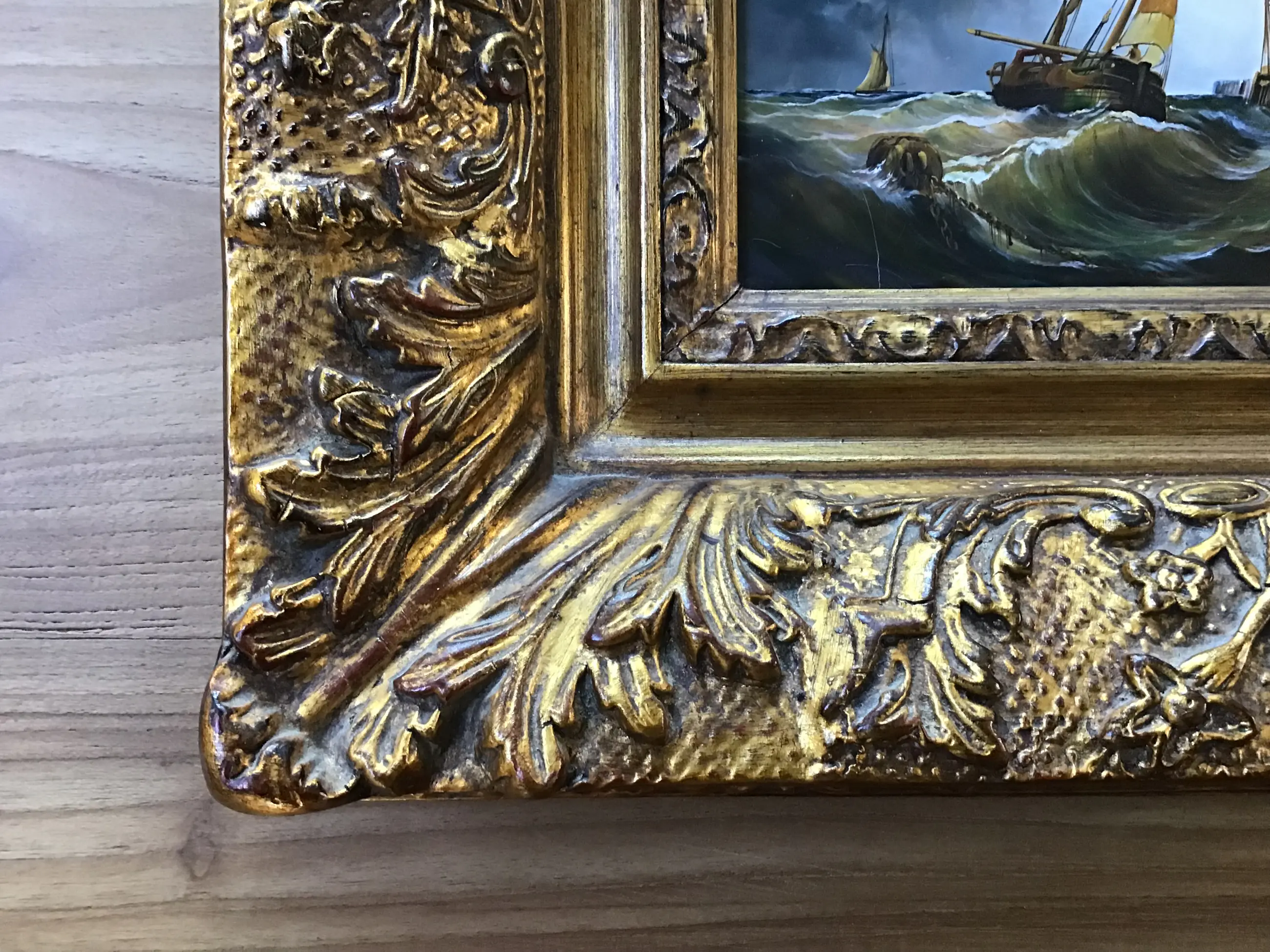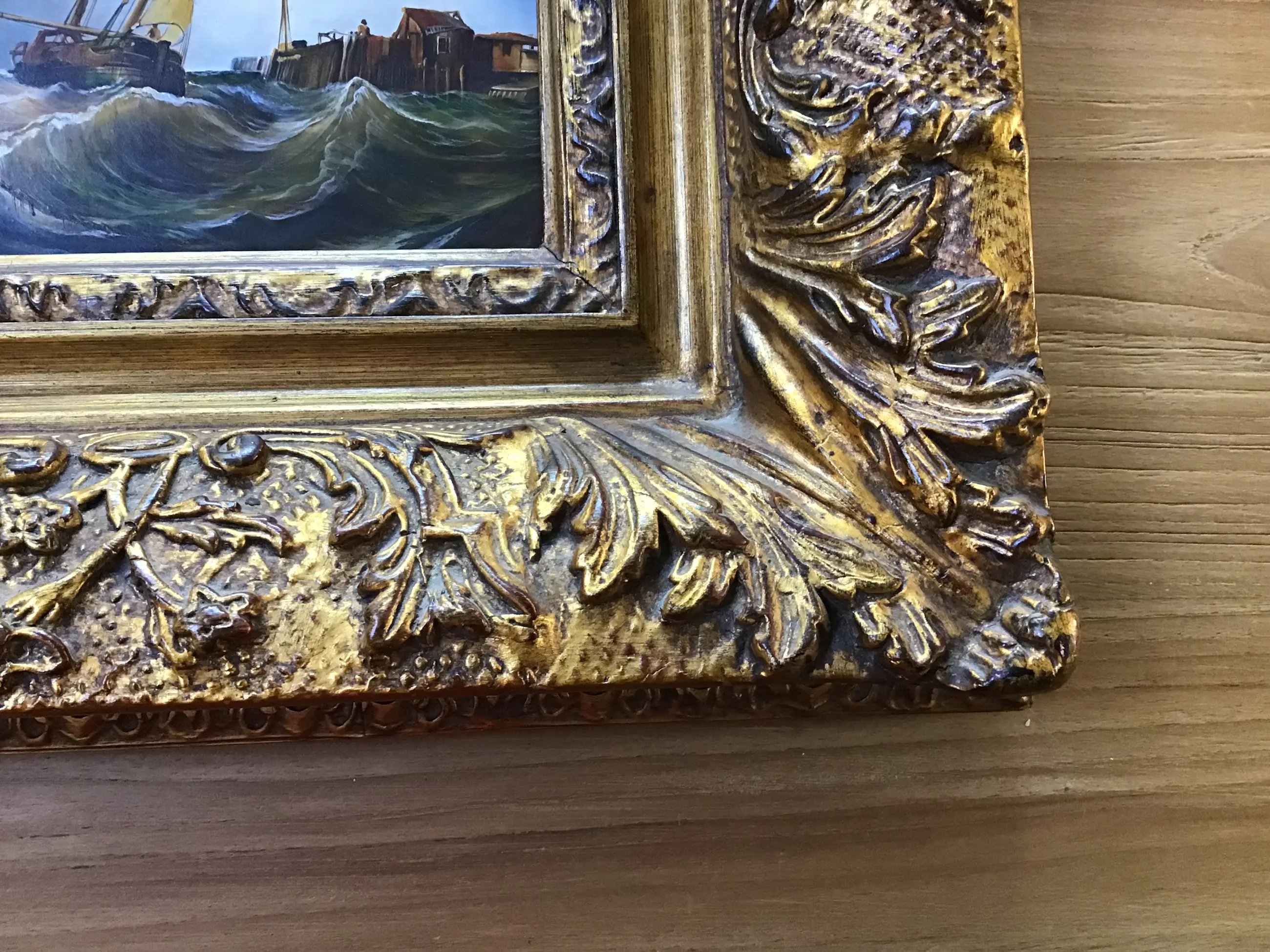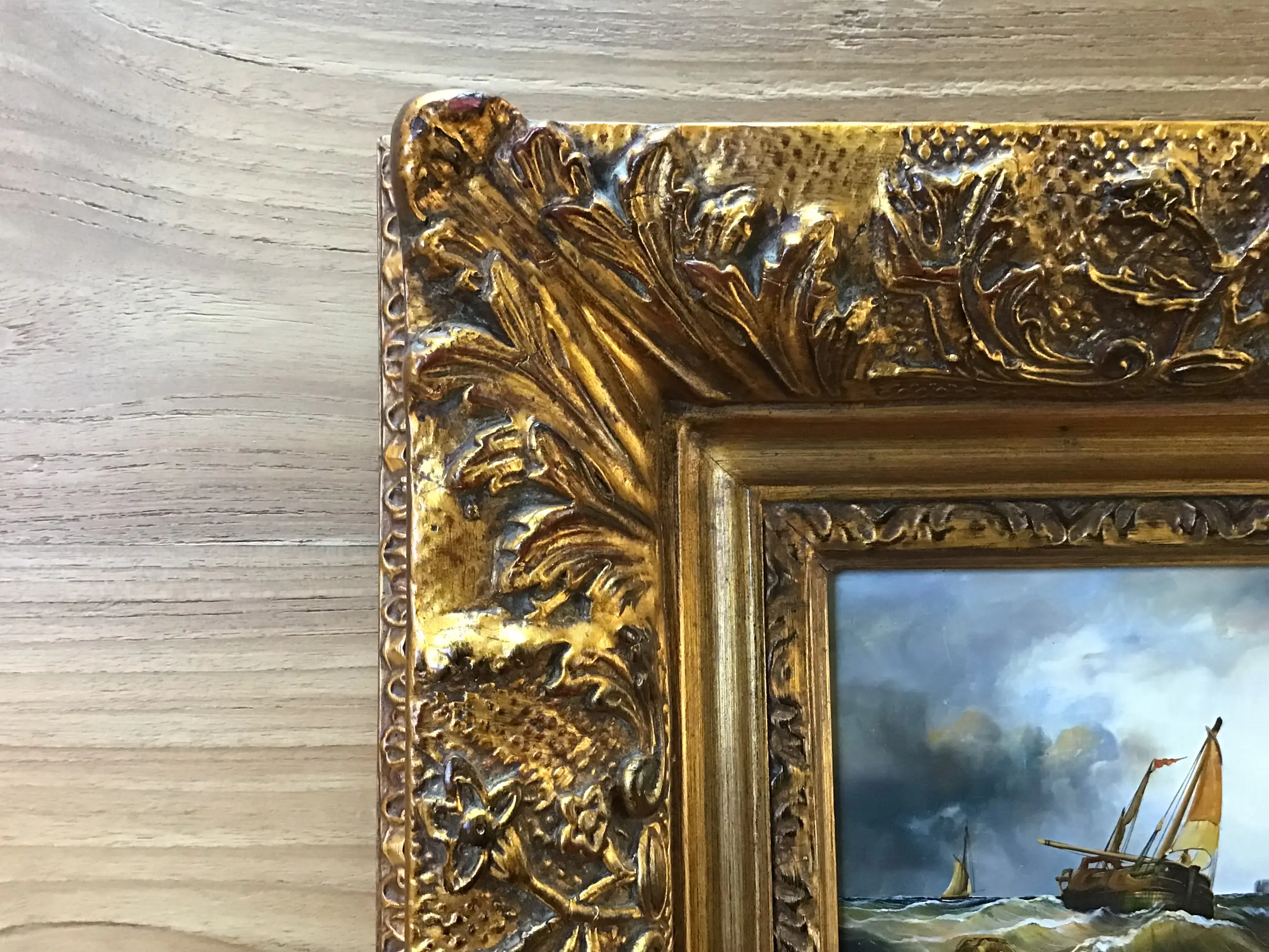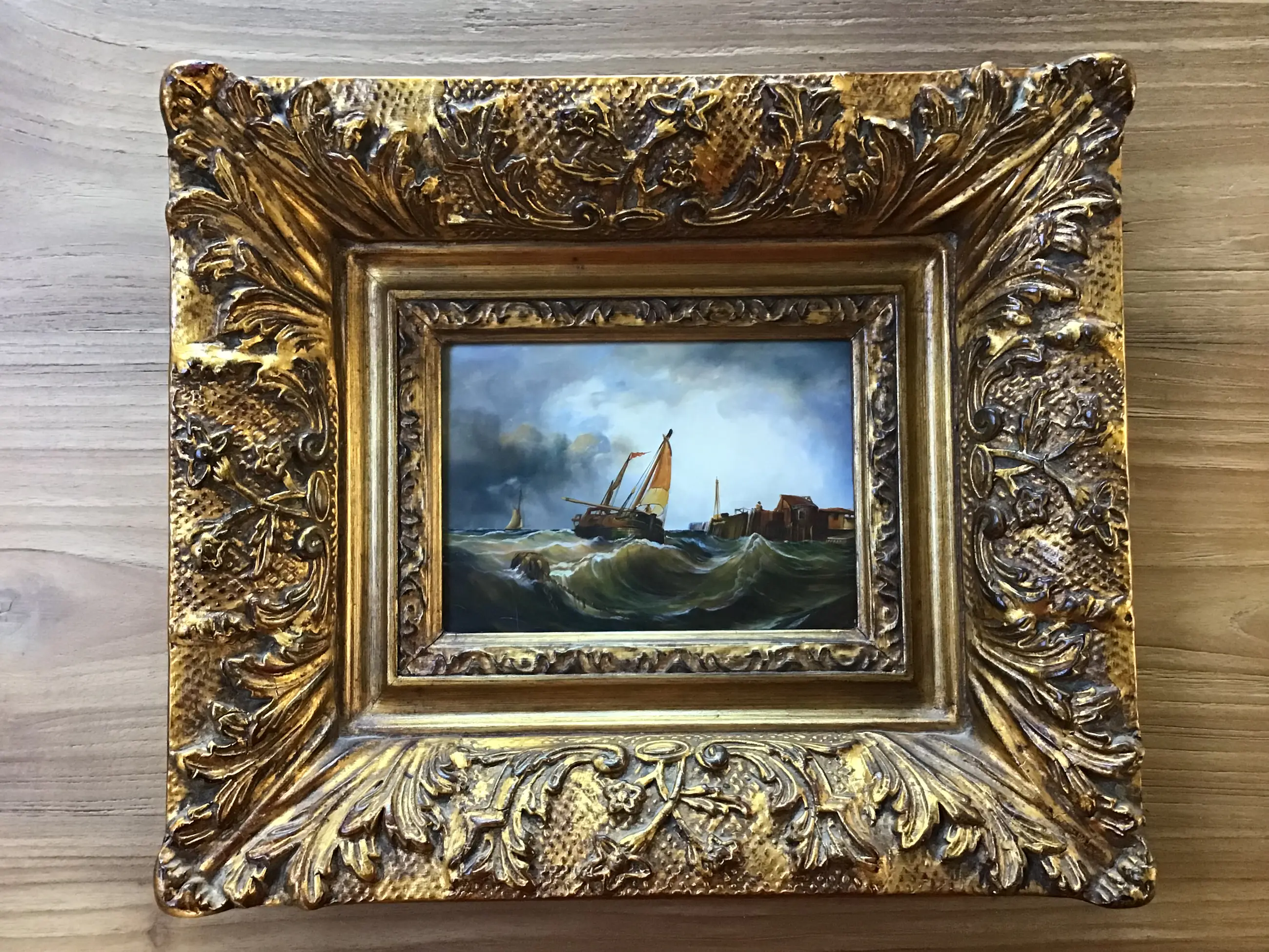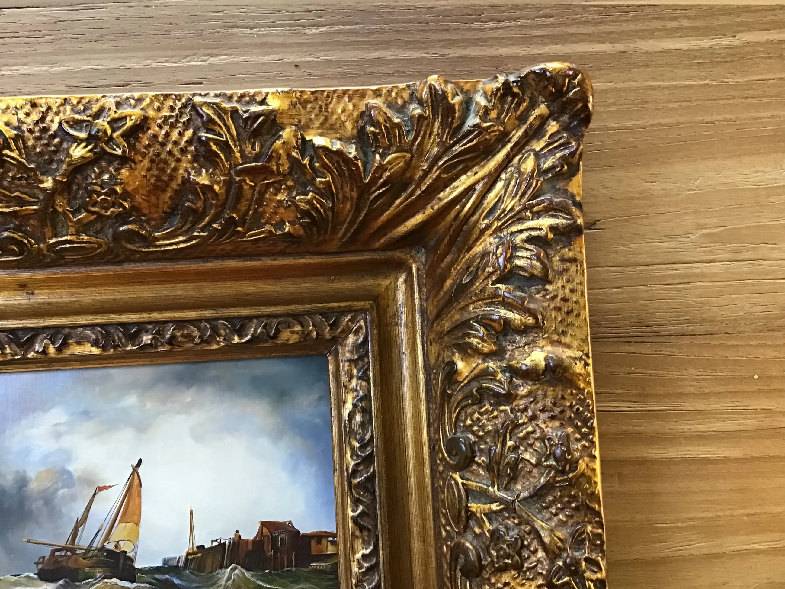 Klein klassiek vlak geschilderd werk in een zware klassieke pronklijst.