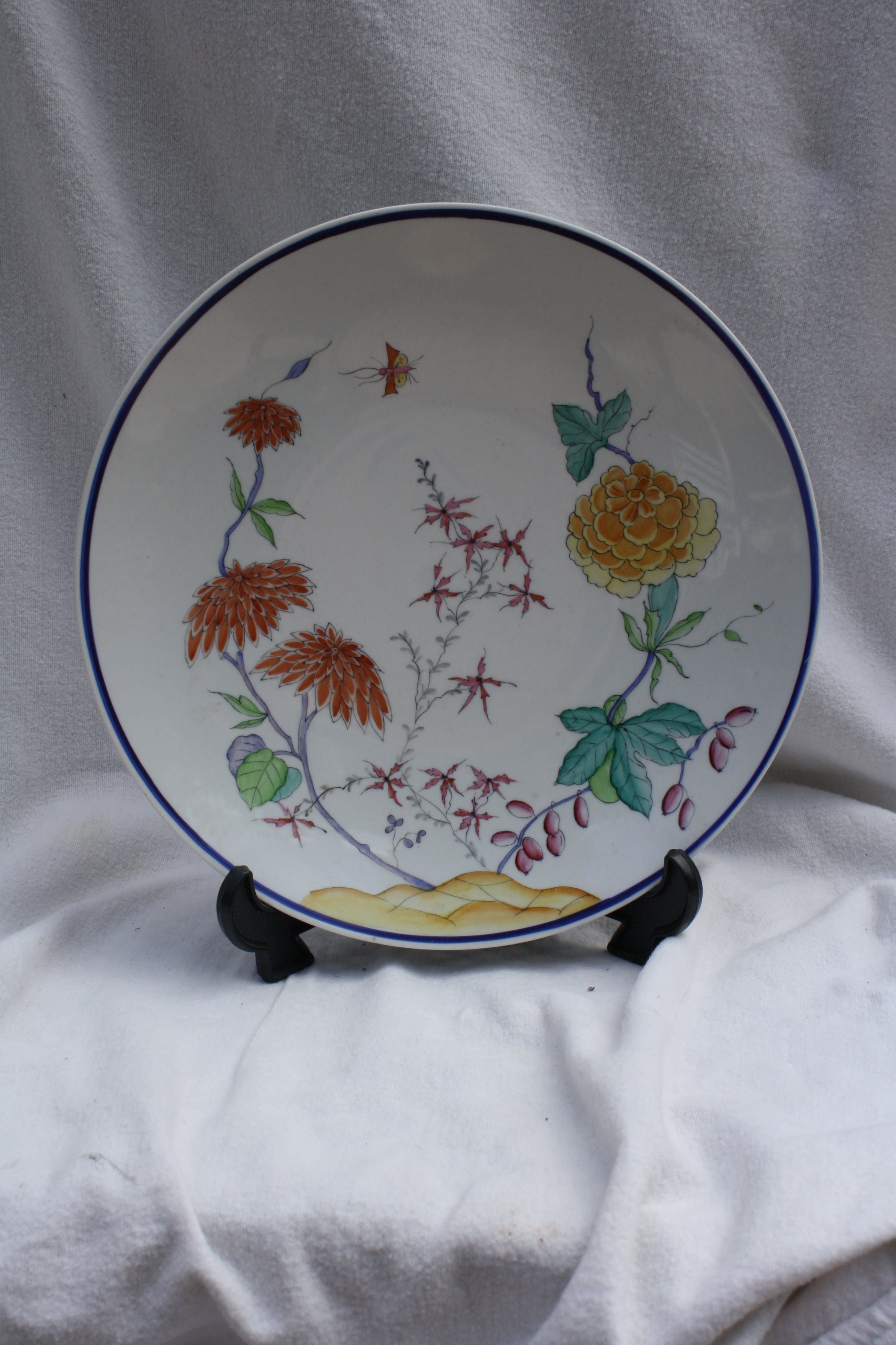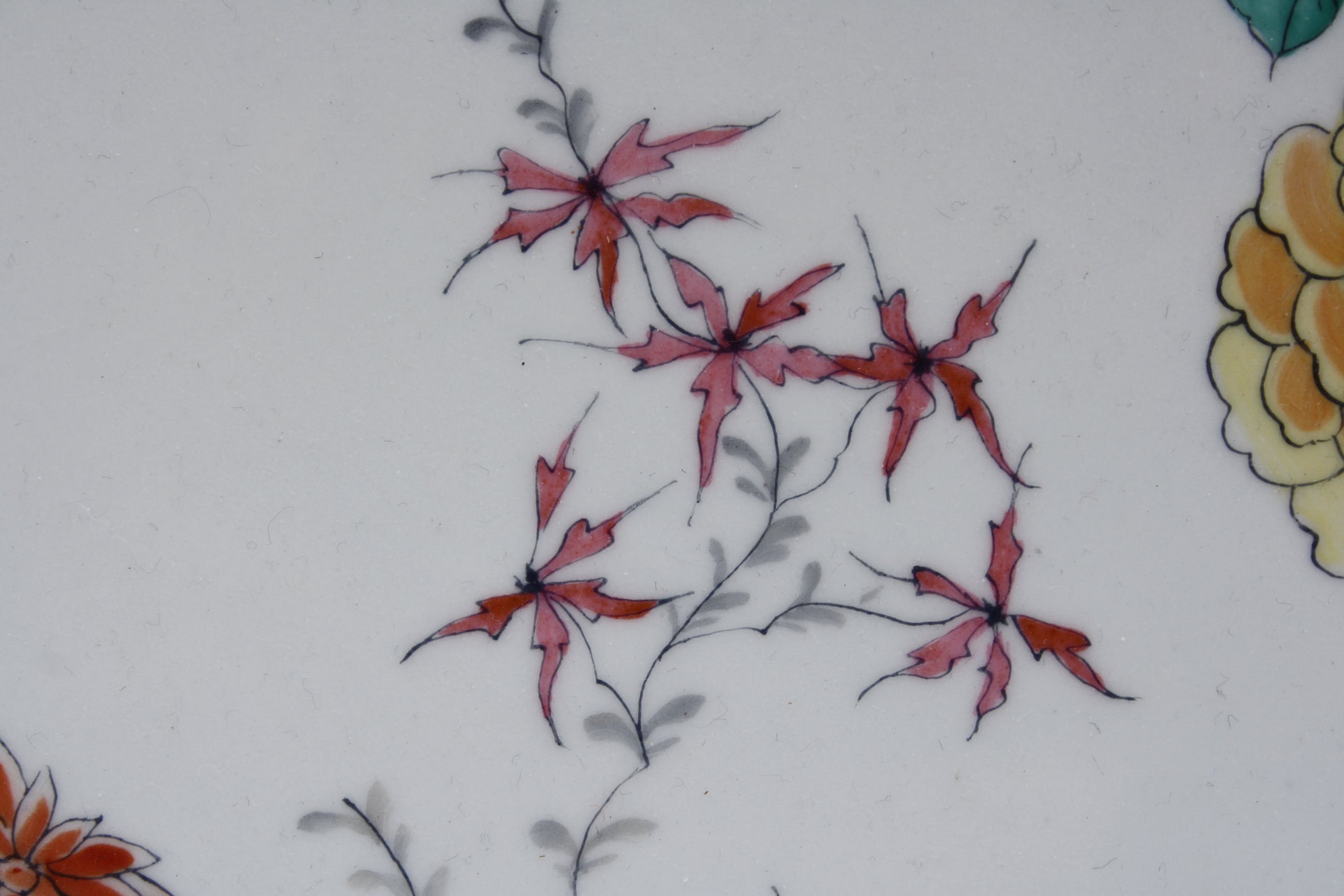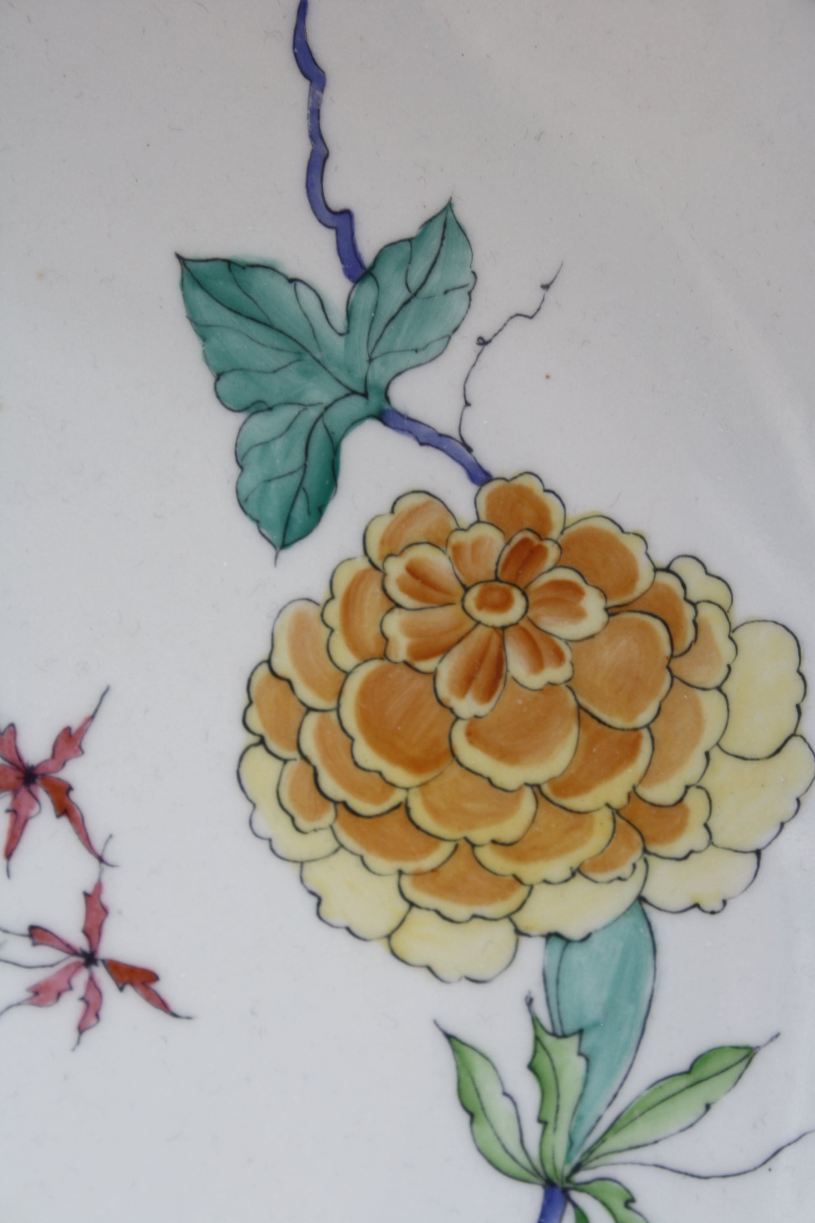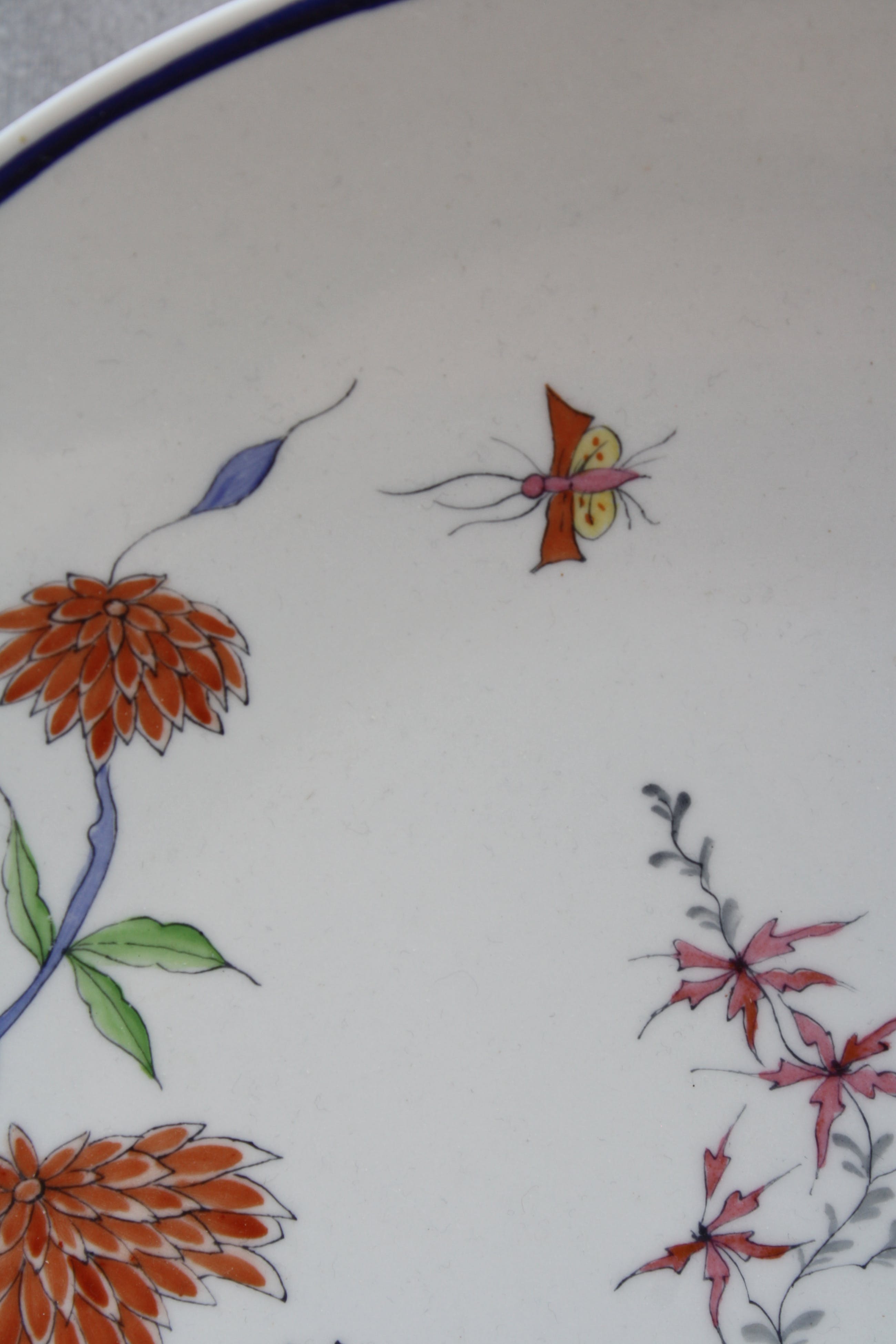De decoratie van deze Europese Kakiemon schotel is van hoge kwaliteit, delicaat en met asymmetrische, uitgebalanceerde ontwerpen zoals bloemen en een insekt. Deze werden spaarzaam aangebracht om het fijne witte porseleinen achtergrondlichaam te benadrukken dat bekend staat als nigoshide (melkwit) en dat werd gebruikt voor de mooiste stukken. De schotel verkeerd in perfecte staat geen chips of scheuren of haarlijnen kijk goed naar de fotos om eventuele claims te voorkomen. Achterkant nr 5.
