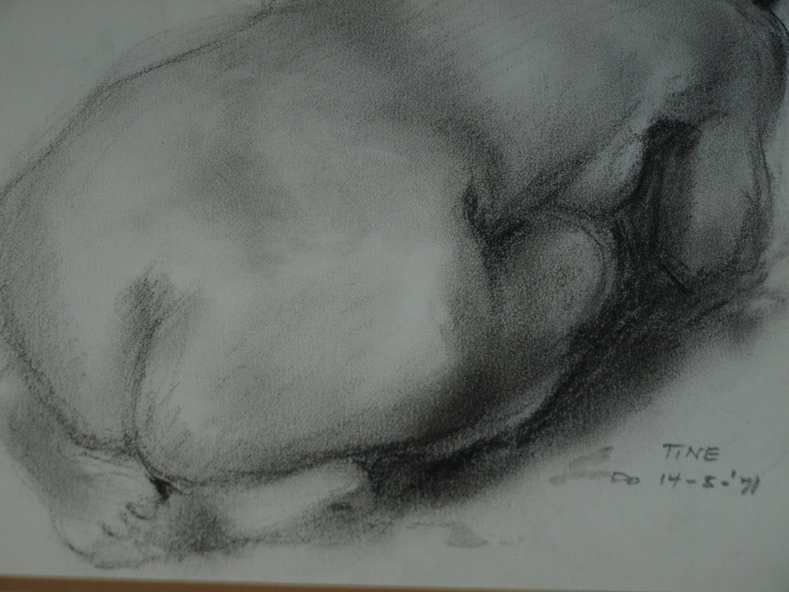 Een tekening uit 1971 met een voorstelling van een naakte vrouw.