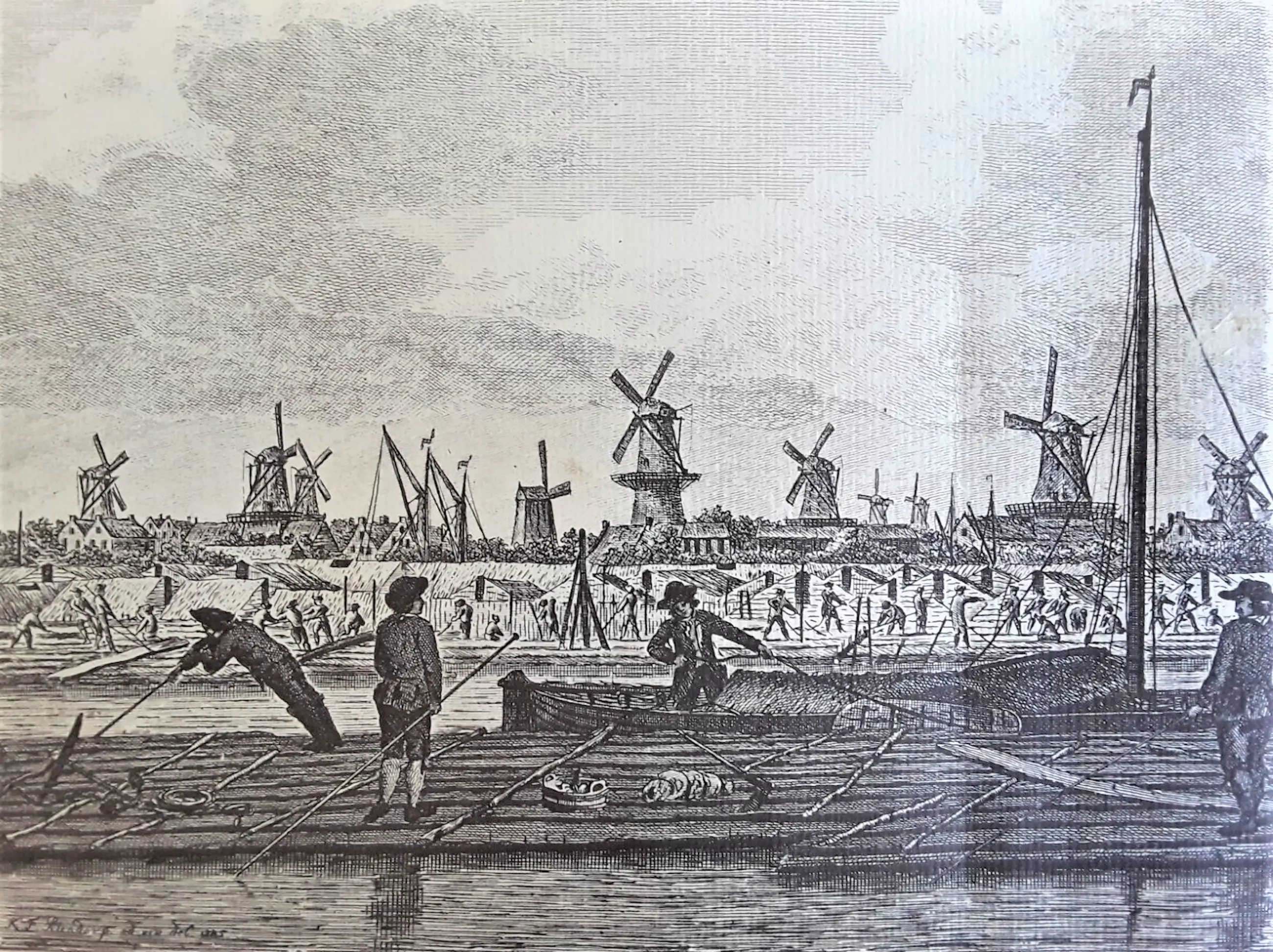 Originele titel: Het slyten van een houtvlot, voor de stad Dordrecht.