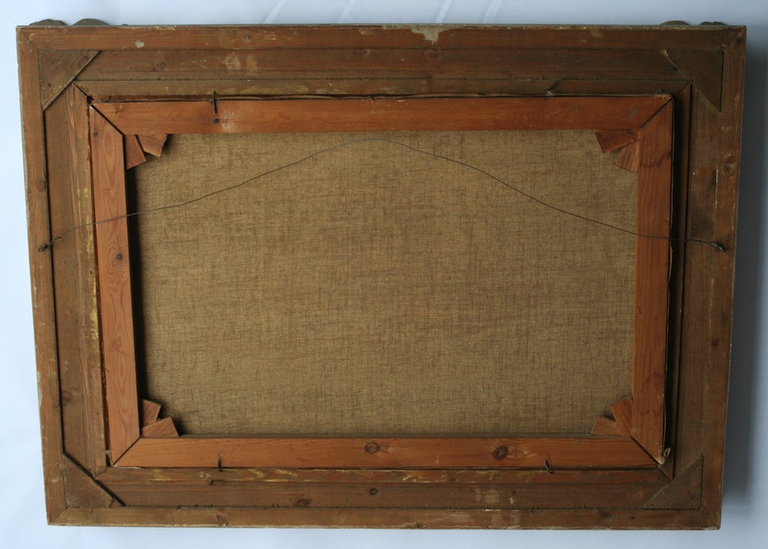Gelet op doek en spanraam schat ik 1e helft 20e eeuw. Afmeting doek 60 x 40, met lijst 76 x 56.