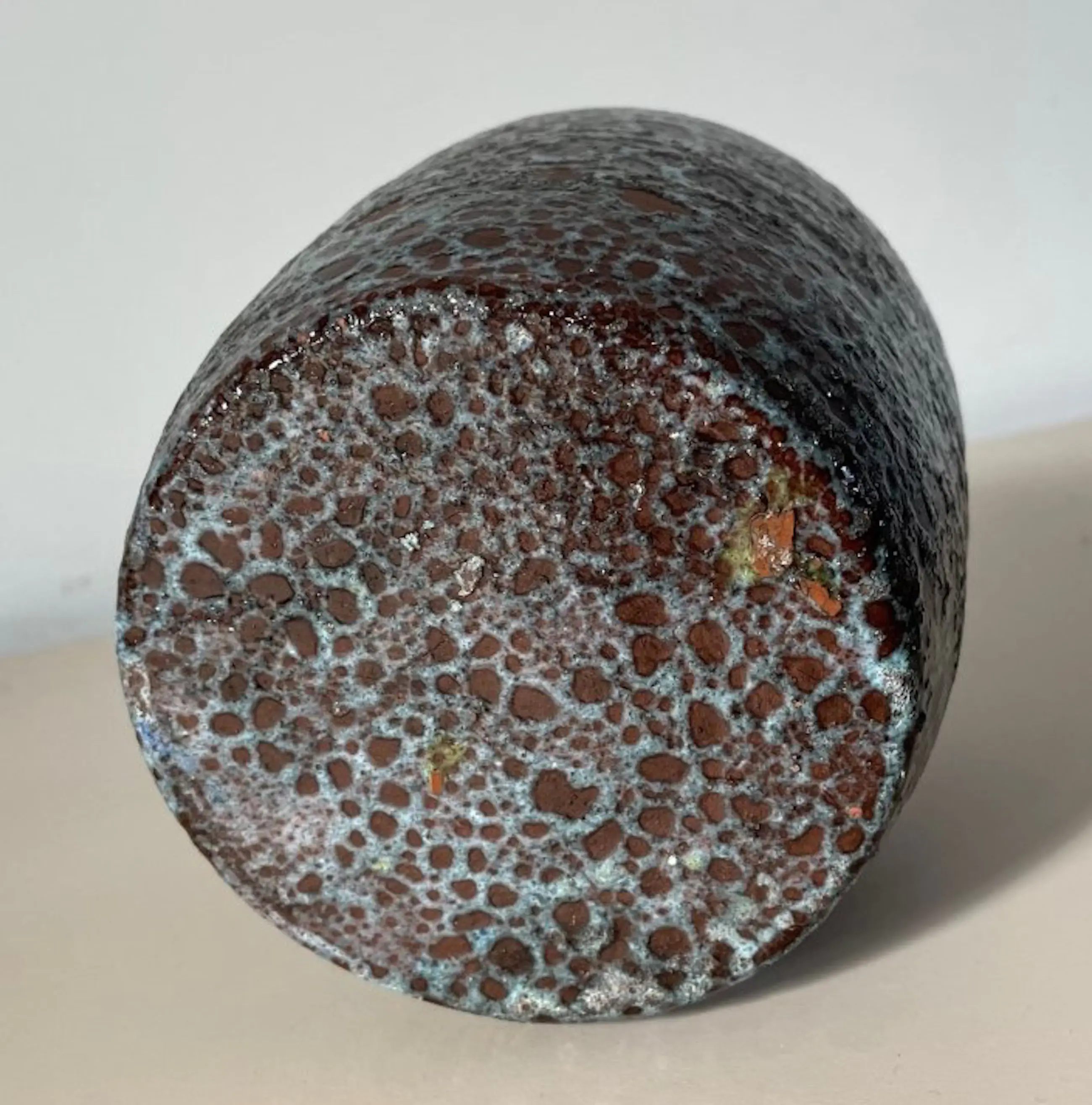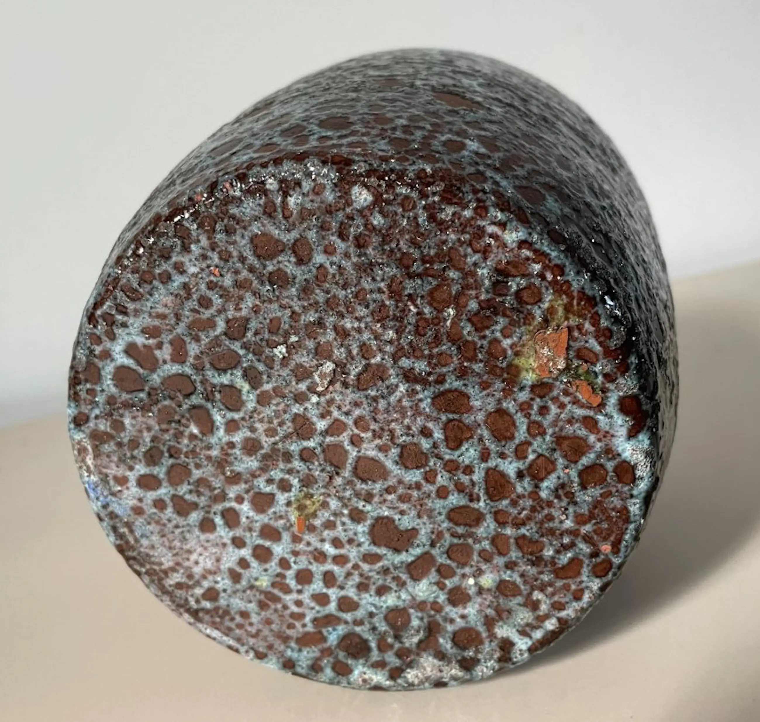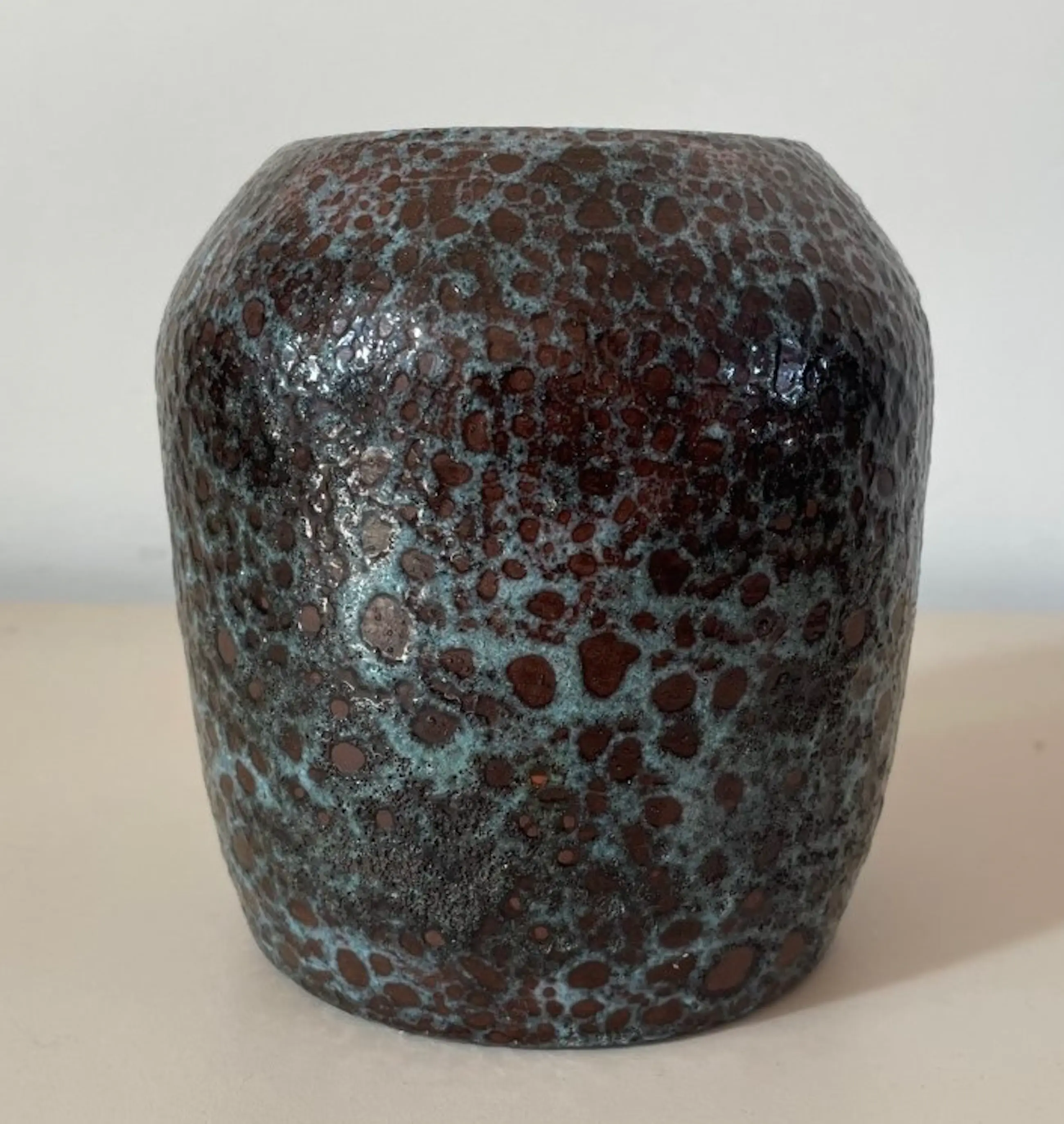 Vintage aardewerken vaasje met lichtblauw bruisglazuur. In perfecte onbeschadigde conditie. Niet gemerkt.