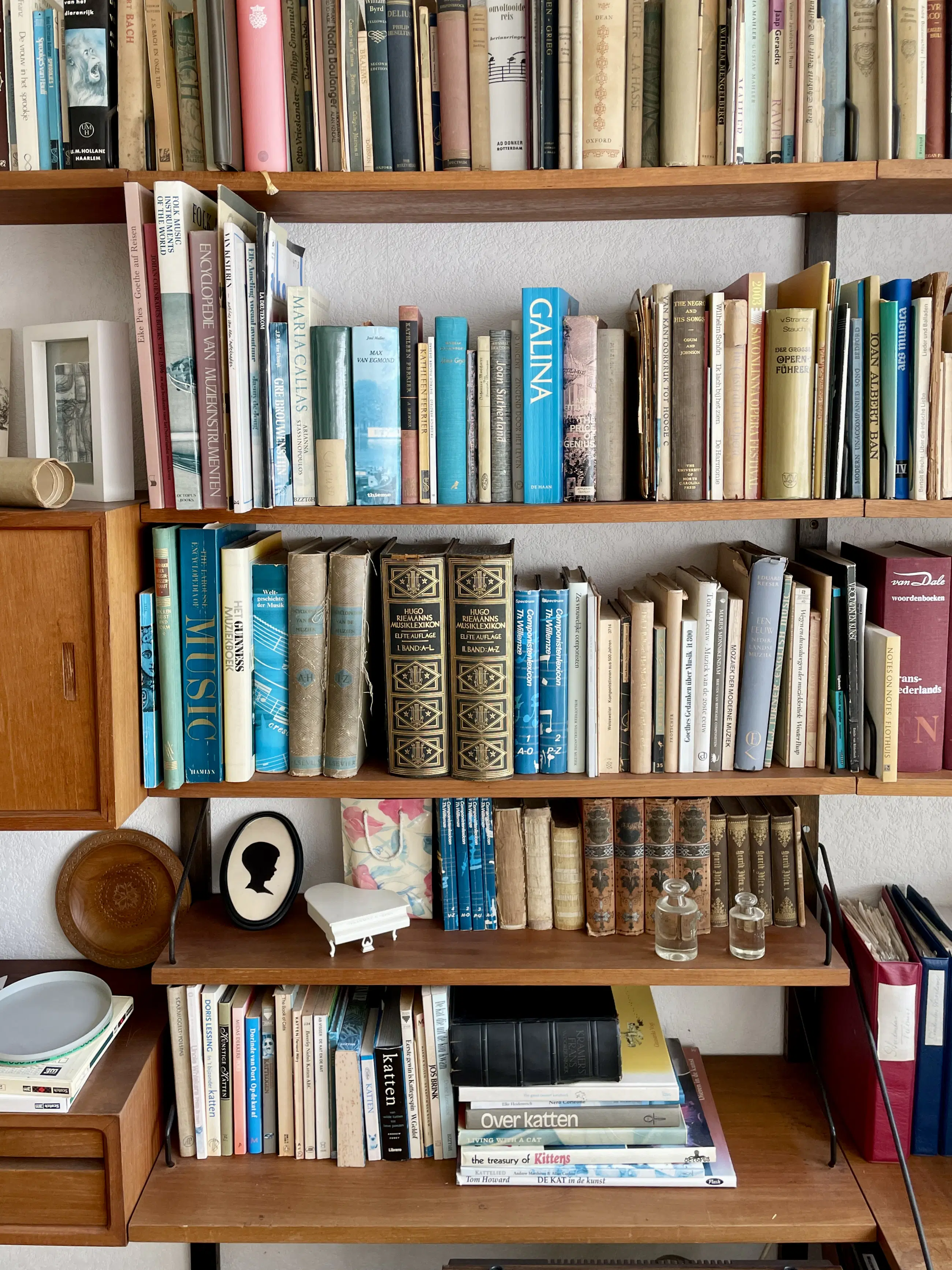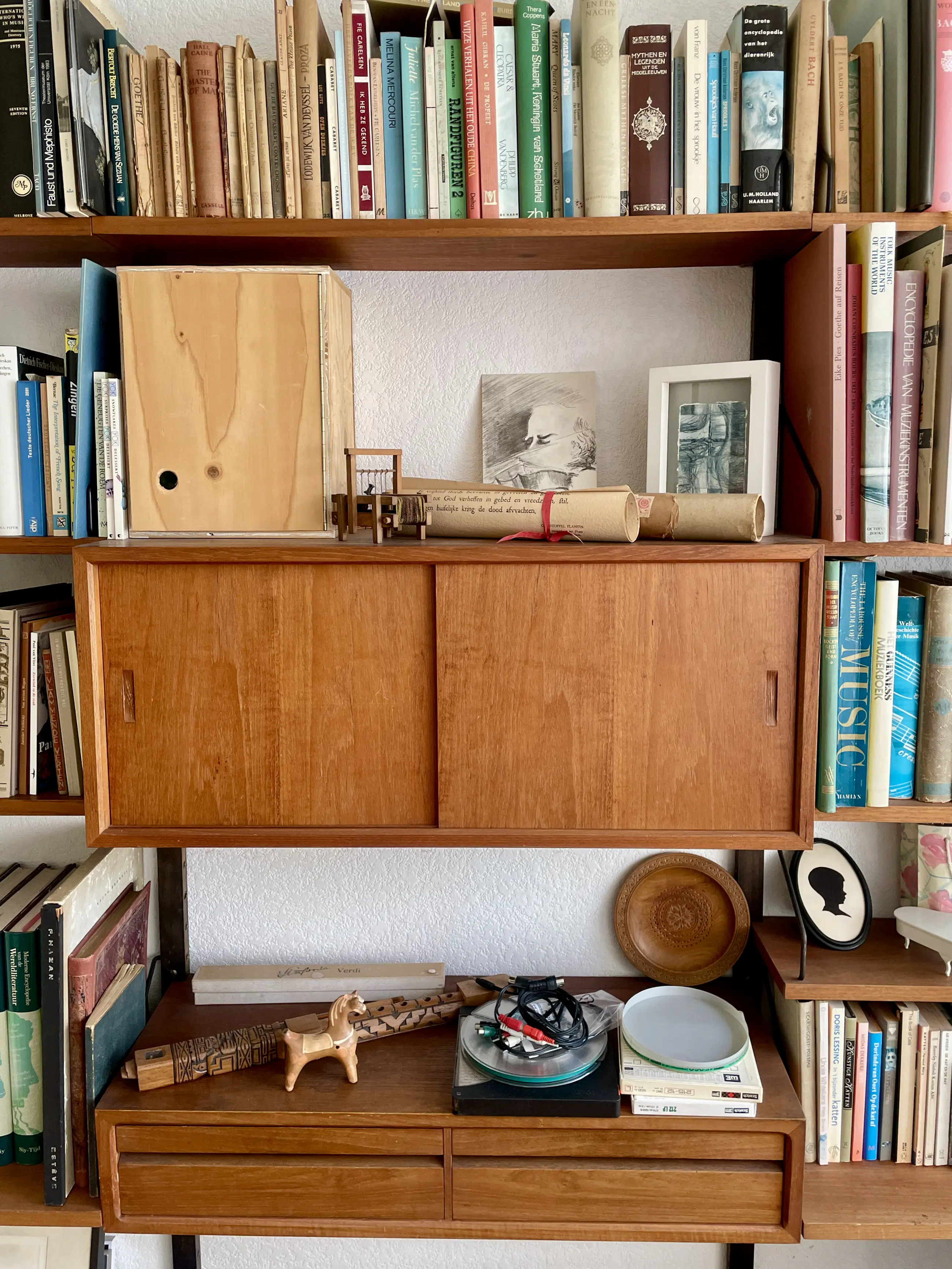 15 planken, 2 lades en kastje met schuifdeuren. Muurbevestigingen compleet.