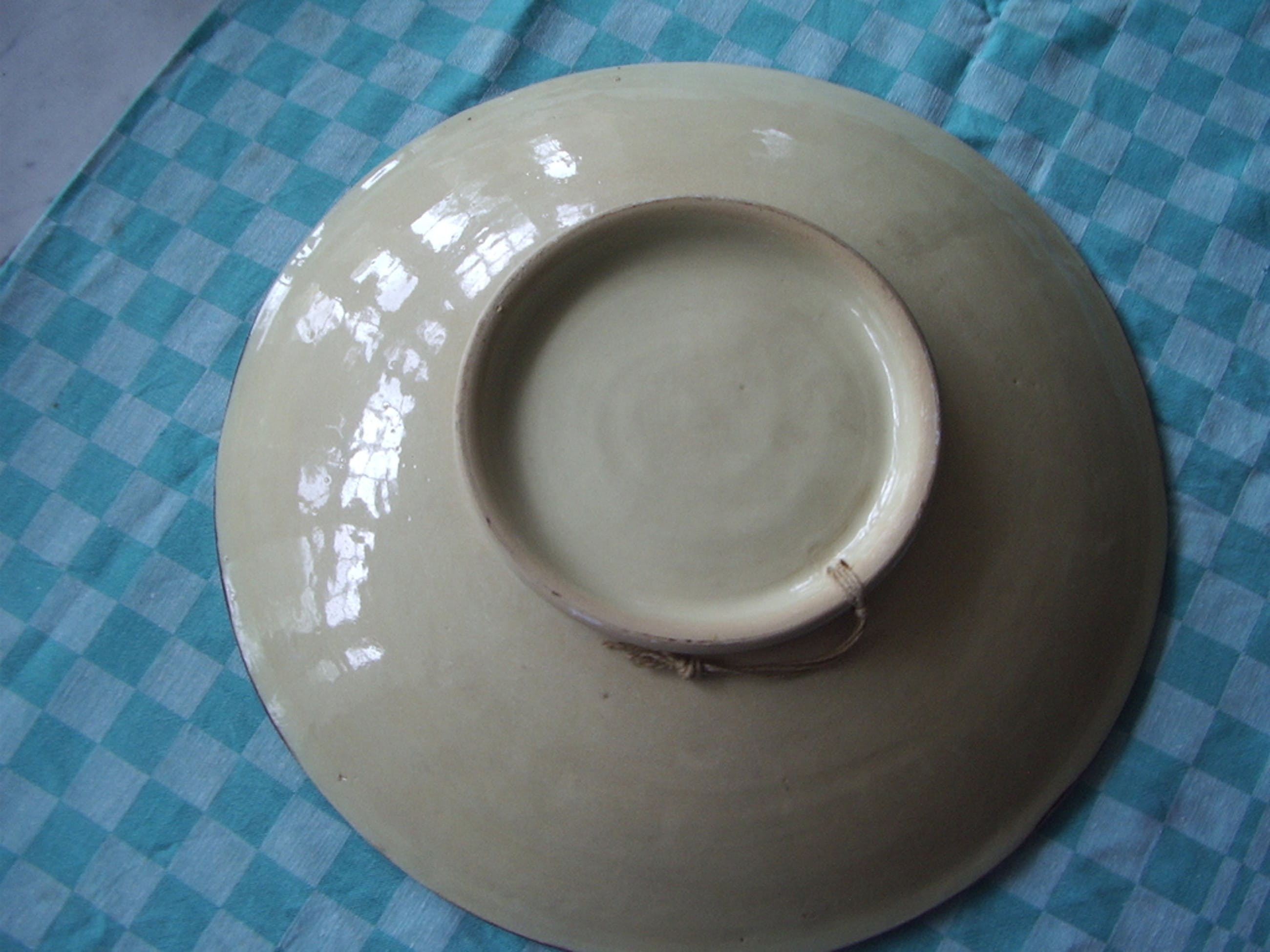 Groot wandbord met vrolijke voorstelling. ( diameter: ruim 37 cm )