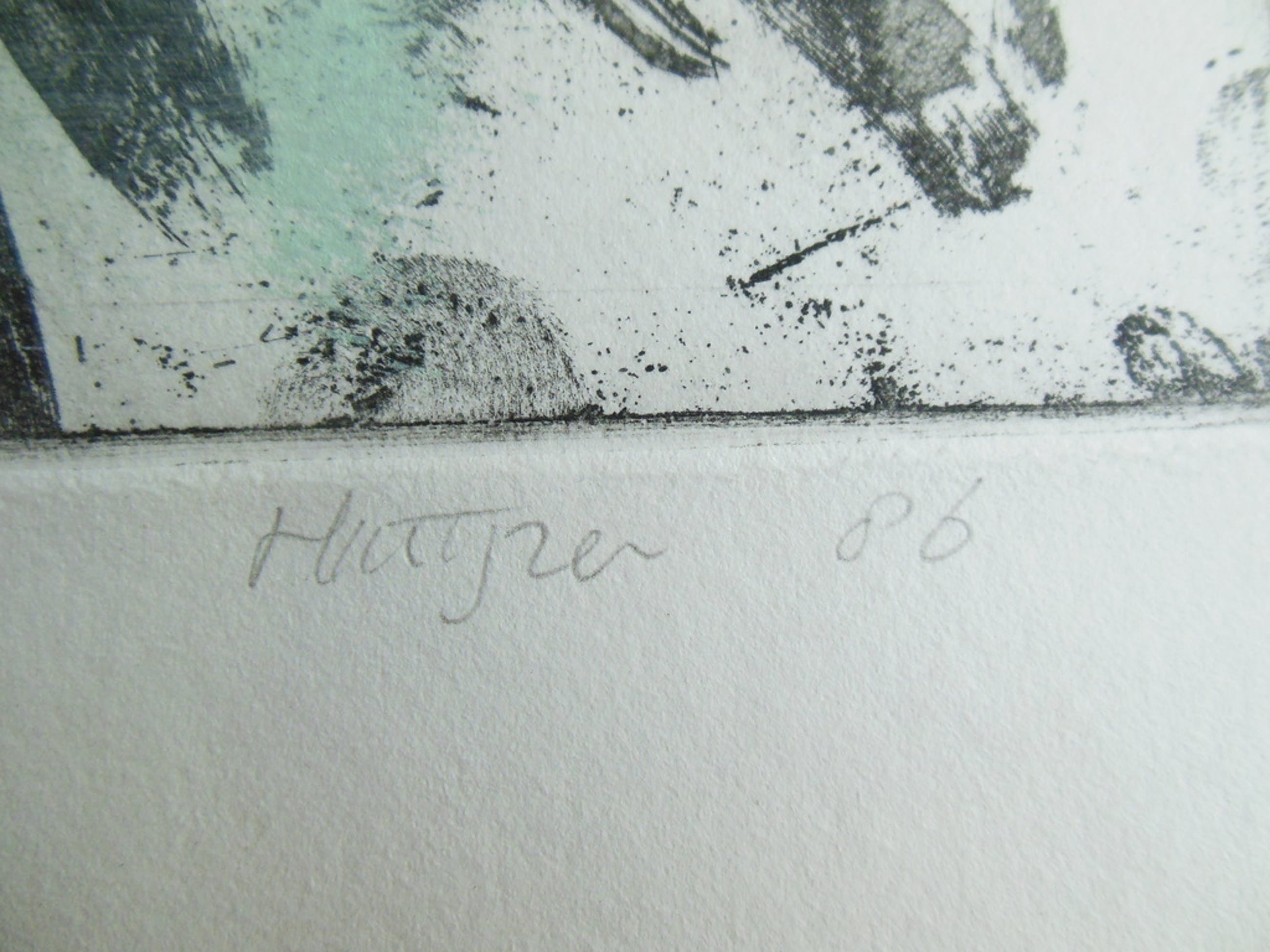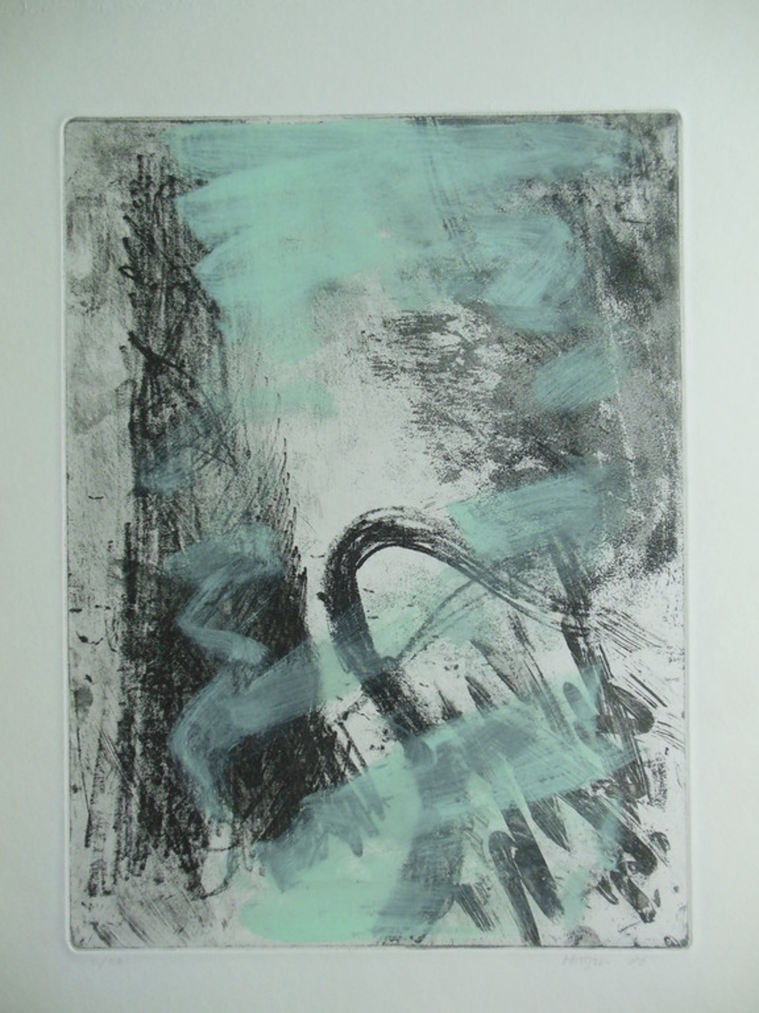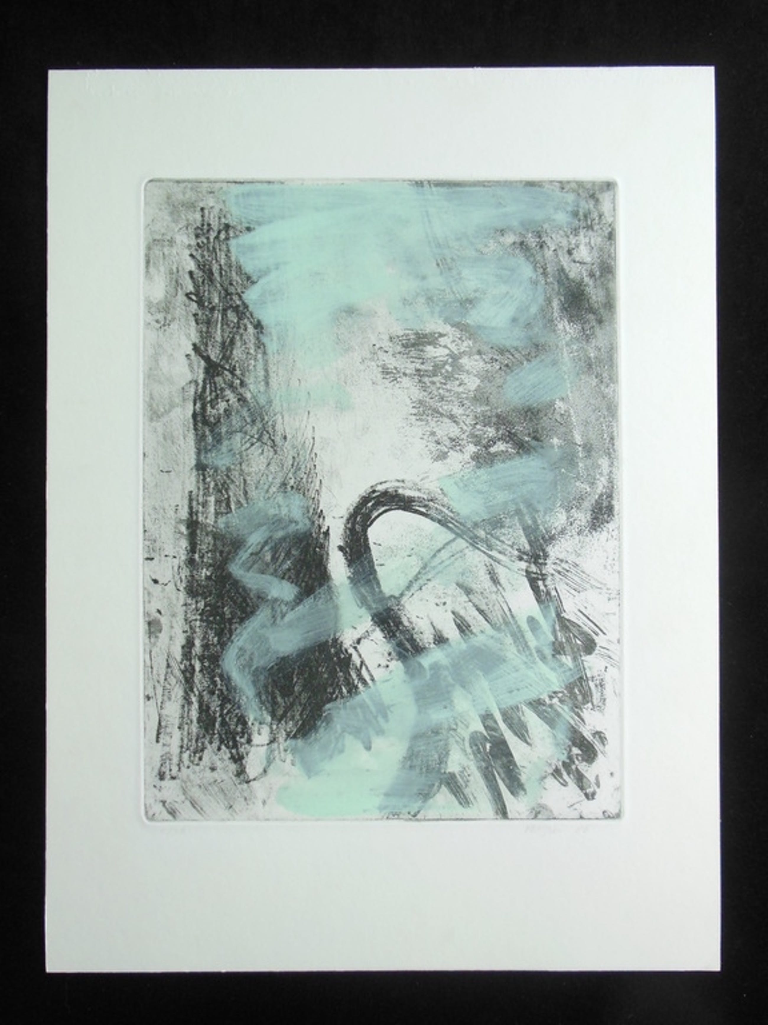 De basis is een ets die daarna met andere technieken is bewerkt.