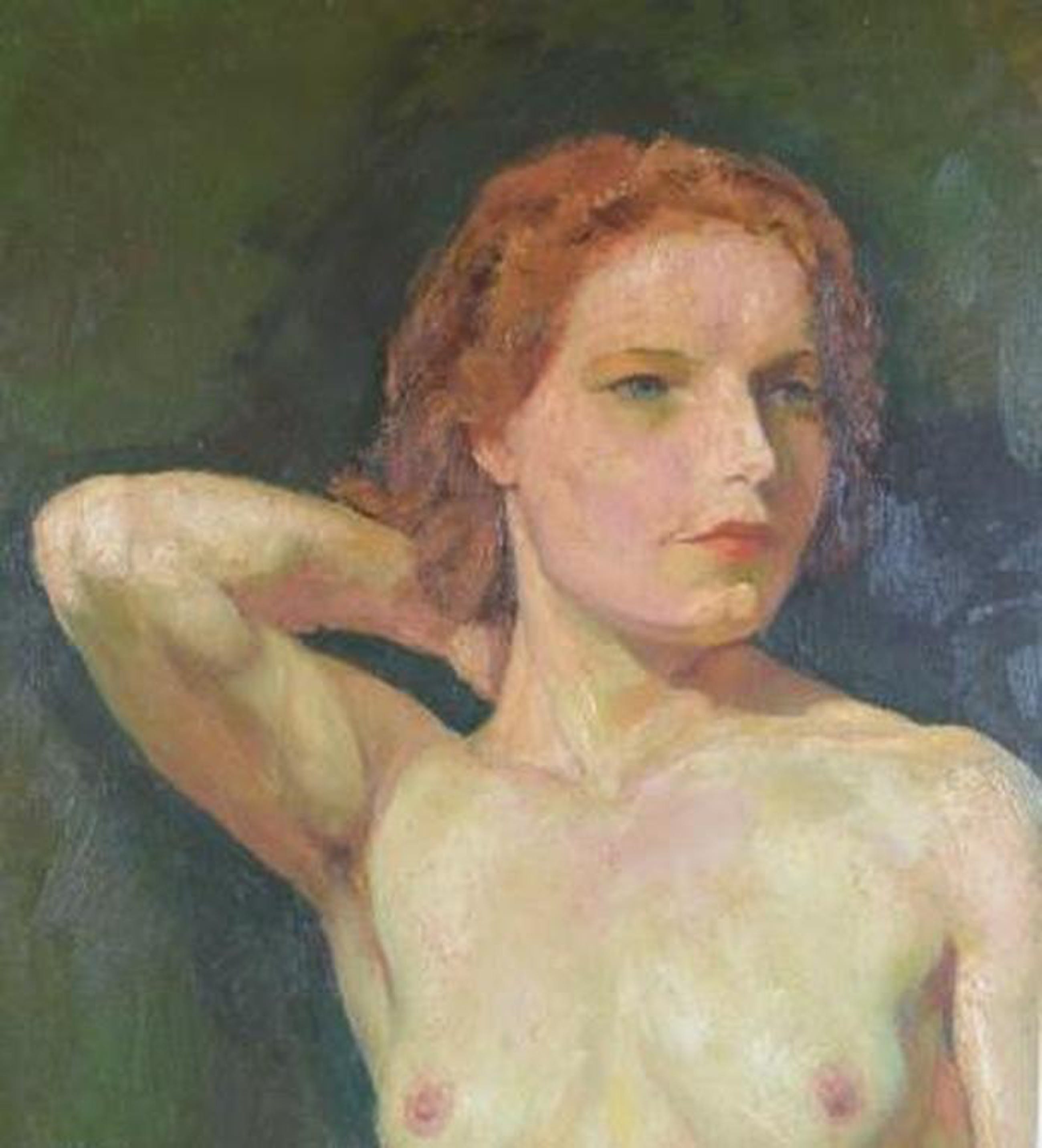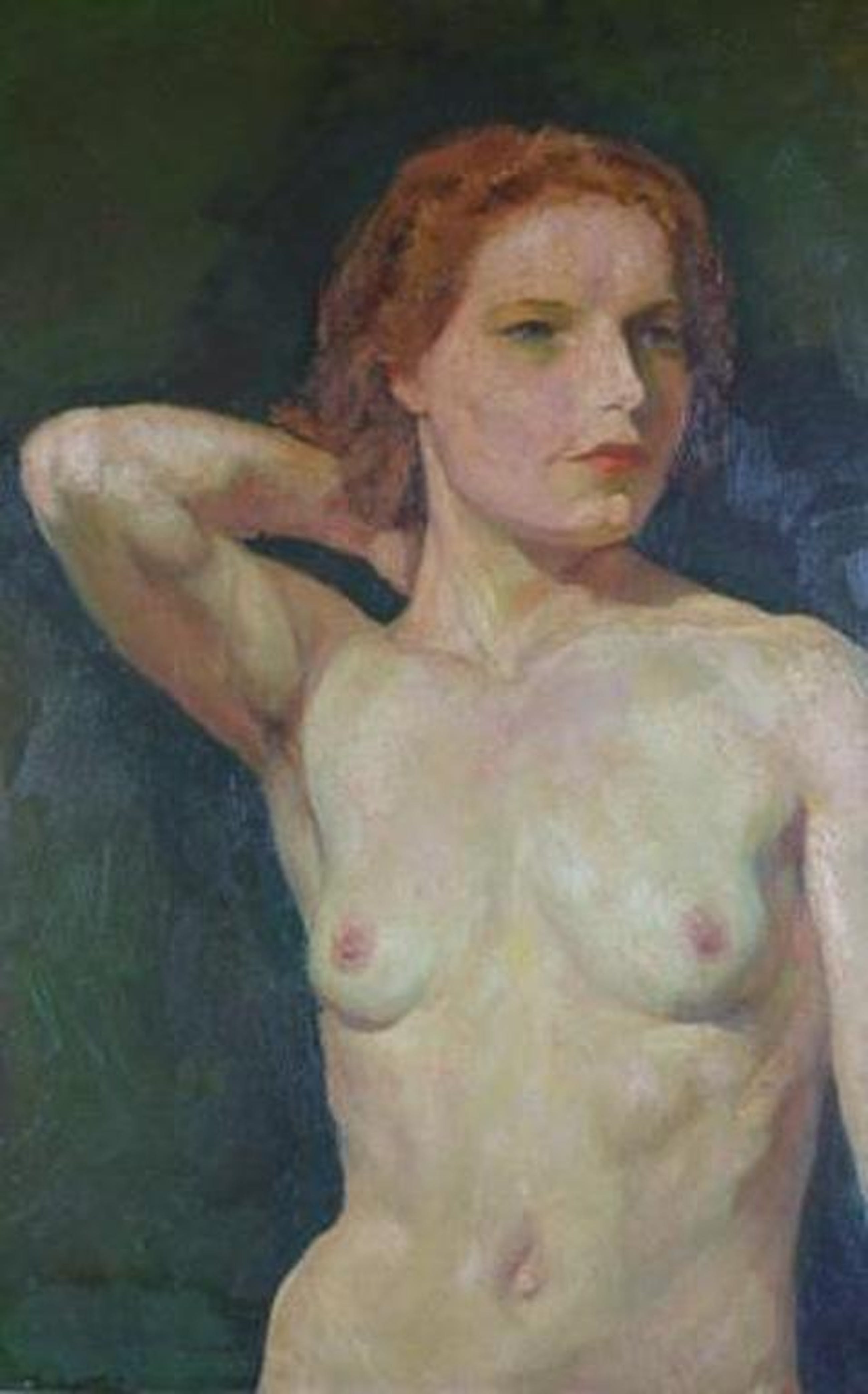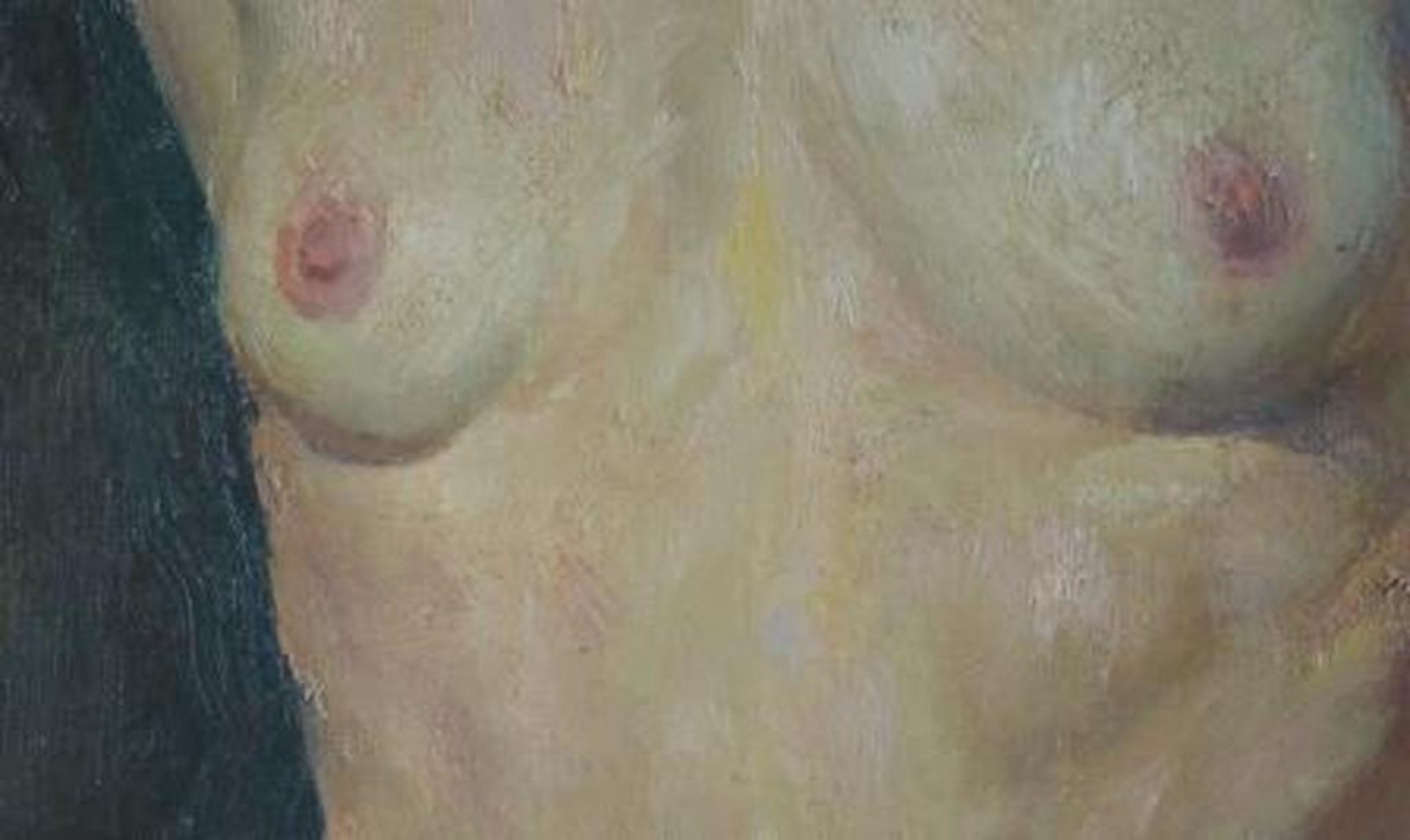 Pasteus groot naakt, arm in nek, signatuur lijkt bewust gewist (?) z.j. (ca. 1960) Formaat 50x80 - met nette, brede lijst, nog geen foto daarvan - op verzoek.